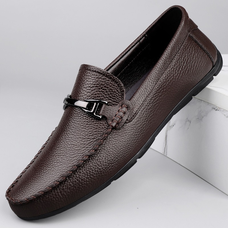 Giày da nam kiểu dáng thoải mái, dễ phối đồ. Sản phẩm làm từ chất liệu da thật lớp ngoài cùng, bề mặt mềm mại mang lại cảm giác dễ chịu. Đế giày có các hạt chống trơn giúp bám đường tốt, rất tiện lợi khi lái xe hoặc đi lại hàng ngày. Kiểu giàu không cần buộc dây, thiết kế một màu dễ dàng sử dụng. Bạn chỉ cần xỏ chân vào là có thể mang ngay, phù hợp cho nhiều dịp sử dụng. | Tên sản phẩm: Giày Da Nam Chất Liệu Da Bò - Giày Dép Nam | Mã sản phẩm: B3691 - Giá: 1.240.000đ | Mã nhà sản xuất: TADRA-G04Hình ảnh sản phẩm