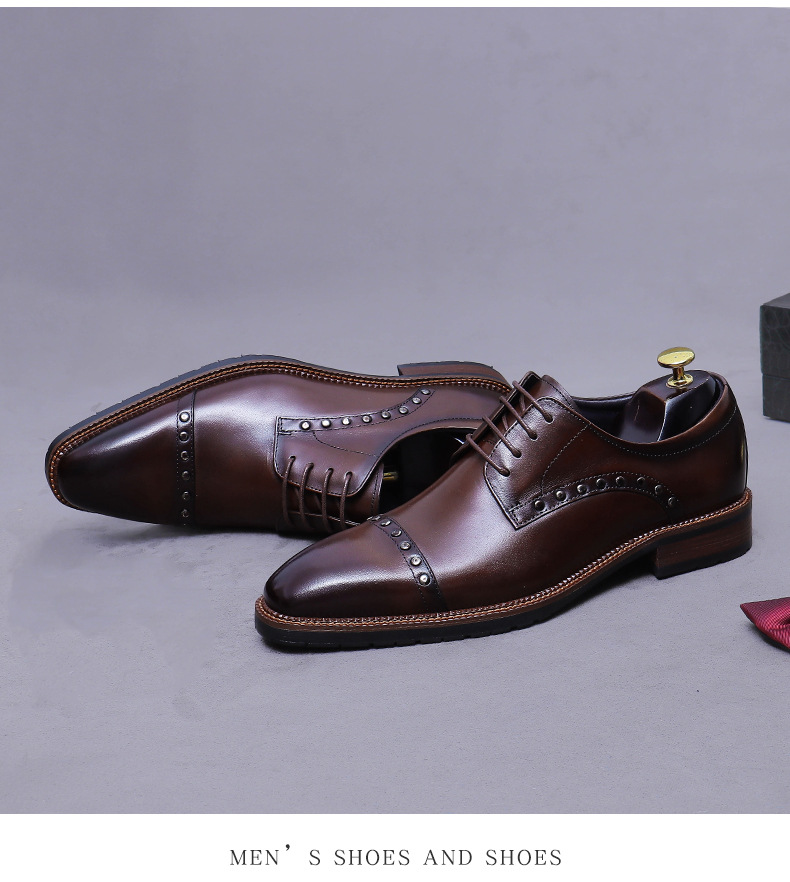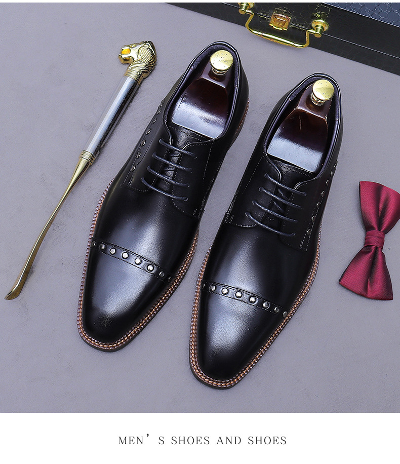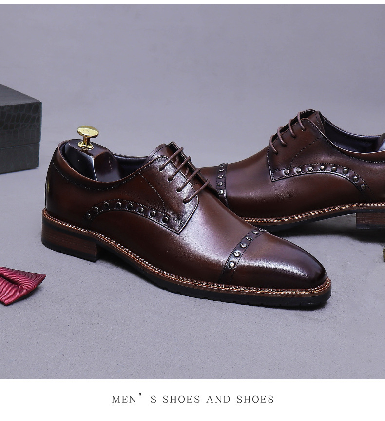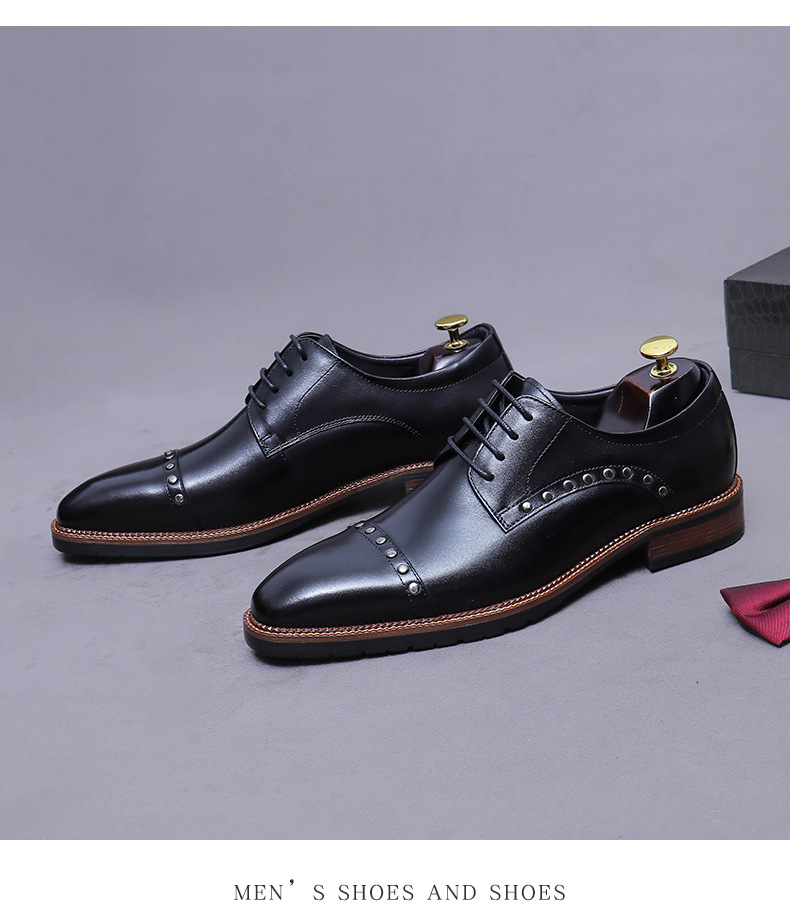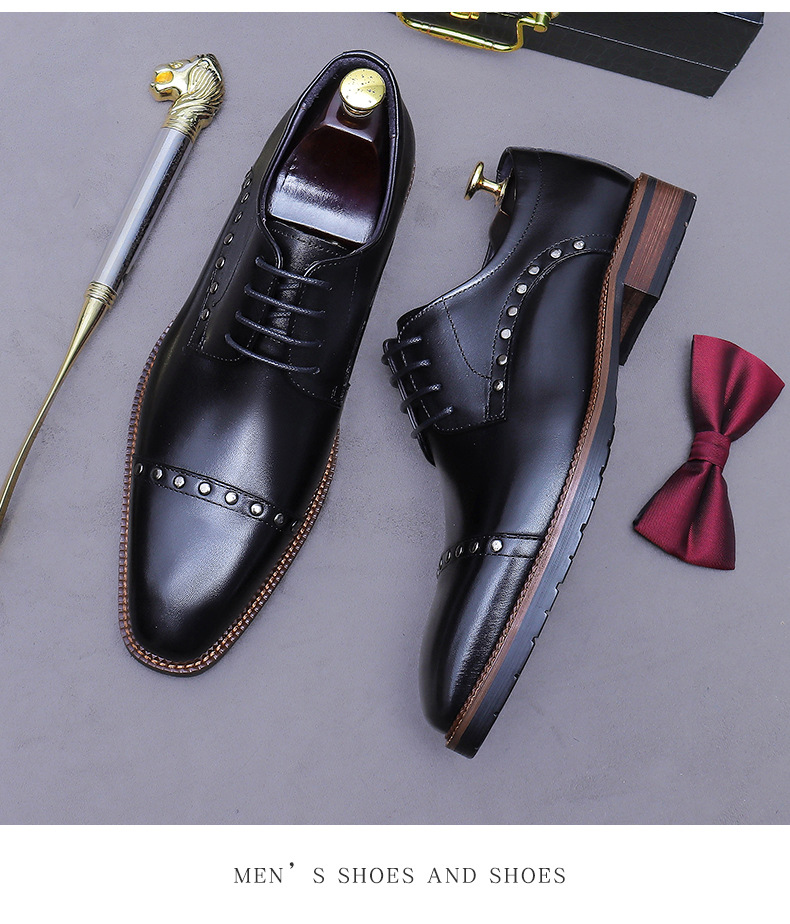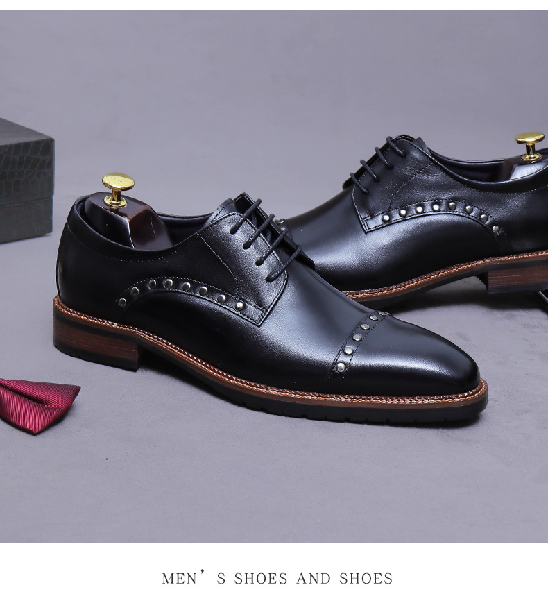 Giày da thật dành cho nam, kiểu dáng kết hợp giữa công sở và thoải mái. Sản phẩm có mũi nhọn và phần thân trước được ghép nối, điểm nhấn là các đinh tán trang trí. Làm từ chất liệu da bò bền đẹp, đế giày chắc chắn. Bạn có thể dùng để đi làm hoặc dạo phố, phù hợp với nhiều hoàn cảnh. Mang giày cùng tất để có cảm giác êm ái và bảo vệ giày được lâu hơn. | Tên sản phẩm: Giày Da Nam Chất Liệu Da Bò Big Size Ngoại Cỡ Mũi Nhọn Phục Cổ Cổ Điển - Giày Dép Nam | Mã sản phẩm: B2804 - Giá: 2.260.000đ | Mã nhà sản xuất: ASTYCH-G05Hình ảnh sản phẩm