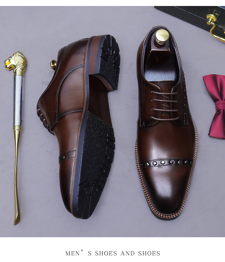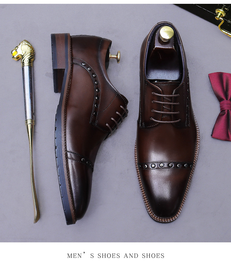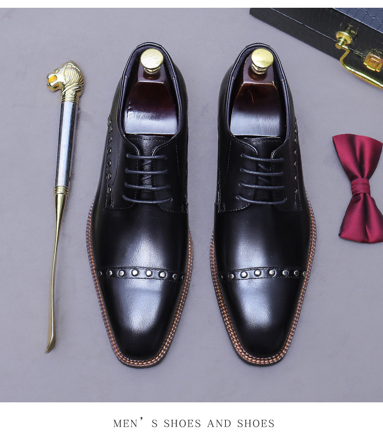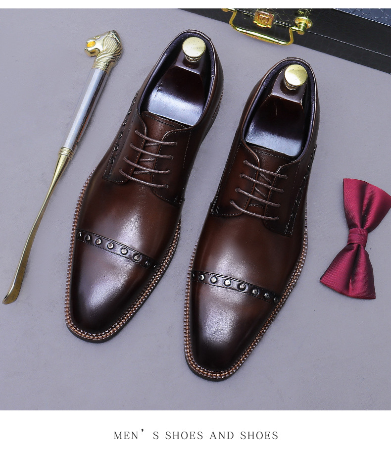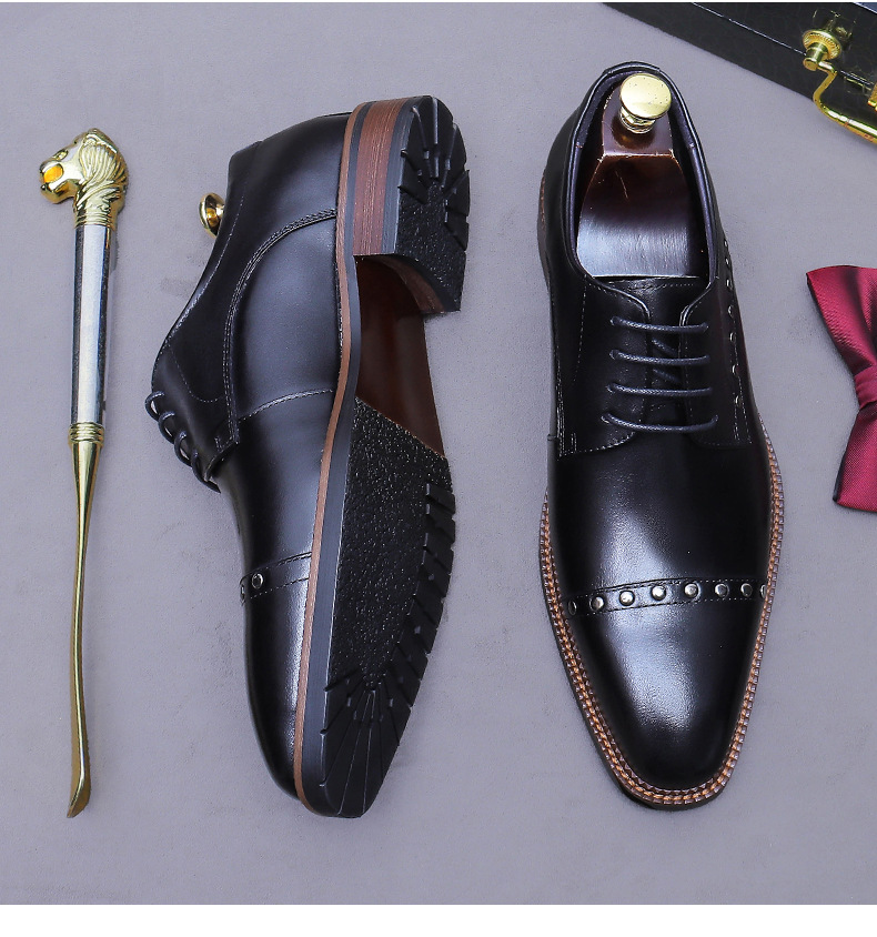 Giày da thật dành cho nam, kiểu dáng kết hợp giữa công sở và thoải mái. Sản phẩm có mũi nhọn và phần thân trước được ghép nối, điểm nhấn là các đinh tán trang trí. Làm từ chất liệu da bò bền đẹp, đế giày chắc chắn. Bạn có thể dùng để đi làm hoặc dạo phố, phù hợp với nhiều hoàn cảnh. Mang giày cùng tất để có cảm giác êm ái và bảo vệ giày được lâu hơn. | Tên sản phẩm: Giày Da Nam Chất Liệu Da Bò Big Size Ngoại Cỡ Mũi Nhọn Phục Cổ Cổ Điển - Giày Dép Nam | Mã sản phẩm: B2804 - Giá: 2.260.000đ | Mã nhà sản xuất: ASTYCH-G05Hình ảnh sản phẩm