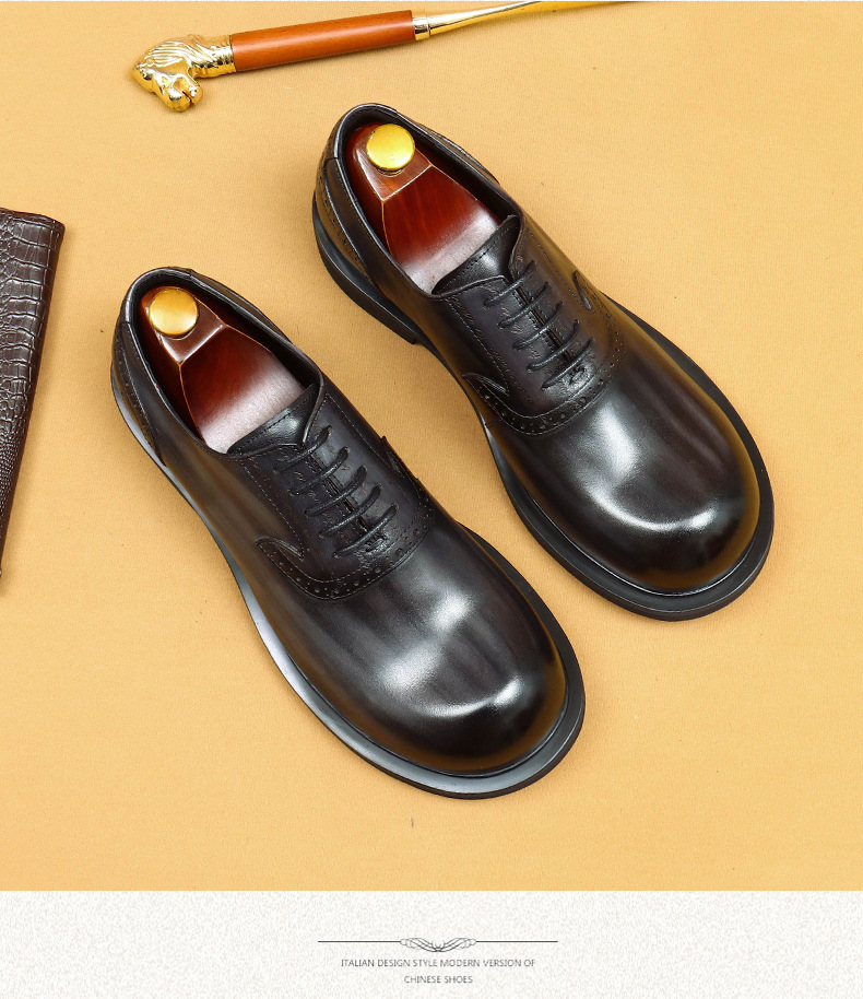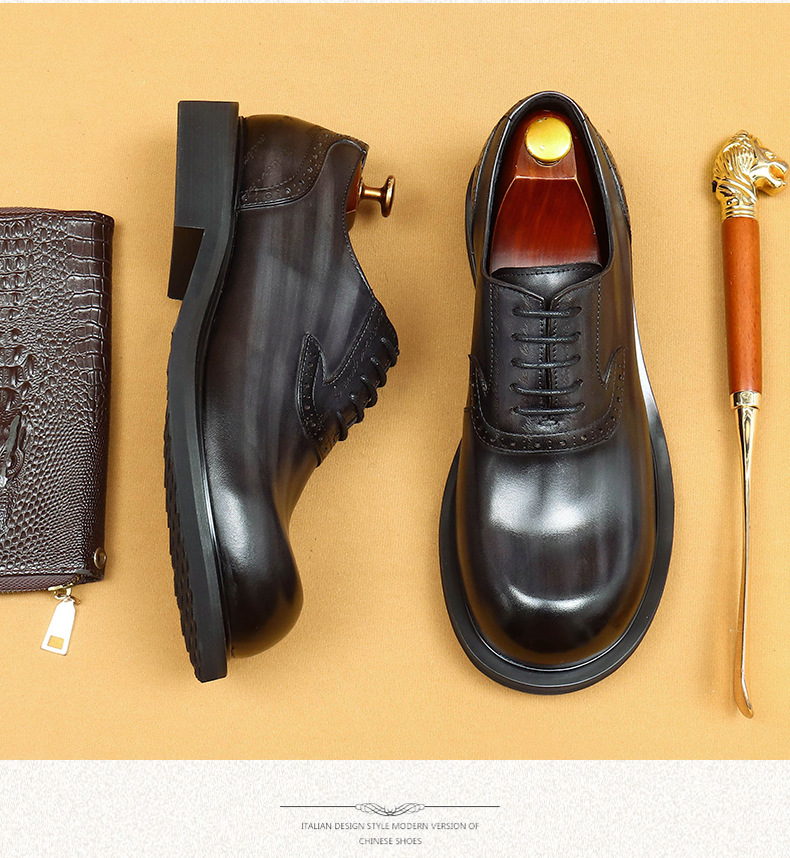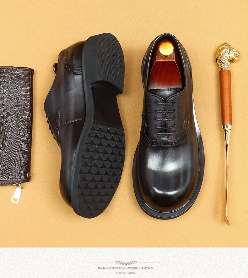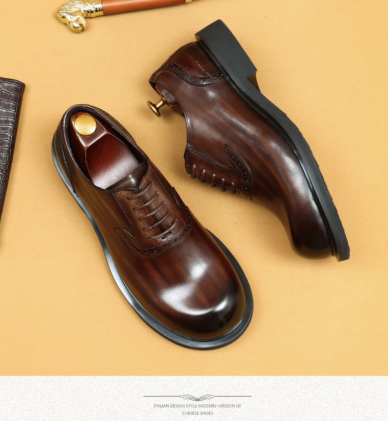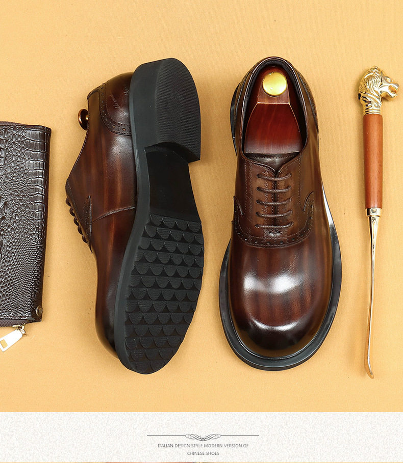 Đôi giày da này mang phong cách cổ điển châu Âu, phù hợp cho cả công sở và dạo phố. Sản phẩm được làm từ chất liệu da thật, kiểu dáng tròn cổ điển với hiệu ứng màu đánh bóng độc đáo. Đế giày được thiết kế ôm chân, tạo cảm giác dễ chịu khi mang trong thời gian dài. Bạn có thể kết hợp cùng quần tây hoặc quần âu để có vẻ ngoài chỉn chu. Sử dụng dung dịch vệ sinh chuyên dụng để lau sạch và bảo quản nơi khô ráo. | Tên sản phẩm: Giày Da Nam Chất Liệu Da Bò Big Size Ngoại Cỡ Mũi Tròn Phục Cổ Cổ Điển - Giày Dép Nam | Mã sản phẩm: L0502 - Giá: 2.360.000đ | Mã nhà sản xuất: SHERAW-G05Hình ảnh sản phẩm