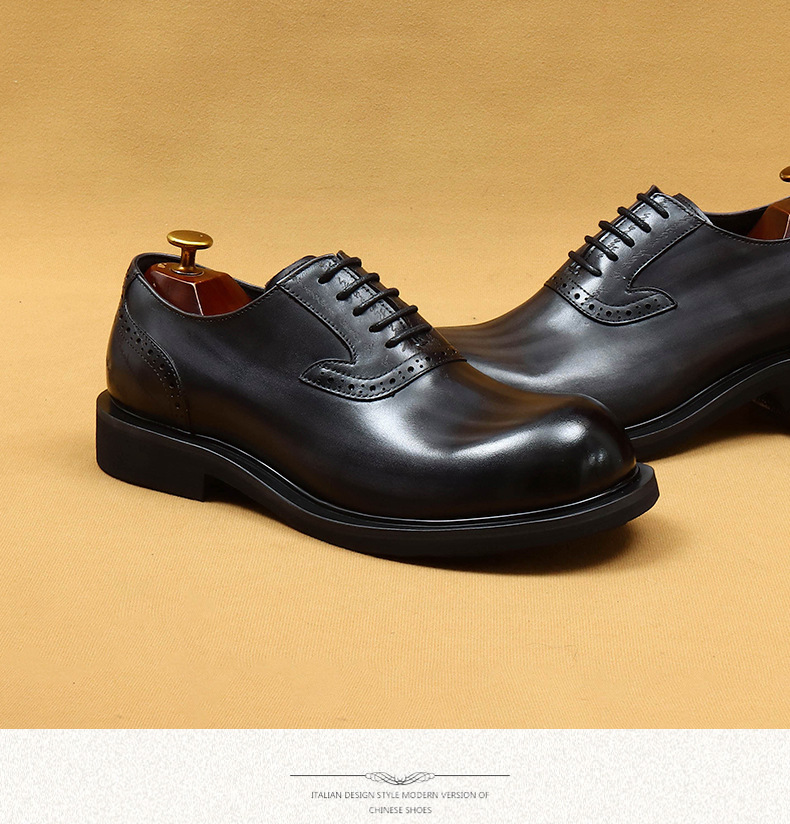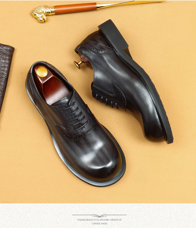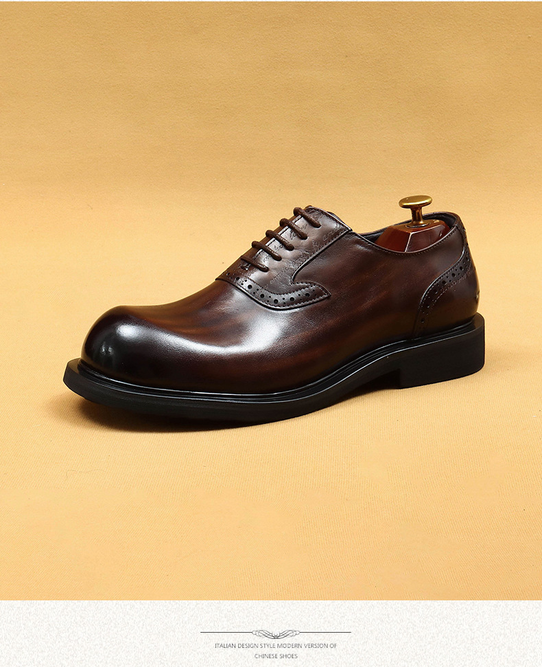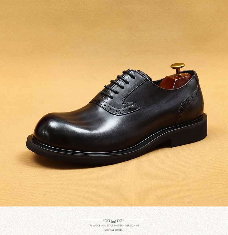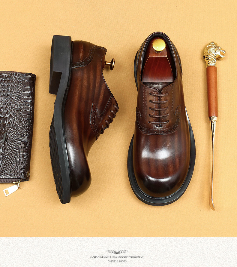Đôi giày da này mang phong cách cổ điển châu Âu, phù hợp cho cả công sở và dạo phố. Sản phẩm được làm từ chất liệu da thật, kiểu dáng tròn cổ điển với hiệu ứng màu đánh bóng độc đáo. Đế giày được thiết kế ôm chân, tạo cảm giác dễ chịu khi mang trong thời gian dài. Bạn có thể kết hợp cùng quần tây hoặc quần âu để có vẻ ngoài chỉn chu. Sử dụng dung dịch vệ sinh chuyên dụng để lau sạch và bảo quản nơi khô ráo. | Tên sản phẩm: Giày Da Nam Chất Liệu Da Bò Big Size Ngoại Cỡ Mũi Tròn Phục Cổ Cổ Điển - Giày Dép Nam | Mã sản phẩm: L0502 - Giá: 2.360.000đ | Mã nhà sản xuất: SHERAW-G05Hình ảnh sản phẩm