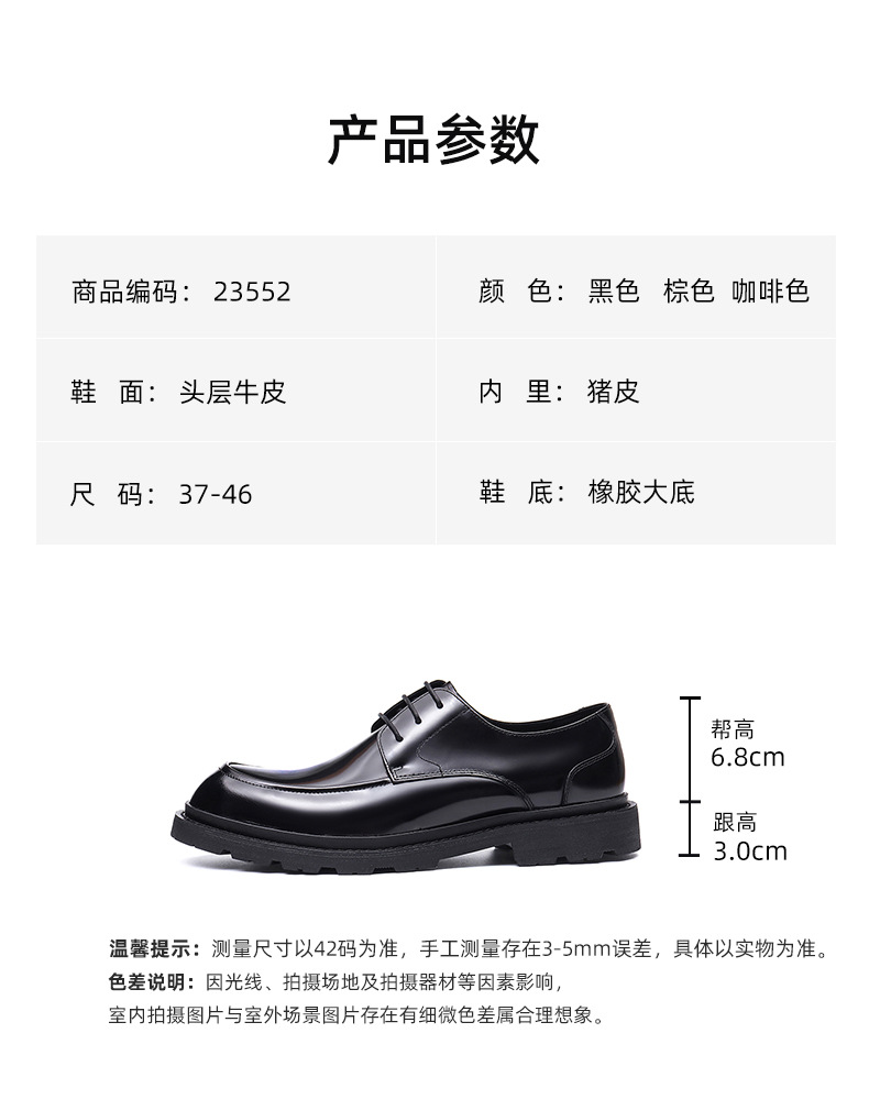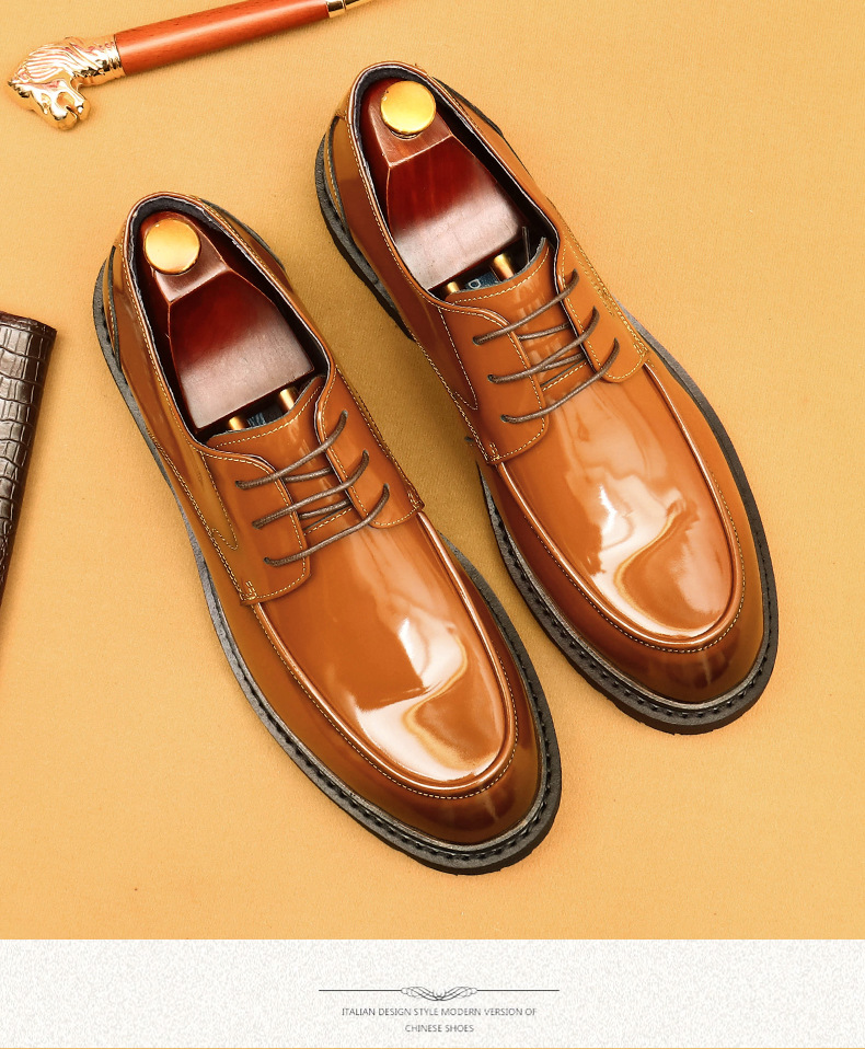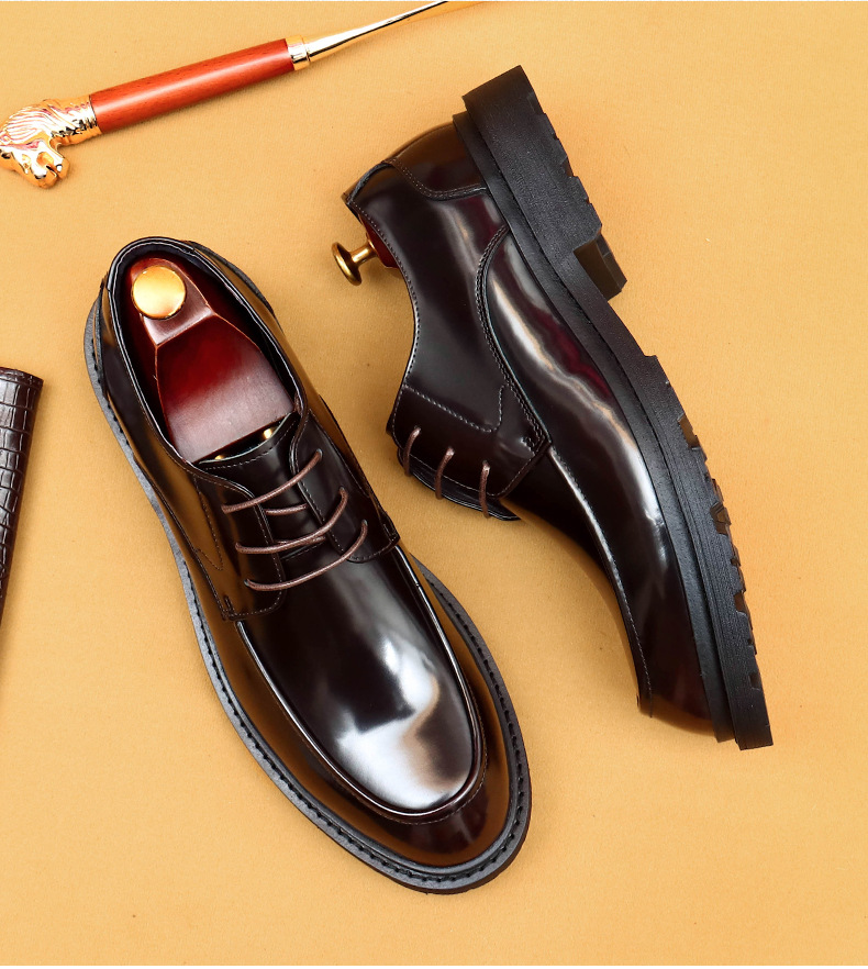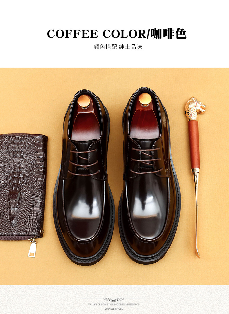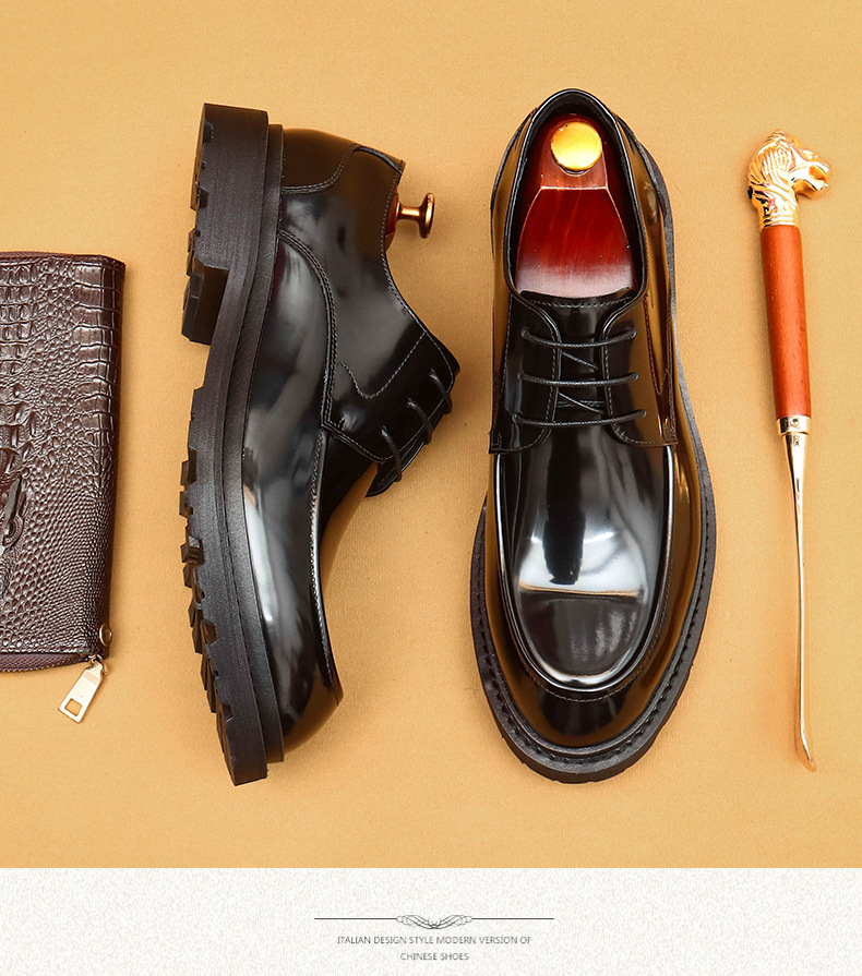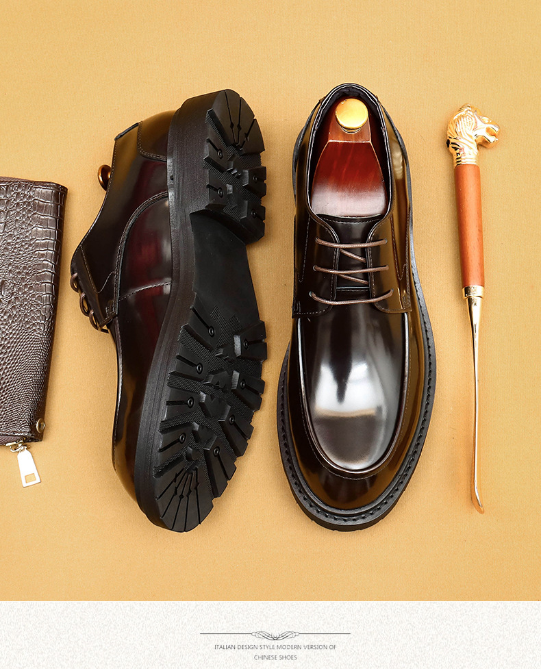 Giày da lịch sự dành cho nam, kiểu dáng mũi vuông rộng tạo cảm giác thoải mái. Mặt giày bóng đẹp, kết hợp với phần đế dày vững chãi. Chất liệu da thật mang đến độ bền tốt cho đôi giày. Sản phẩm phù hợp để mang trong những dịp làm việc hay các buổi gặp mặt. Có thể kết hợp cùng trang phục như quần âu để có vẻ ngoài chỉn chu. | Tên sản phẩm: Giày Da Nam Chất Liệu Da Bò Đế Cao - Giày Dép Nam | Mã sản phẩm: L0438 - Giá: 2.260.000đ | Mã nhà sản xuất: SHERAW-G05Hình ảnh sản phẩm