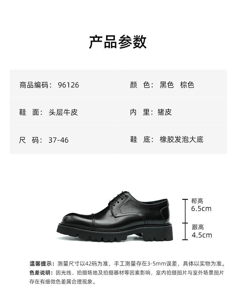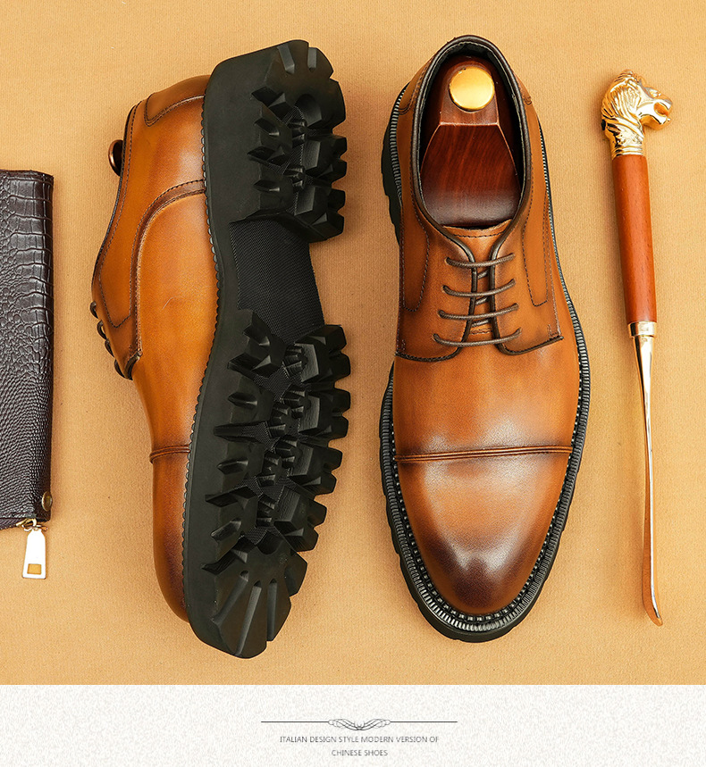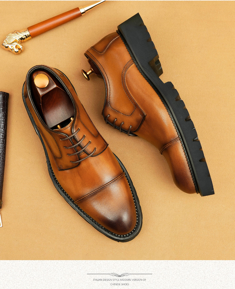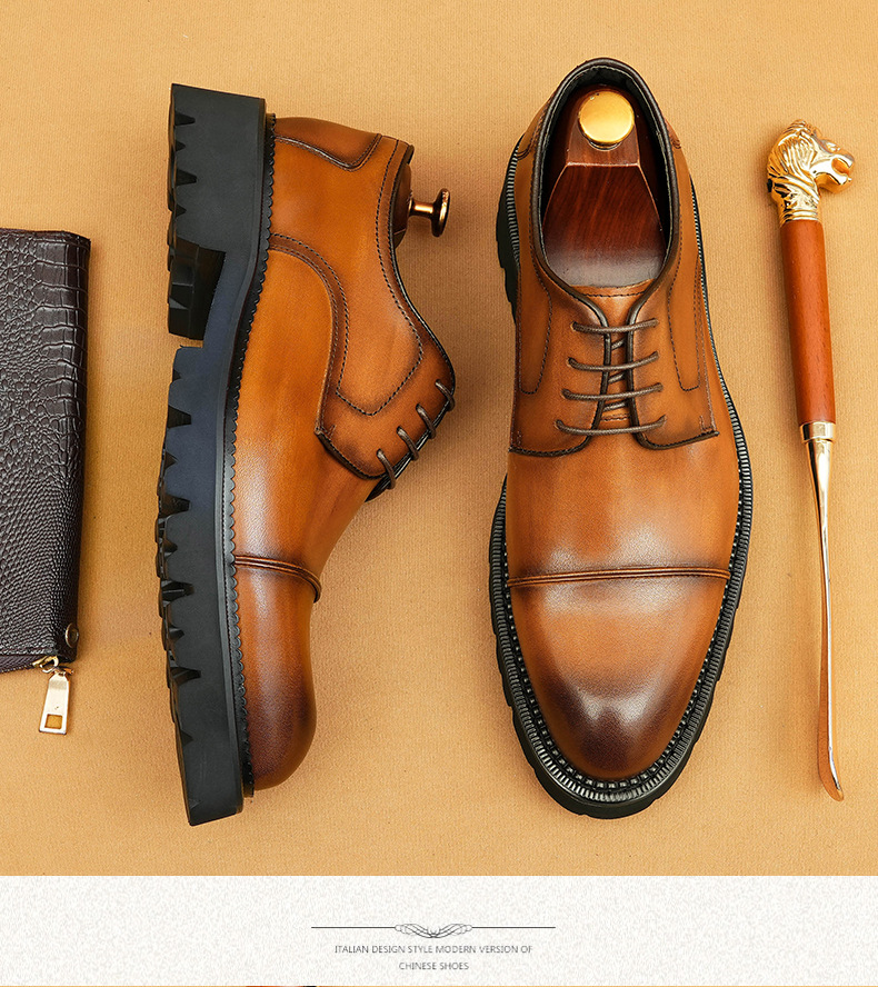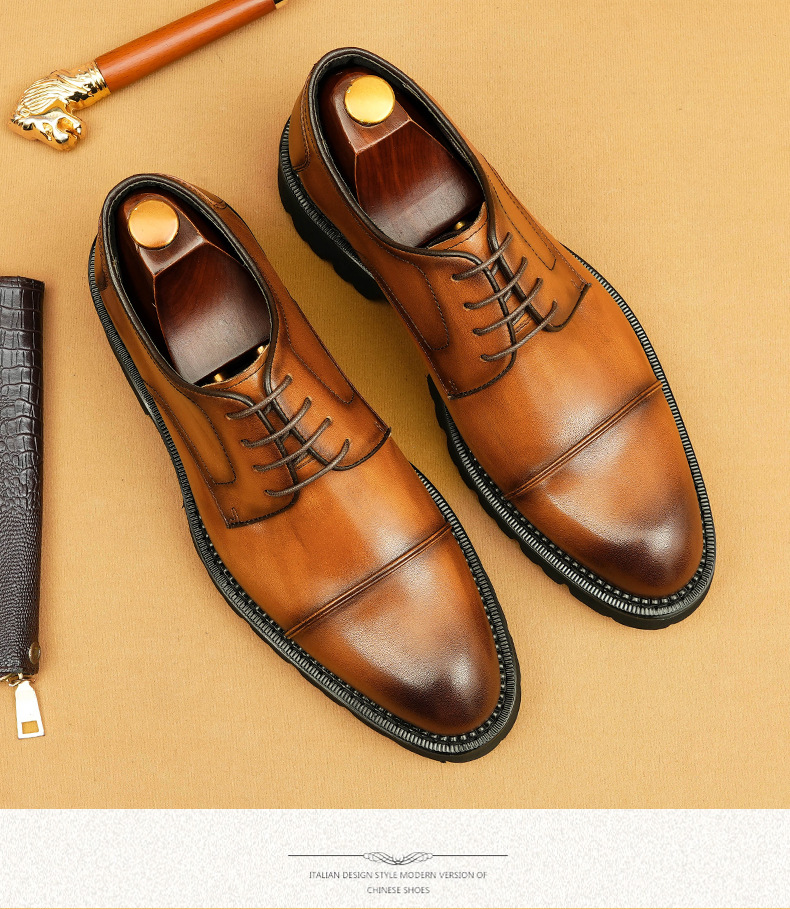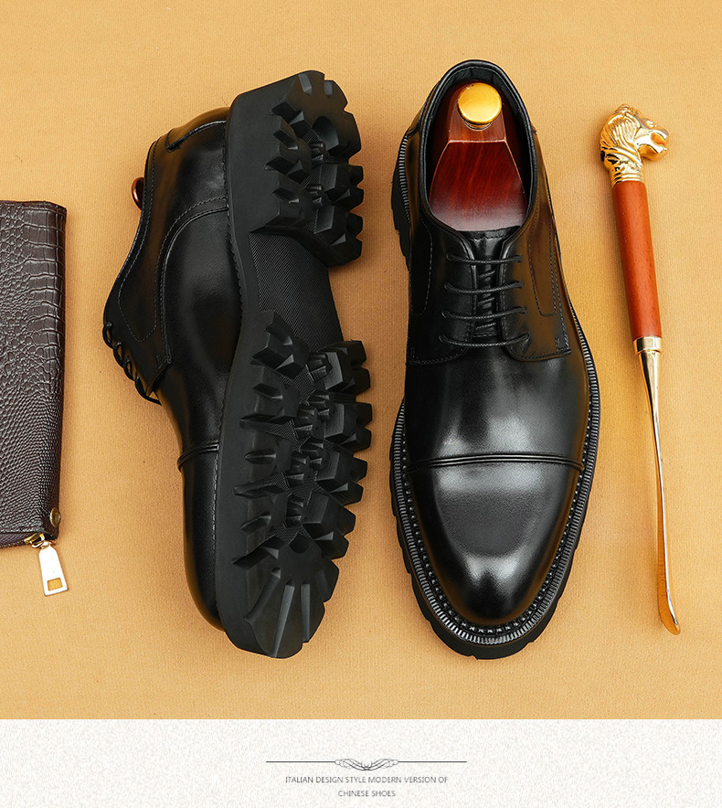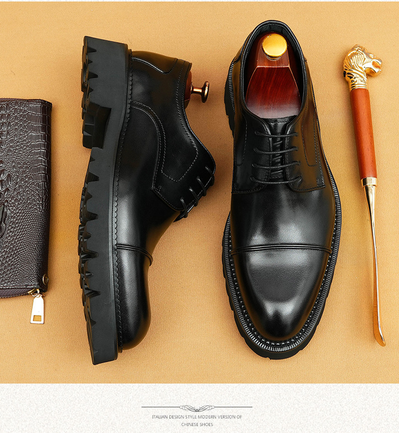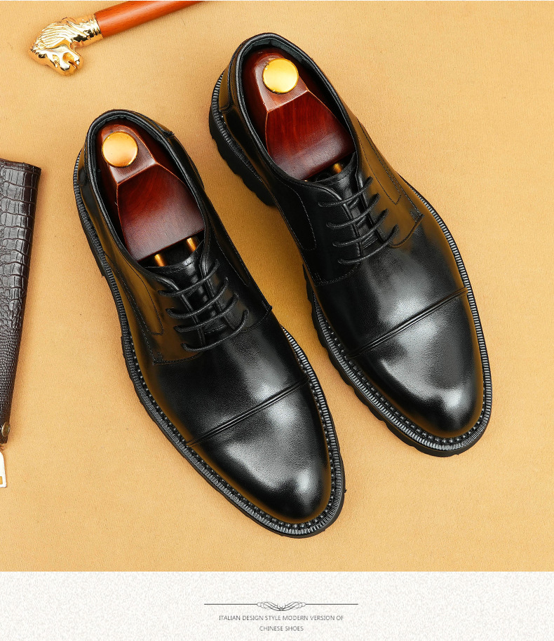 Giày da thật dành cho nam, phong cách thiết kế ba mảnh kinh điển tạo nên vẻ lịch sự và tinh tế. Form giày ôm chân vừa vặn, phần đế dày mang lại cảm giác thoải mái khi di chuyển cả ngày. Sản phẩm phù hợp cho nhiều dịp như làm việc, gặp đối tác hay dự những buổi tiệc thông thường. Cách sử dụng đơn giản, thường xuyên vệ sinh bằng khăn mềm và bảo quản nơi khô ráo để giữ được vẻ đẹp lâu bền cho đôi giày. | Tên sản phẩm: Giày Da Nam Chất Liệu Da Bò Đế Cao - Giày Dép Nam | Mã sản phẩm: B1075 - Giá: 2.360.000đ | Mã nhà sản xuất: SHDAP-G05Hình ảnh sản phẩm
