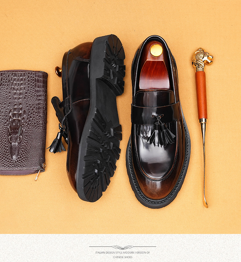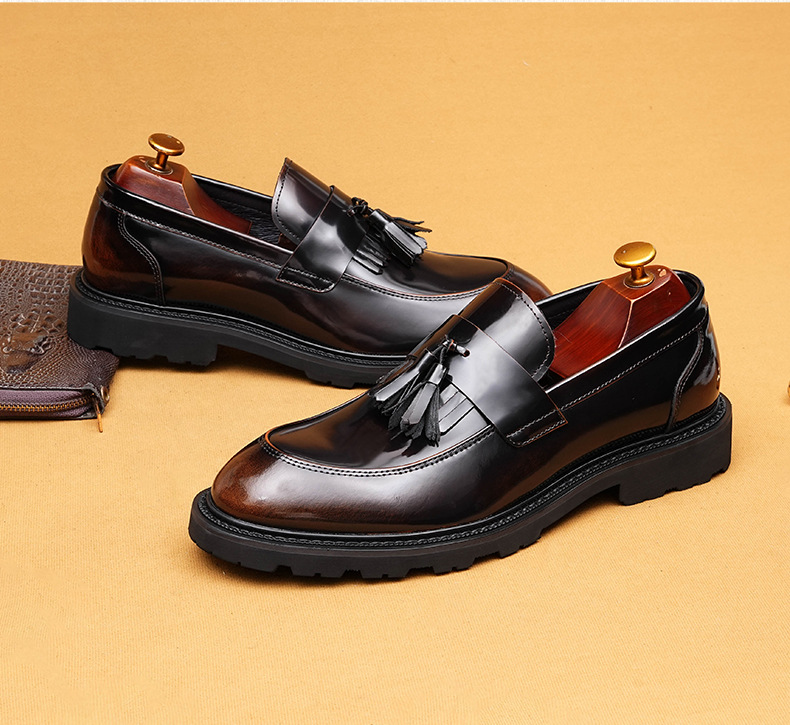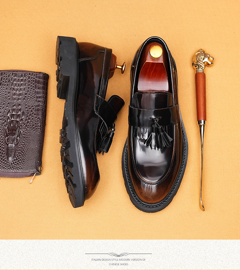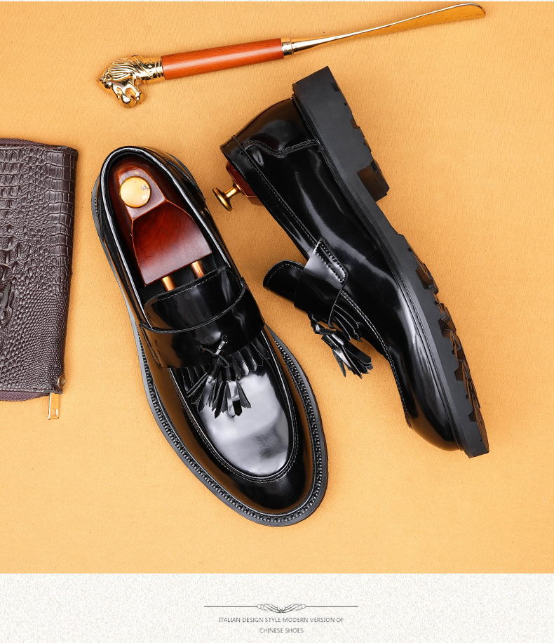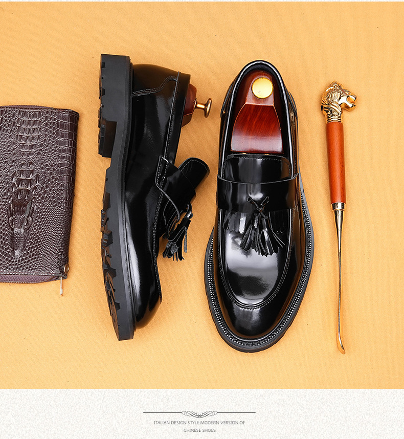 Giày tây dành cho nam với bề mặt bóng đẹp, được làm từ chất liệu da thật. Kiểu dáng phối thắt nơ lịch sự mang phong cách châu Âu hiện đại. Thiết kế cổ thấp không cần buộc dây, rất tiện lợi khi mang vào hay tháo ra. Đế giày được thiết kế có độ dày vừa phải, tạo cảm giác thoải mái khi di chuyển. Sản phẩm phù hợp cho cả những dịp cần sự chỉn chu trong công việc và những lúc sinh hoạt thường ngày. | Tên sản phẩm: Giày Da Nam Chất Liệu Da Bò Đế Cao - Giày Dép Nam | Mã sản phẩm: B1414 - Giá: 2.410.000đ | Mã nhà sản xuất: SHDAP-G05Hình ảnh sản phẩm