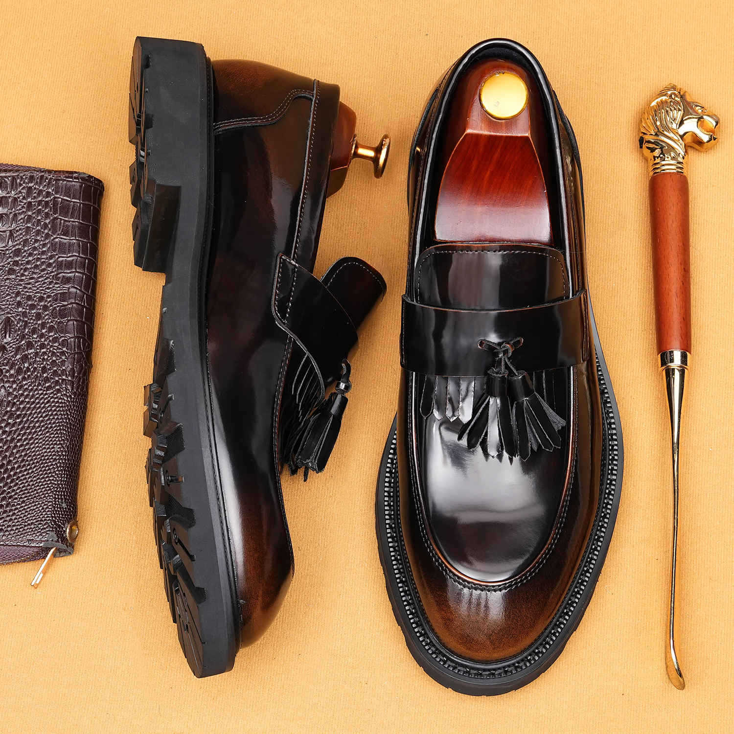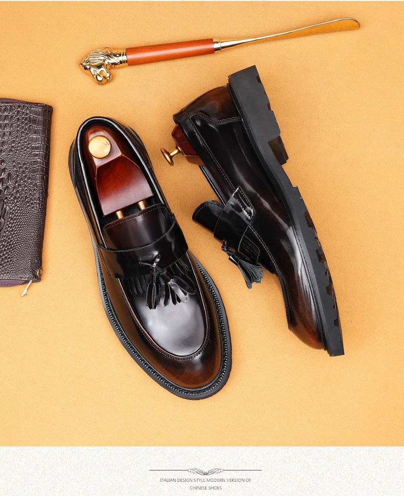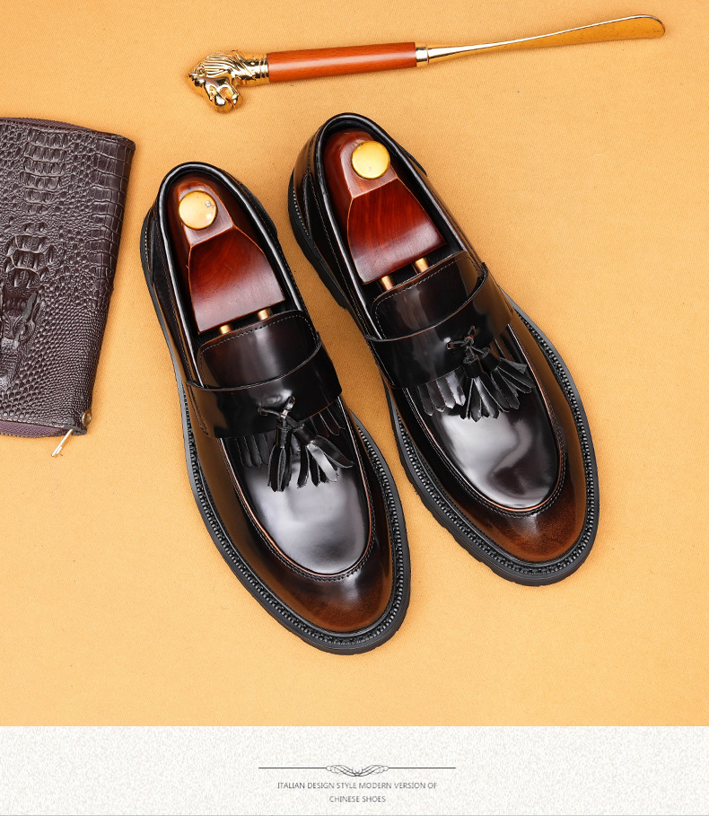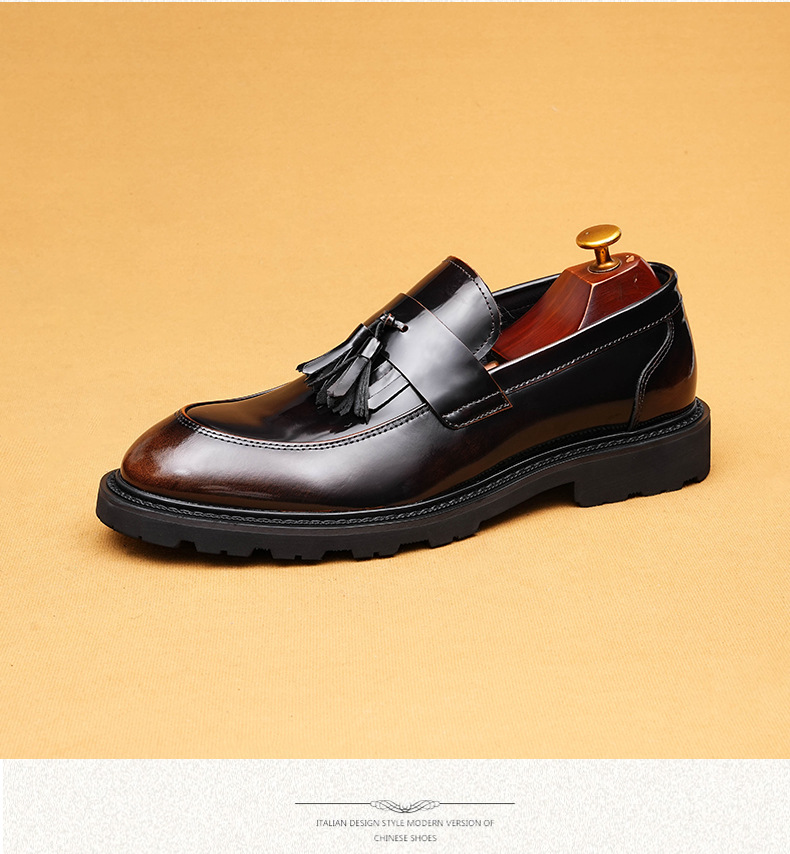 Giày tây dành cho nam với bề mặt bóng đẹp, được làm từ chất liệu da thật. Kiểu dáng phối thắt nơ lịch sự mang phong cách châu Âu hiện đại. Thiết kế cổ thấp không cần buộc dây, rất tiện lợi khi mang vào hay tháo ra. Đế giày được thiết kế có độ dày vừa phải, tạo cảm giác thoải mái khi di chuyển. Sản phẩm phù hợp cho cả những dịp cần sự chỉn chu trong công việc và những lúc sinh hoạt thường ngày. | Tên sản phẩm: Giày Da Nam Chất Liệu Da Bò Đế Cao - Giày Dép Nam | Mã sản phẩm: B1414 - Giá: 2.410.000đ | Mã nhà sản xuất: SHDAP-G05Hình ảnh sản phẩm