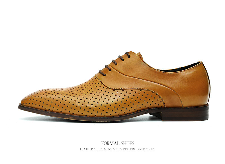 Giày nam thiết kế dáng Oxford thanh lịch, phù hợp cho môi trường công sở. Sản phẩm được làm từ chất liệu da bò mềm mại tự nhiên, kết hợp đế nhẹ tạo cảm giác dễ chịu khi mang. Các chi tiết đục lỗ tinh tế giúp đôi chân luôn thông thoáng, giảm bớt hầm nóng trong những ngày hè. Bạn có thể dùng cùng bộ đồ công sở hoặc trang phục tối giản để tạo phong cách chỉn chu. | Tên sản phẩm: Giày Da Nam Chất Liệu Da Bò Đế Mềm Thoáng Khí Hàng Mùa Hè - Giày Dép Nam | Mã sản phẩm: A0194 - Giá: 2.360.000đ | Mã nhà sản xuất: SHRYIC-G05Hình ảnh sản phẩm