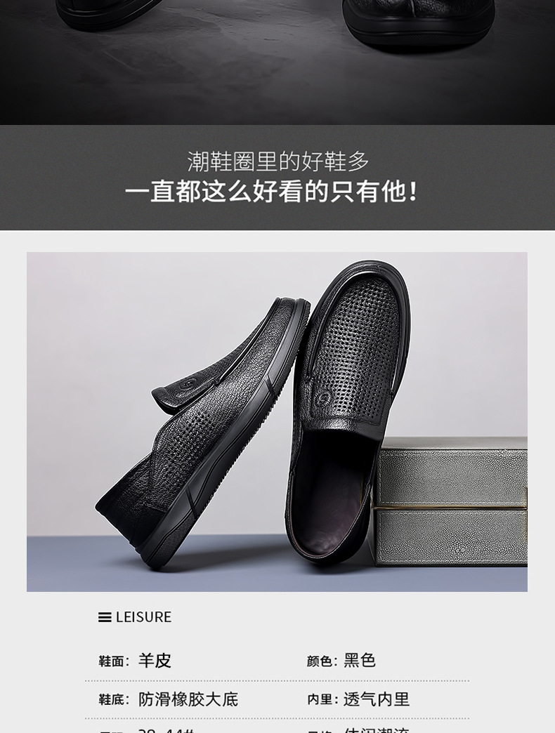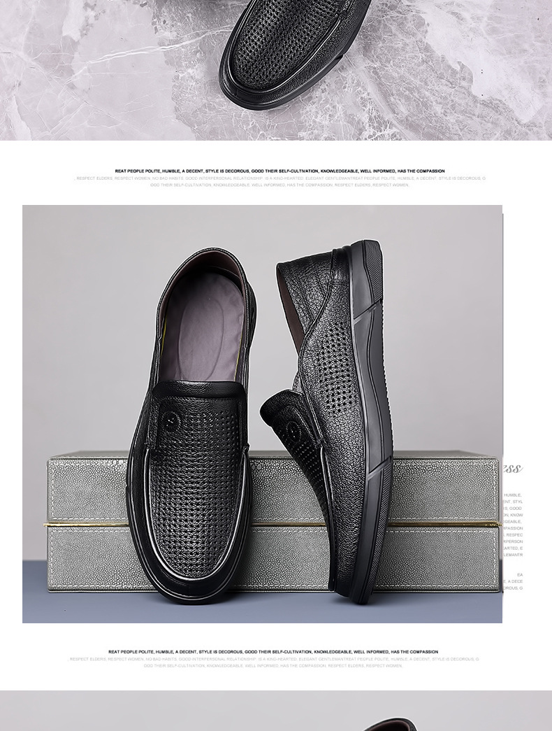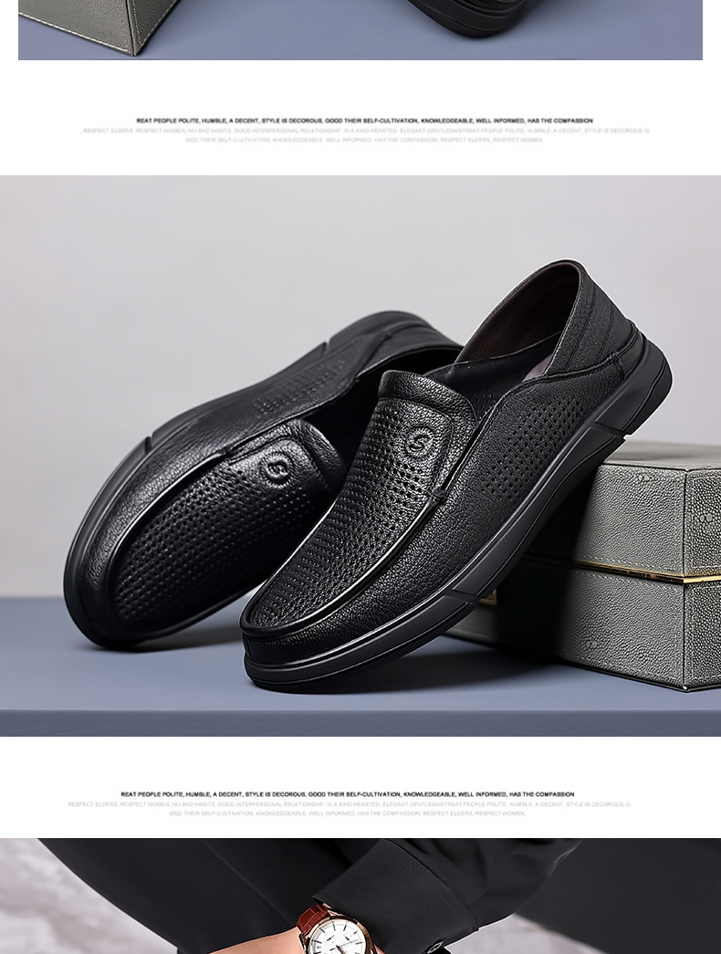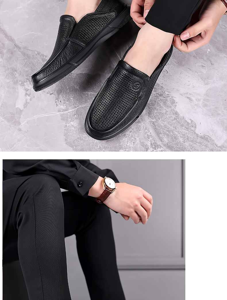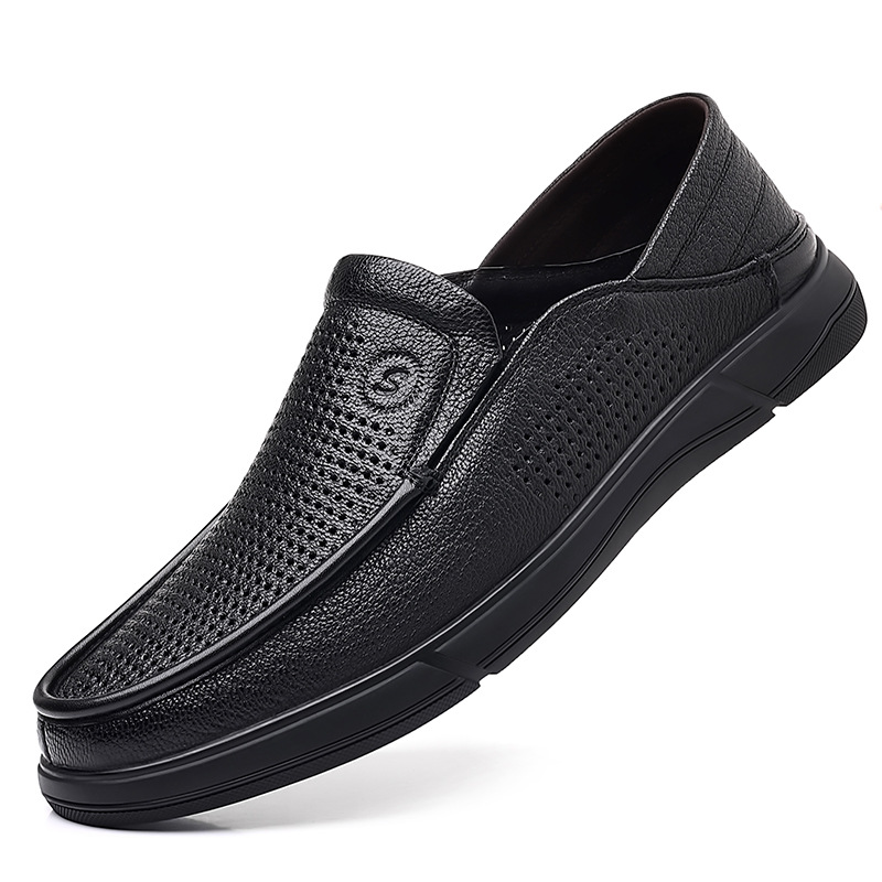 Giày nam thiết kế dạng hở nhiều lỗ nhỏ tạo sự thông thoáng, phù hợp cho mùa hè. Sản phẩm có chất liệu từ da thật, đế được làm mềm mại giúp bước chân dễ chịu. Kiểu dáng giày lười dễ dàng xỏ chân vào và tháo ra mà không cần cột dây. Bạn có thể sử dụng hằng ngày khi đi làm, dạo phố hay trong các sinh hoạt thường nhật. | Tên sản phẩm: Giày Da Nam Chất Liệu Da Bò Đế Mềm Thoáng Khí Hàng Mùa Hè Trung Niên - Giày Dép Nam | Mã sản phẩm: B3332 - Giá: 1.020.000đ | Mã nhà sản xuất: WEDS-G03Hình ảnh sản phẩm