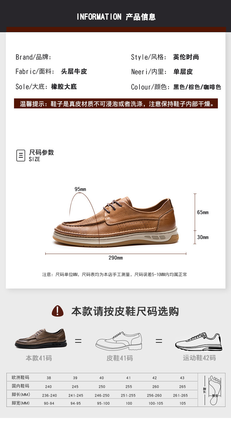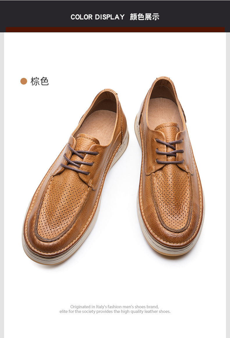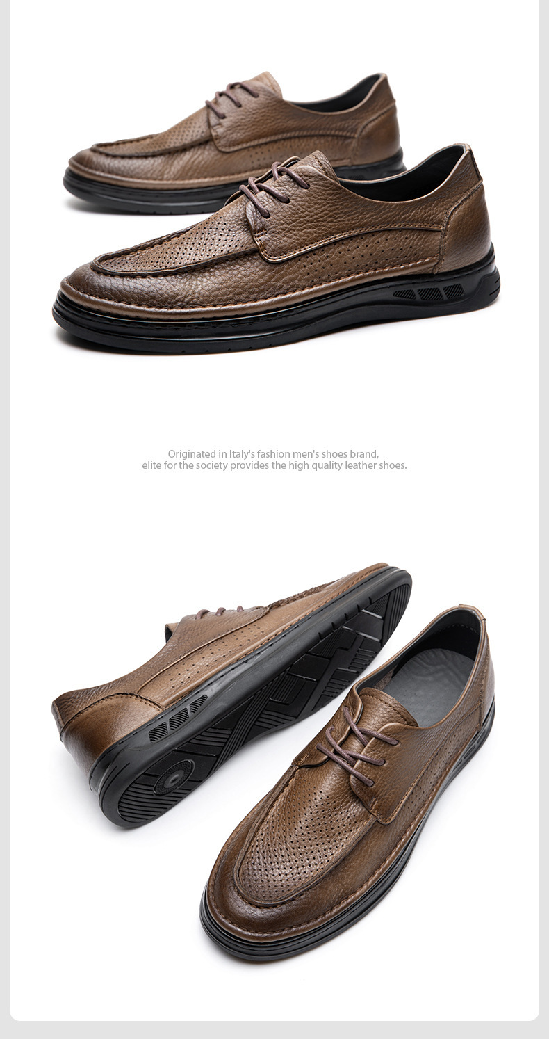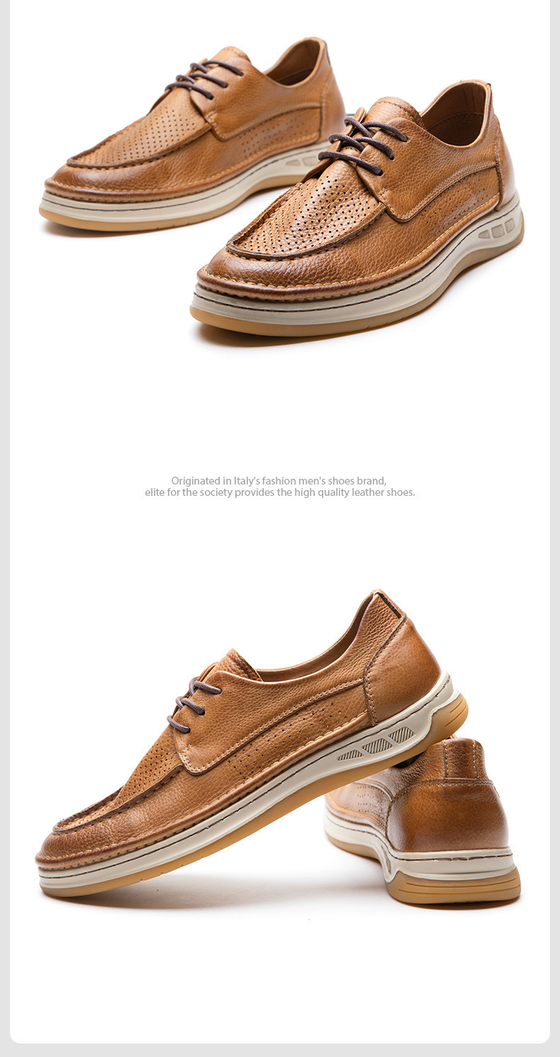 Đôi giày da thật dành cho nam, với kiểu dáng cổ điển pha chút hoài cổ. Mặt trên được thiết kế đục lỗ tinh tế, giúp đôi chân luôn thông thoáng, dễ chịu trong những ngày hè. Sản phẩm được làm thủ công tỉ mỉ, phù hợp cho cả những buổi làm việc thông thường lẫn sinh hoạt hằng ngày. Bạn có thể dễ dàng phối cùng quần âu hoặc quần vải để có được vẻ ngoài chỉn chu. | Tên sản phẩm: Giày Da Nam Chất Liệu Da Bò Hàng Mùa Hè Phong Cách Trẻ Trung Phục Cổ Cổ Điển - Giày Dép Nam | Mã sản phẩm: B1335 - Giá: 2.590.000đ | Mã nhà sản xuất: SHDT-G06Hình ảnh sản phẩm