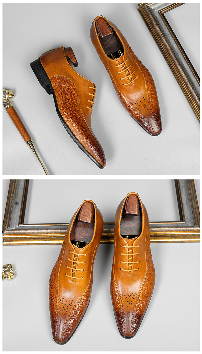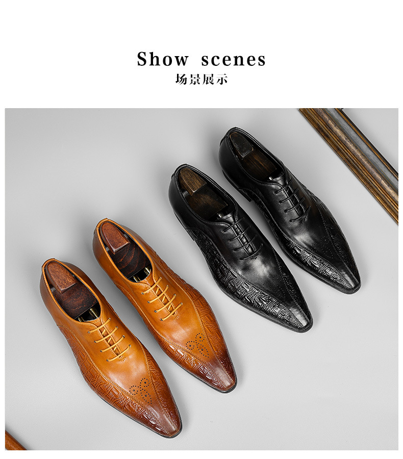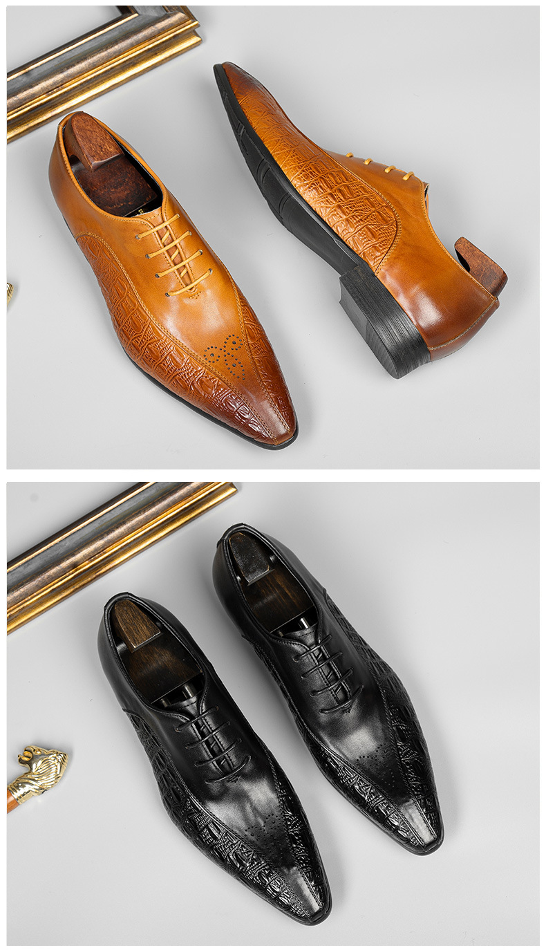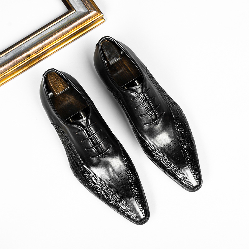 Giày da thật dành cho nam, kiểu dáng công sự với thiết kế lỗ thông hơi giúp đôi chân luôn khô ráo và dễ chịu. Phong cách Anh Quốc cổ điển kết hợp họa tiết khắc trang nhã, tạo điểm nhấn tinh tế. Sản phẩm phù hợp cho nhiều dịp như đi làm, dự tiệc hoặc trong ngày trọng đại. Sử dụng bằng cách kết hợp cùng trang phục chỉnh tề như quần âu hay veston để hoàn thiện phong cách lịch lãm. | Tên sản phẩm: Giày Da Nam Chất Liệu Da Bò Họa Tiết Hoa Thoáng Khí - Giày Dép Nam | Mã sản phẩm: H3577 - Giá: 2.660.000đ | Mã nhà sản xuất: SHDI-G06Hình ảnh sản phẩm