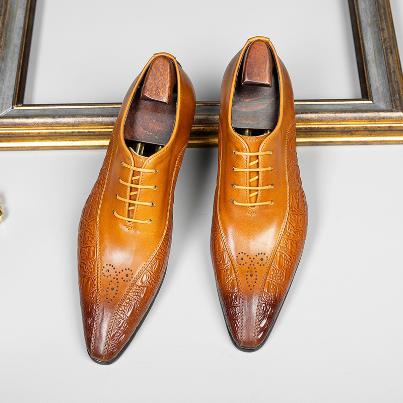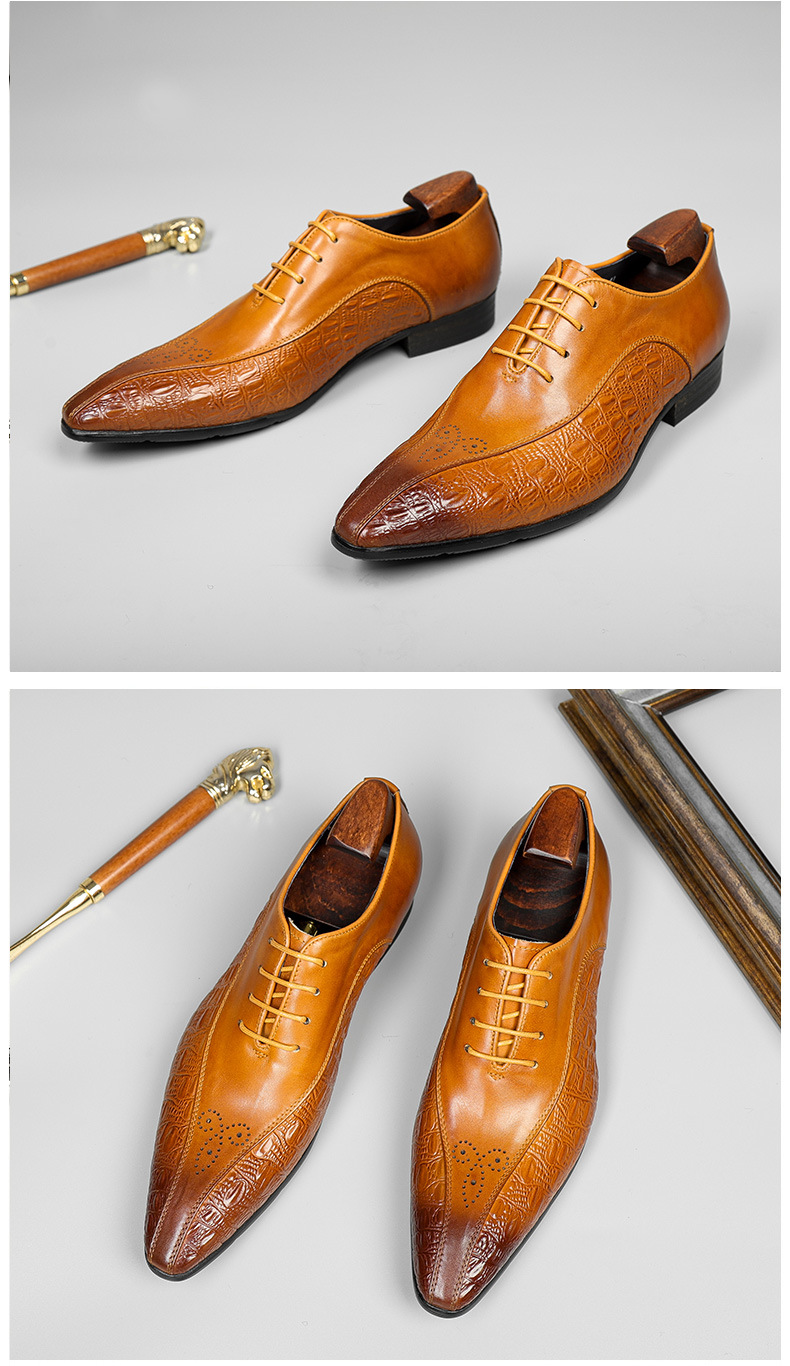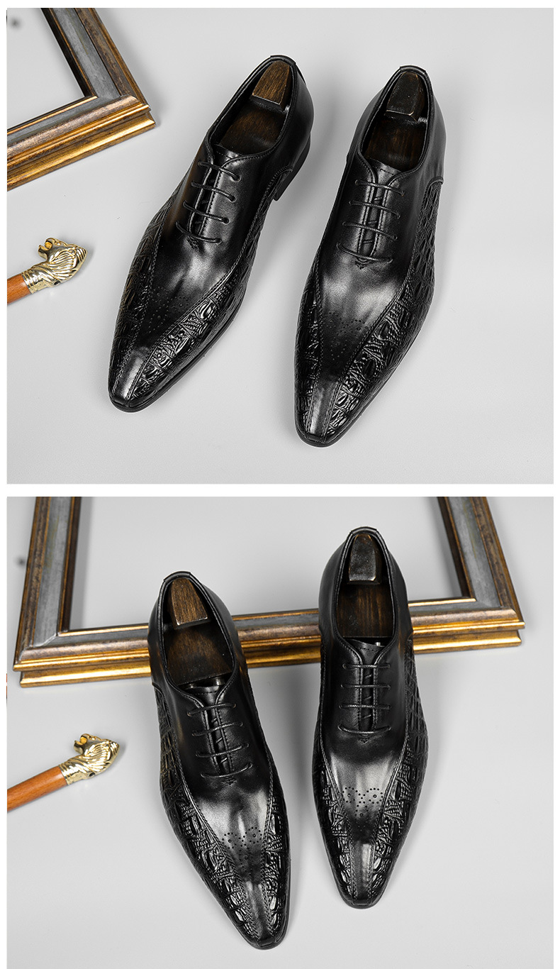 Giày da thật dành cho nam, kiểu dáng công sự với thiết kế lỗ thông hơi giúp đôi chân luôn khô ráo và dễ chịu. Phong cách Anh Quốc cổ điển kết hợp họa tiết khắc trang nhã, tạo điểm nhấn tinh tế. Sản phẩm phù hợp cho nhiều dịp như đi làm, dự tiệc hoặc trong ngày trọng đại. Sử dụng bằng cách kết hợp cùng trang phục chỉnh tề như quần âu hay veston để hoàn thiện phong cách lịch lãm. | Tên sản phẩm: Giày Da Nam Chất Liệu Da Bò Họa Tiết Hoa Thoáng Khí - Giày Dép Nam | Mã sản phẩm: H3577 - Giá: 2.660.000đ | Mã nhà sản xuất: SHDI-G06Hình ảnh sản phẩm