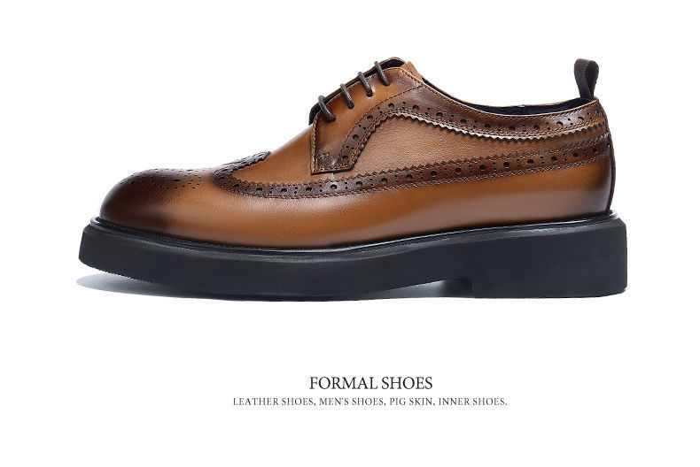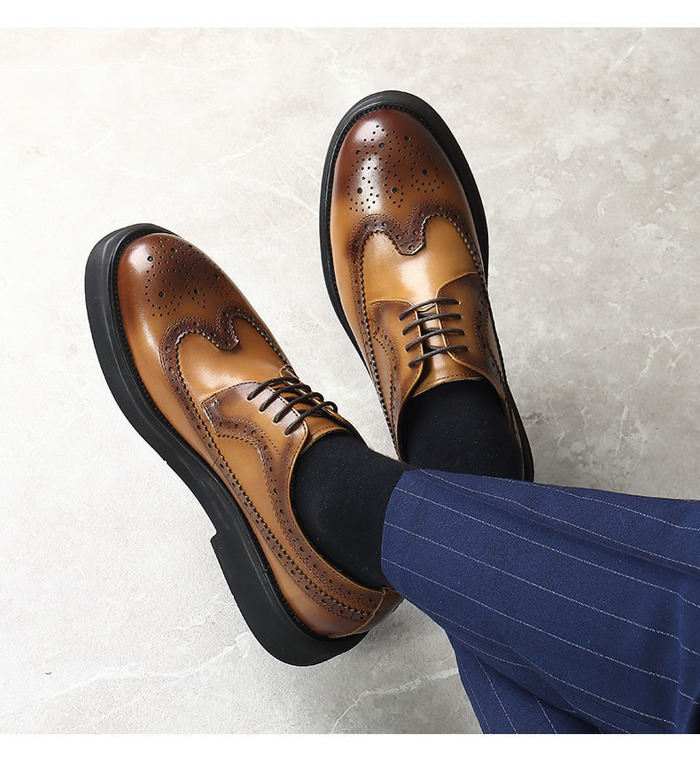 Giày da dành cho nam giới, thiết kế phù hợp khi mặc vest đi làm hoặc dự các sự kiện. Sản phẩm được làm từ chất liệu da bò mềm mại, bề mặt có họa tiết trang trí tinh xảo. Đế giày được thiết kế có độ cao vừa phải, giúp tăng chiều cao một cách tự nhiên. Bên trong giày có các lỗ thông khí nhỏ, tạo cảm giác thoải mái và dễ chịu khi mang trong thời gian dài. Kiểu dáng mang chút phong cách cổ điển, phù hợp với nhiều dịp khác nhau. | Tên sản phẩm: Giày Da Nam Chất Liệu Da Bò Họa Tiết Hoa Thoáng Khí Phục Cổ Cổ Điển - Giày Dép Nam | Mã sản phẩm: A0061 - Giá: 2.160.000đ | Mã nhà sản xuất: SHRYIC-G05Hình ảnh sản phẩm
