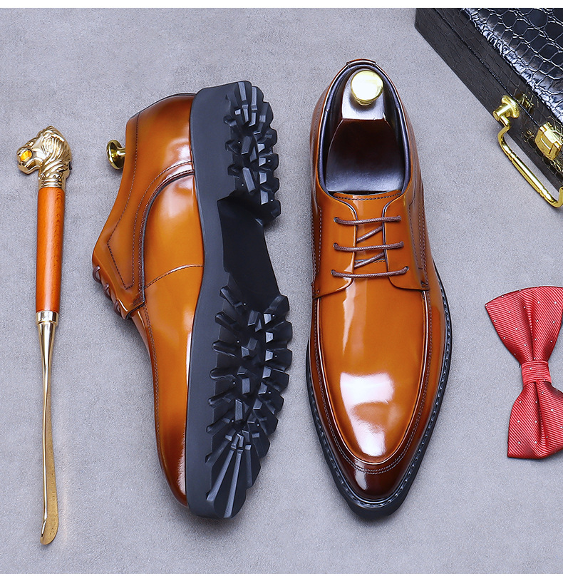 Đôi giày da này dành cho nam giới, được làm từ chất liệu da thật mềm mại, tạo cảm giác dễ chịu khi mang. Kiểu dáng kết hợp giữa đi làm và dạo phố, có dây buộc và mũi nhọn thanh lịch. Đế giày được thiết kế có độ dày vừa phải, bề mặt bóng mịn. Phù hợp để phối cùng trang phục khi đi làm hoặc những dịp cần sự chỉn chu. Sử dụng hàng ngày và vệ sinh bằng khăn mềm ẩm để giữ giày luôn sạch đẹp. | Tên sản phẩm: Giày Da Nam Chất Liệu Da Bò Mũi Nhọn Đế Cao - Giày Dép Nam | Mã sản phẩm: B2594 - Giá: 2.260.000đ | Mã nhà sản xuất: ASTYCH-G05Hình ảnh sản phẩm
