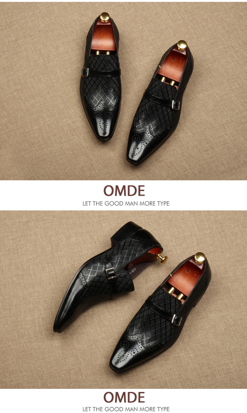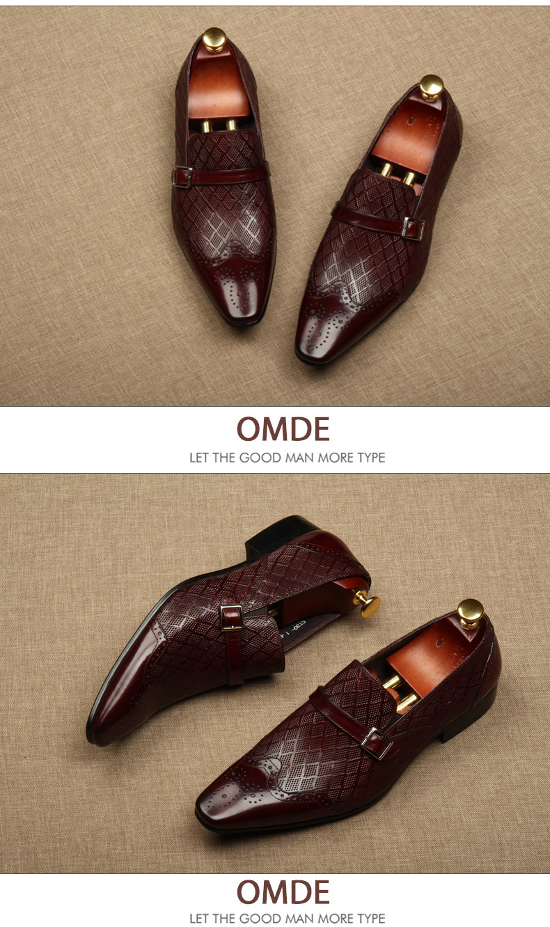 Giày da nam thiết kế mũi nhọn, phong cách kết hợp đi làm và đi chơi. Sản phẩm có các chi tiết hoa văn khắc tinh tế và qu dán tiện lợi. Chất liệu da thật mang đến sự thoải mái và bền lâu. Đế giày được thiết kế các lỗ nhỏ giúp thoáng khí, phù hợp dùng trong mùa hè. Bạn có thể dễ dàng phối cùng quần âu hoặc quần kaki để có vẻ ngoại chỉn chu. | Tên sản phẩm: Giày Da Nam Chất Liệu Da Bò Mũi Nhọn Họa Tiết Hoa Thoáng Khí Hàng Mùa Hè - Giày Dép Nam | Mã sản phẩm: H3799 - Giá: 2.660.000đ | Mã nhà sản xuất: SHDI-G06Hình ảnh sản phẩm