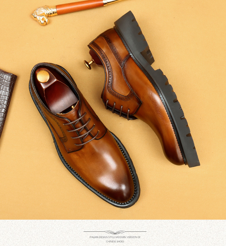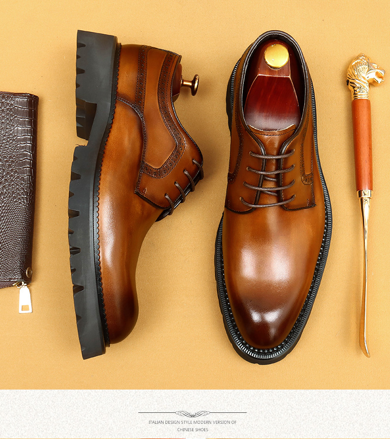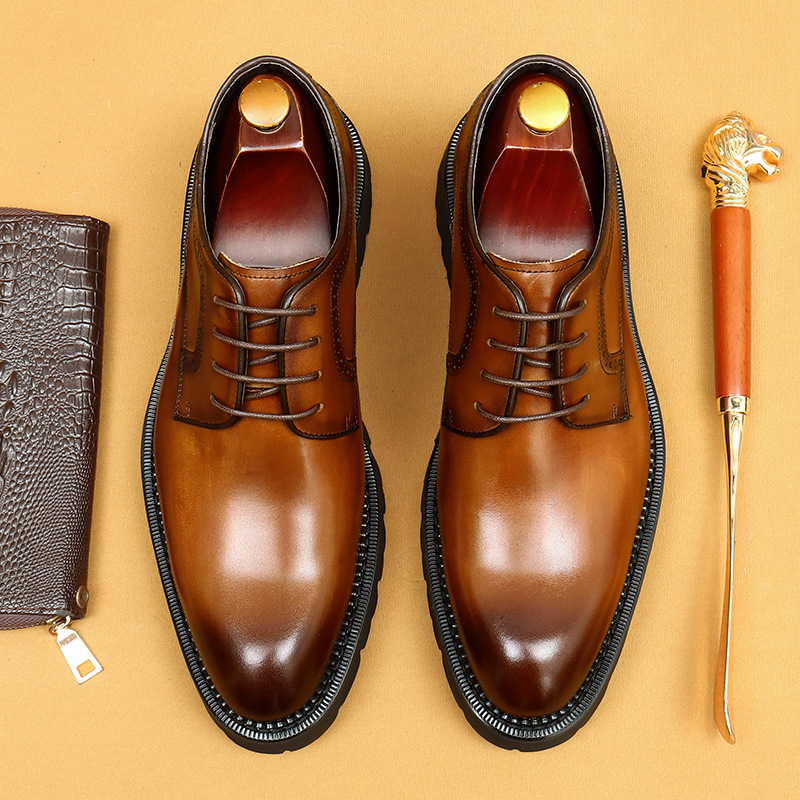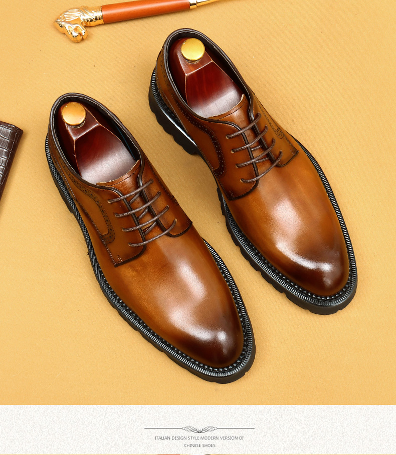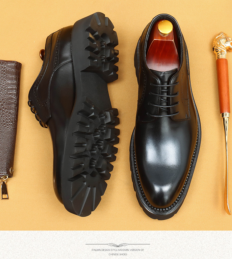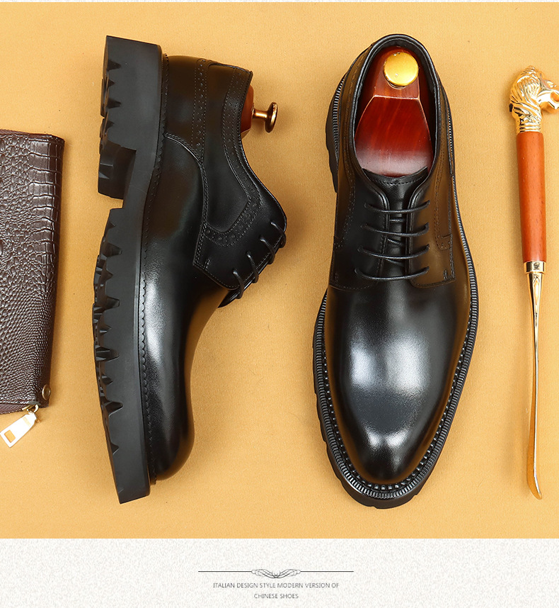 Giày tây nam thiết kế kiểu dáng đi làm, phù hợp cho nhiều dịp. Sản phẩm làm từ chất liệu da thật, mang lại cảm giác thoải mái và bền lâu. Form giày ôm chân vừa vặn với phần mũi nhọn tinh tế. Đế được làm dày hơn một chút, giúp tăng chiều cao nhẹ nhàng khi sử dụng. Bạn có thể dễ dàng phối cùng quần âu hoặc trang phục thông thường để tạo phong cách lịch sự. | Tên sản phẩm: Giày Da Nam Chất Liệu Da Bò Mũi Nhọn Tăng Chiều Cao Đế Cao - Giày Dép Nam | Mã sản phẩm: L0433 - Giá: 2.450.000đ | Mã nhà sản xuất: SHERAW-G05Hình ảnh sản phẩm