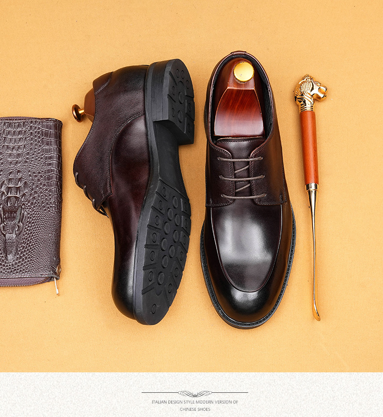 Giày tây dành cho nam, kiểu dáng cổ điển châu Âu với mũi tròn dễ phối đồ. Sản phẩm được làm từ chất liệu da thật, mang lại cảm giác thoải mái khi sử dụng. Bên trong giày có thiết kế hỗ trợ tăng chiều cao một cách tự nhiên, phù hợp cho các dịp quan trọng như lễ cưới hay làm việc. Bạn chỉ cần chọn đúng cỡ và kết hợp cùng bộ vest chỉnh tề là đã có vẻ ngoài lịch lãm. | Tên sản phẩm: Giày Da Nam Chất Liệu Da Bò Mũi Tròn Tăng Chiều Cao Dùng Trong Lễ Cưới Ngày Cưới - Giày Dép Nam | Mã sản phẩm: B1589 - Giá: 2.450.000đ | Mã nhà sản xuất: SHERAW-G05Hình ảnh sản phẩm