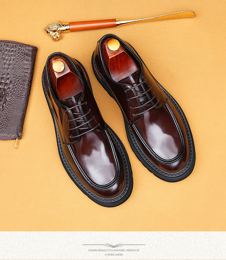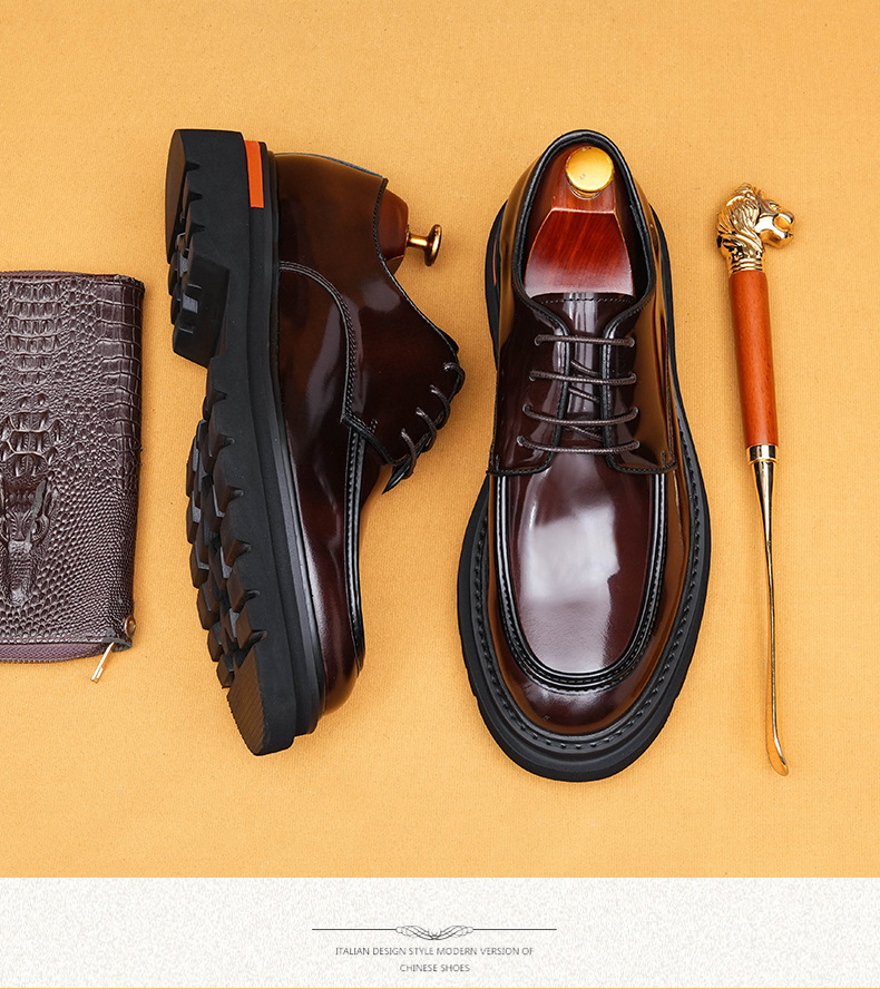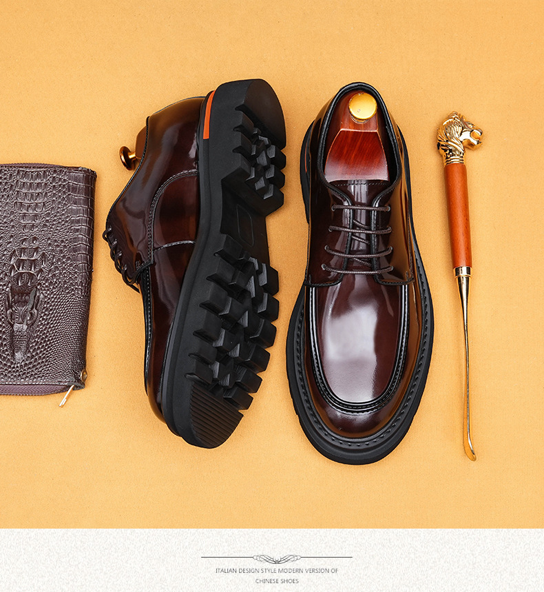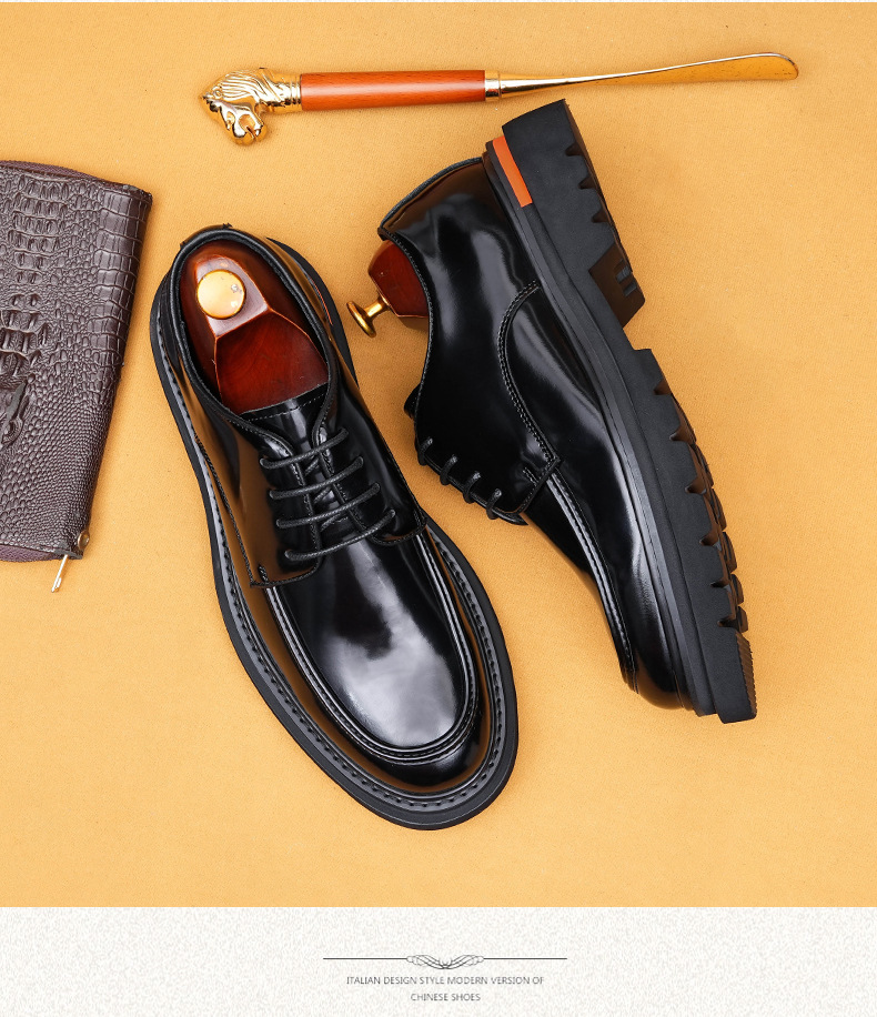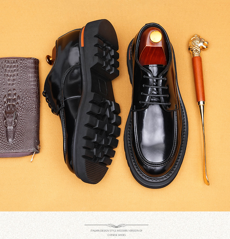 Giày da thật dành cho nam, thiết kế đế dày tạo dáng khỏe khoắn. Bề mặt giày được đánh bóng cho vẻ ngoài sáng bóng và lịch sự. Kiểu dáng phối hợp giữa nét cổ điển và hiện đại, phù hợp cho môi trường công sở hoặc dùng trong những dịp thường ngày. Sản phẩm giúp người mang cảm thấy thoải mái khi sử dụng lâu dài. Có thể kết hợp cùng quần tây hoặc quần jeans để tạo nên những phong cách khác nhau. | Tên sản phẩm: Giày Da Nam Chất Liệu Da Bò Tăng Chiều Cao Đế Cao - Giày Dép Nam | Mã sản phẩm: B7285 - Giá: 2.650.000đ | Mã nhà sản xuất: SHERAW-G06Hình ảnh sản phẩm