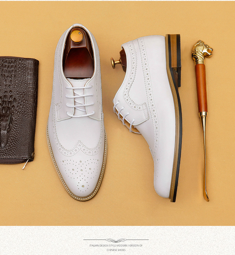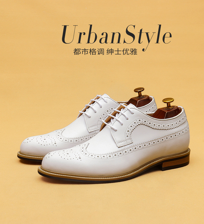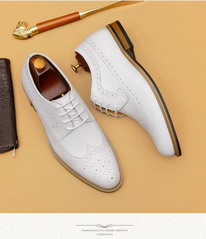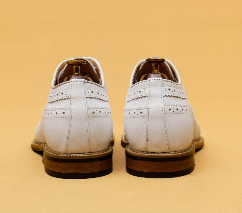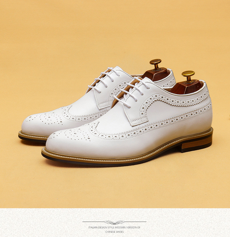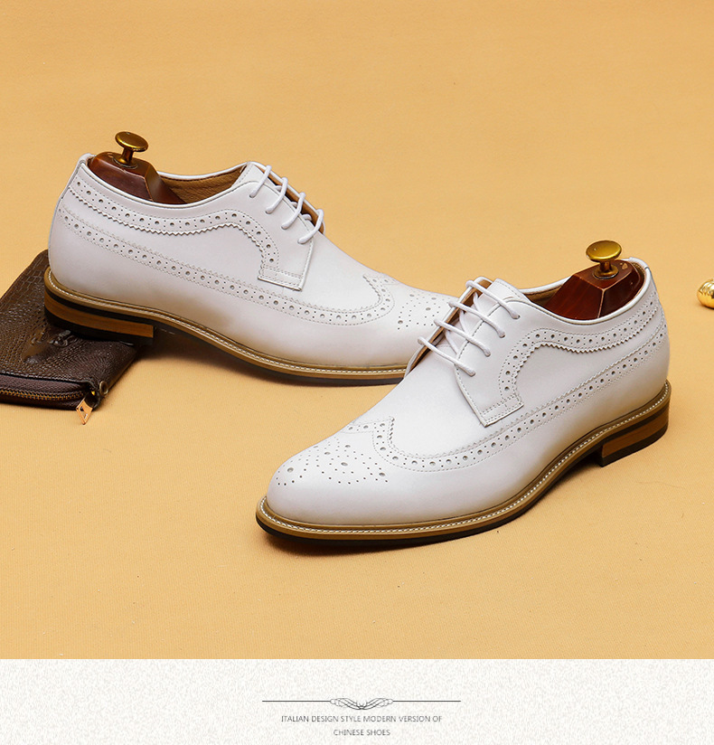 Đôi giày da thật màu trắng dành cho nam, thiết kế kiểu dáng công sở lịch sự phù hợp khi làm việc hoặc trong những sự kiện quan trọng. Bên trong giày có đế nâng đệm một cách tinh tế, giúp tăng chiều cao một cách tự nhiên mà không để lộ ra ngoài. Kiểu dáng Brogue với các đường cắt trang trí tinh xảo, tạo điểm nhấn thanh lịch. Sử dụng dễ dàng, chỉ cần xỏ vào và điều chỉnh dây hoặc khóa cho vừa chân. | Tên sản phẩm: Giày Da Nam Chất Liệu Da Bò Tăng Chiều Cao Dùng Trong Lễ Cưới Ngày Cưới - Giày Dép Nam | Mã sản phẩm: B1519 - Giá: 2.360.000đ | Mã nhà sản xuất: SHERAW-G05Hình ảnh sản phẩm