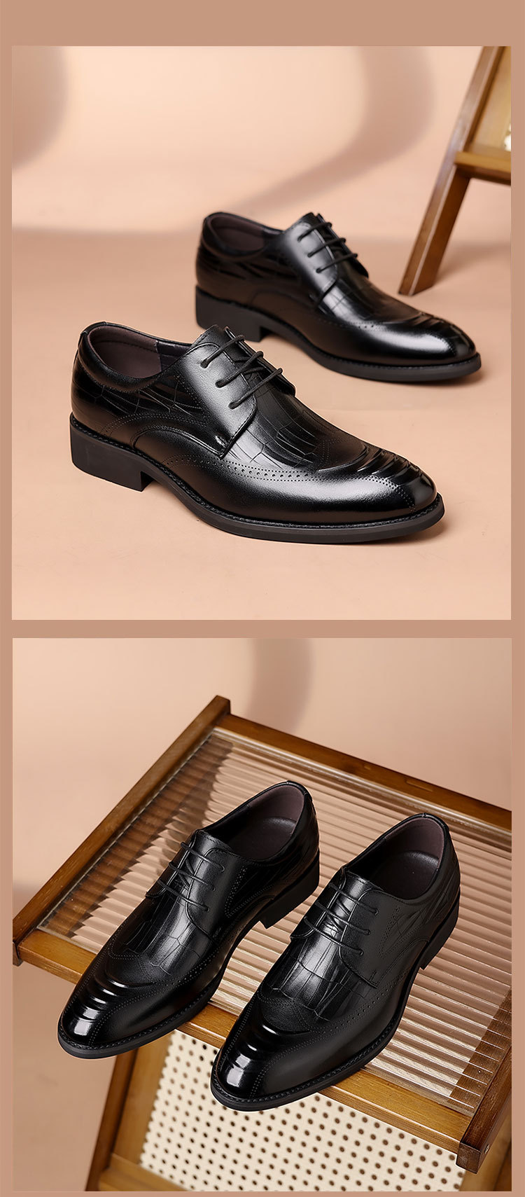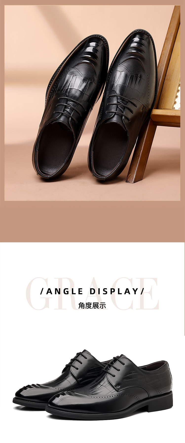 Giày da thật dành cho nam, kiểu dáng công sở lịch sự. Sản phẩm được làm từ chất liệu da bò mềm mại, bền đẹp theo thời gian. Kiểu giày có đường may trang trí tinh tế, phù hợp cho môi trường làm việc và các dịp cần trang phục chỉn chu. Phần đế được thiết kế tạo cảm giác thoải mái khi di chuyển cả ngày. Sử dụng kết hợp với tất, giữ sạch sẽ và bảo quản nơi khô ráo. | Tên sản phẩm: Giày Da Nam Chất Liệu Da Bò Tăng Chiều Cao Hàng Mùa Xuân Thu Đông - Giày Dép Nam | Mã sản phẩm: B7609 - Giá: 1.090.000đ | Mã nhà sản xuất: WEDS-G03Hình ảnh sản phẩm