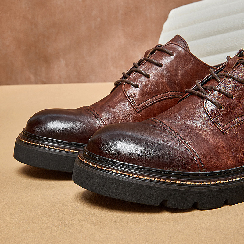 Giày da nam thiết kế với phần mũi giày được ghép ba mảnh tinh tế, mang phong cách cổ điển châu Âu. Sản phẩm làm từ chất liệu da bò thật, đế dày vừa phải tạo dáng đứng và thoải mái. Kiểu dáng kết hợp giữa nét cổ điển và hiện đại, phù hợp cho những dịp đi làm hoặc dạo phố. Bạn có thể dễ dàng phối cùng quần âu hoặc quần kaki để có vẻ ngoài chỉn chu. | Tên sản phẩm: Giày Da Nam Chất Liệu Da Bò Thoáng Khí Đế Cao Hàng Mùa Xuân Thu Đông Phục Cổ Cổ Điển - Giày Dép Nam | Mã sản phẩm: a3468 - Giá: 2.680.000đ | Mã nhà sản xuất: SHDT-G06Hình ảnh sản phẩm