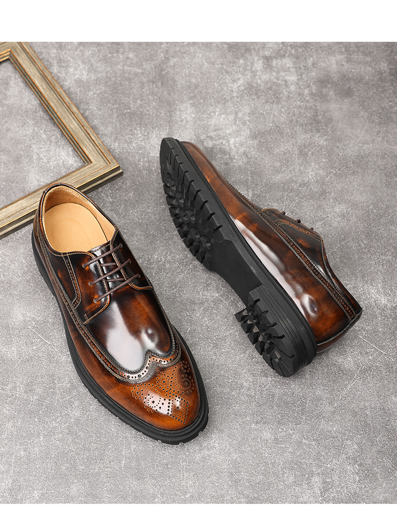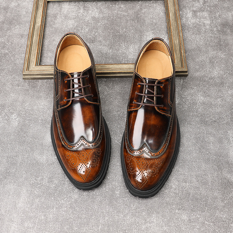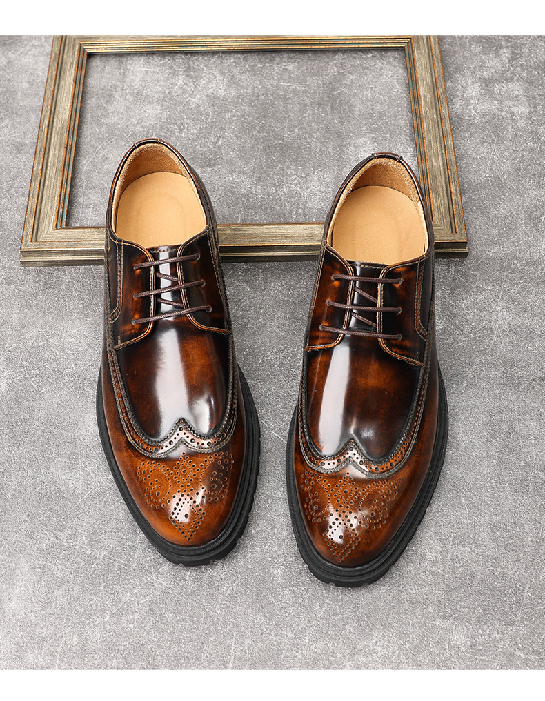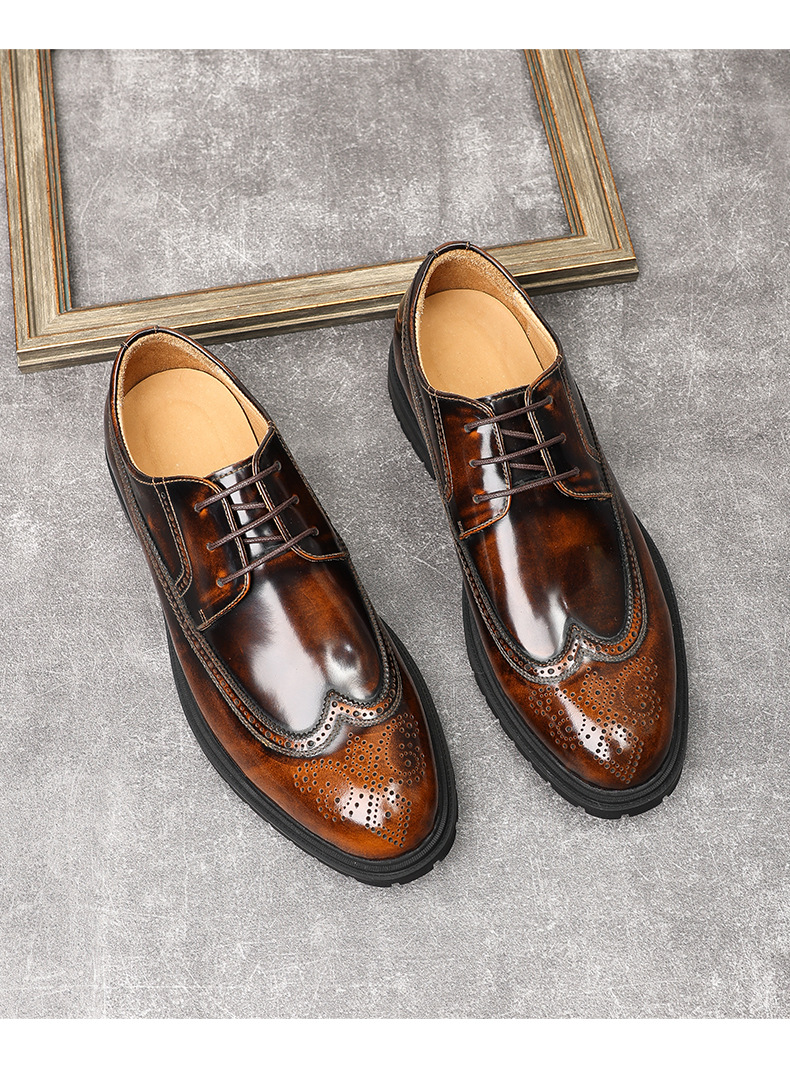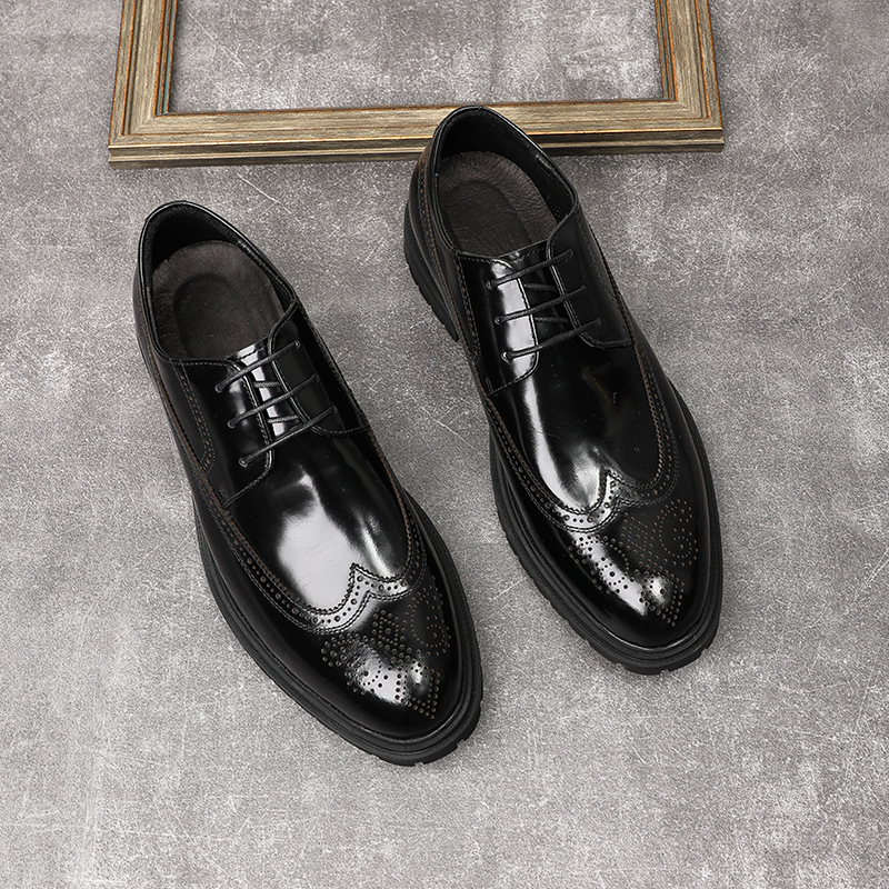 Giày da nam kiểu dáng Brogue, hoàn toàn làm từ chất liệu da bò thật cả mặt trong lẫn ngoài. Mẫu giày này có bề mặt bóng đẹp, phù hợp cho công sở hoặc các dịp quan trọng. Thiết kế đặc biệt giúp đôi chân luôn thông thoáng và dễ chịu khi mang. Bạn có thể kết hợp cùng vest, quần âu để có vẻ ngoại chỉn chu và lịch sự. | Tên sản phẩm: Giày Da Nam Chất Liệu Da Bò Thoáng Khí Hàng Mùa Xuân Thu Đông - Giày Dép Nam | Mã sản phẩm: B8542 - Giá: 3.420.000đ | Mã nhà sản xuất: SHDN-G06Hình ảnh sản phẩm