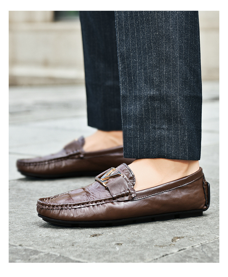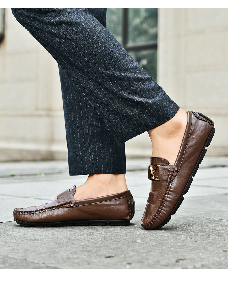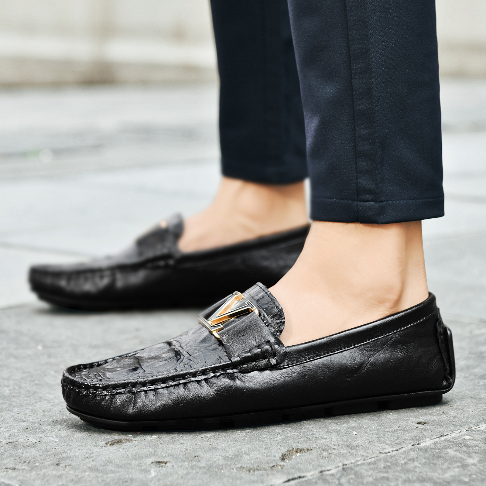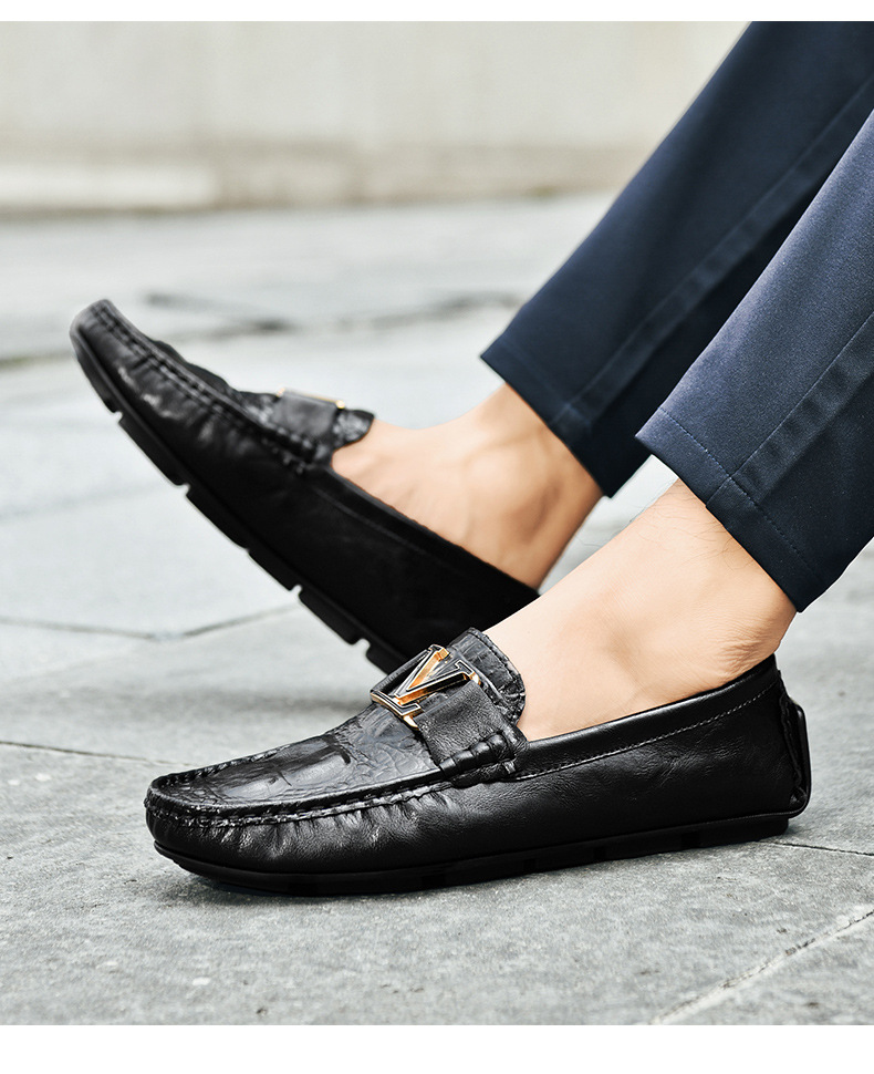 Giày nam kiểu dáng đơn giản, dễ dàng mang vào và tháo ra, rất tiện lợi khi lái xe hoặc sử dụng hằng ngày. Mặt giày được làm từ chất liệu da thật, có họa tiết da cá sấu tinh tế, tạo điểm nhấn riêng. Phong cách thiết kế pha trộn nét cổ điển và hiện đại, phù hợp cho nhiều dịp. Bạn chỉ cần xỏ chân vào là có thể sử dụng ngay, đôi giày này đồng hành cùng bạn trong mọi hoạt động thường nhật. | Tên sản phẩm: Giày Da Nam Chất Liệu Da Bò Vân Da Cá Sấu - Giày Dép Nam | Mã sản phẩm: B3531 - Giá: 890.000đ | Mã nhà sản xuất: TADRA-G03Hình ảnh sản phẩm