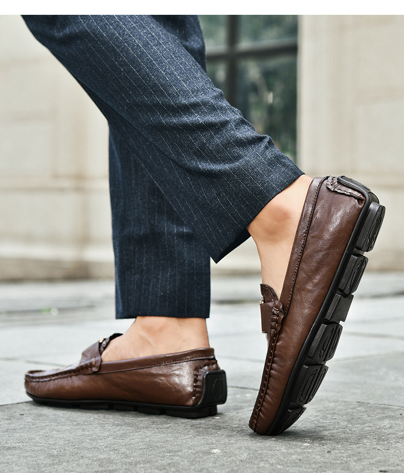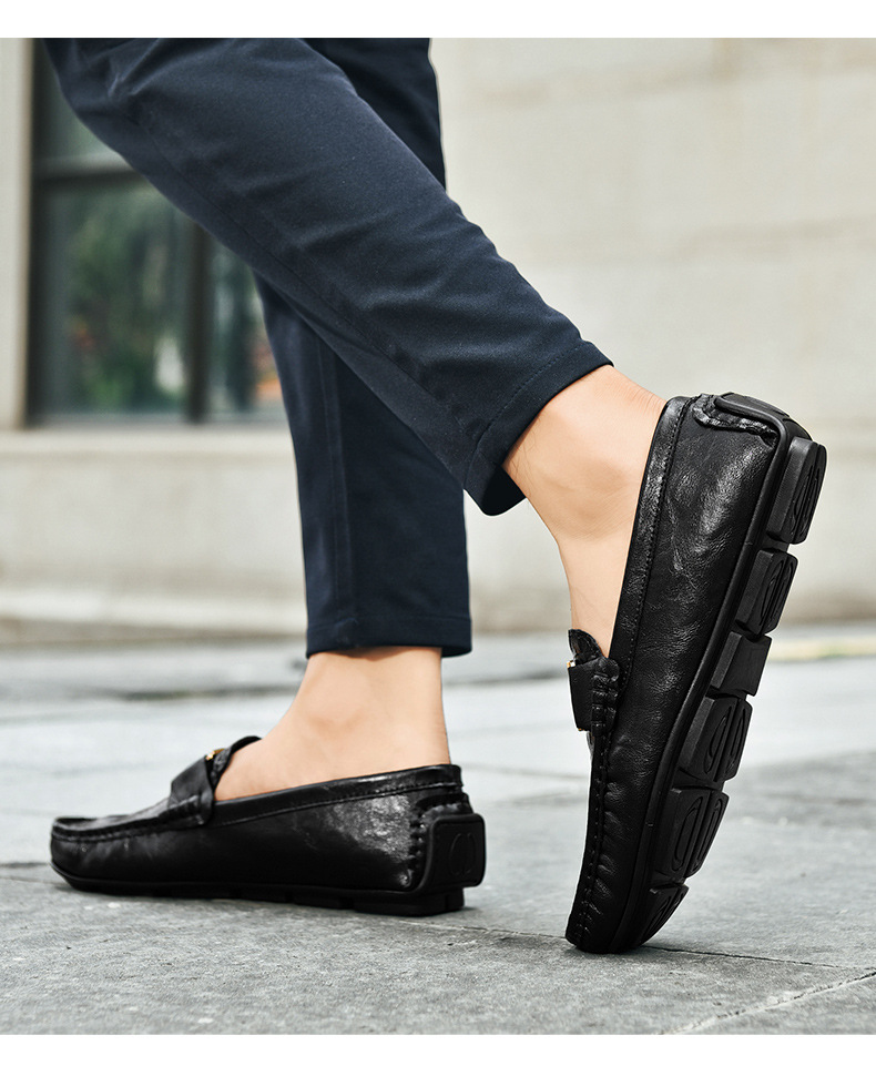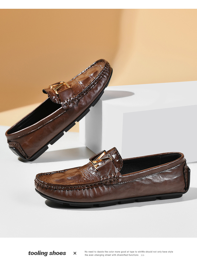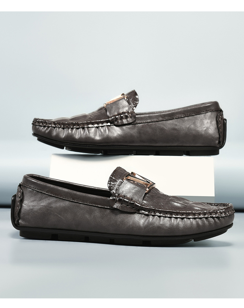 Giày nam kiểu dáng đơn giản, dễ dàng mang vào và tháo ra, rất tiện lợi khi lái xe hoặc sử dụng hằng ngày. Mặt giày được làm từ chất liệu da thật, có họa tiết da cá sấu tinh tế, tạo điểm nhấn riêng. Phong cách thiết kế pha trộn nét cổ điển và hiện đại, phù hợp cho nhiều dịp. Bạn chỉ cần xỏ chân vào là có thể sử dụng ngay, đôi giày này đồng hành cùng bạn trong mọi hoạt động thường nhật. | Tên sản phẩm: Giày Da Nam Chất Liệu Da Bò Vân Da Cá Sấu - Giày Dép Nam | Mã sản phẩm: B3531 - Giá: 890.000đ | Mã nhà sản xuất: TADRA-G03Hình ảnh sản phẩm