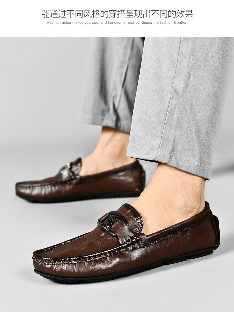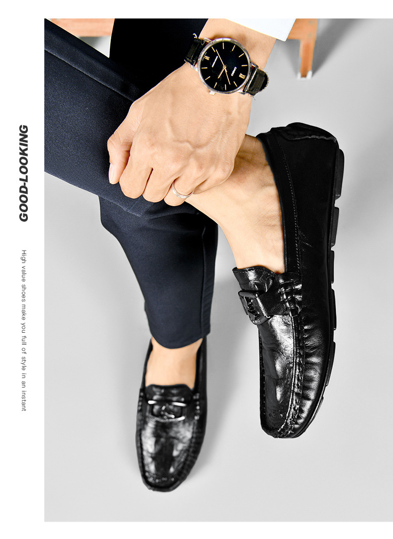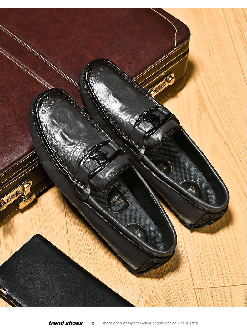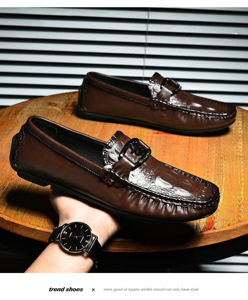Giày nam thiết kế kiểu châu Âu hiện đại, phù hợp cho nhiều dịp. Sản phẩm được làm từ chất liệu da bò mềm mại với họa tiết da cá sấu tinh tế. Đế giày có các hạt massage giúp mang lại cảm giác dễ chịu khi di chuyển. Kiểu dáng không cần buộc dây, rất thuận tiện để mang vào hay tháo ra. Bạn có thể dùng đi làm, đi chơi hoặc lái xe đều thoải mái. | Tên sản phẩm: Giày Da Nam Chất Liệu Da Bò Vân Da Cá Sấu - Giày Dép Nam | Mã sản phẩm: B3534 - Giá: 900.000đ | Mã nhà sản xuất: TADRA-G03Hình ảnh sản phẩm