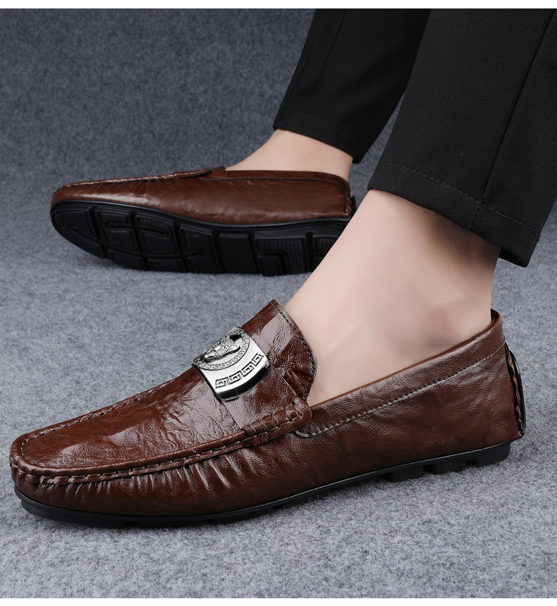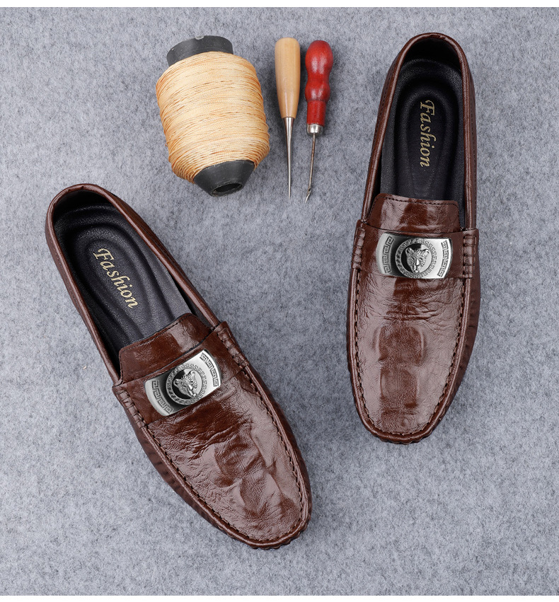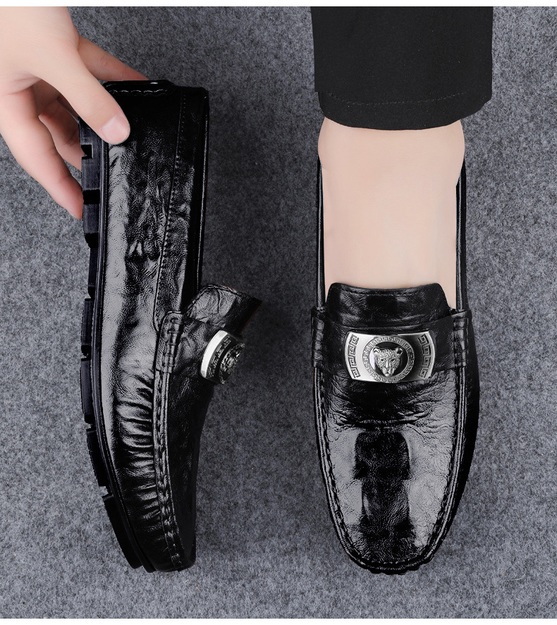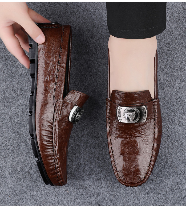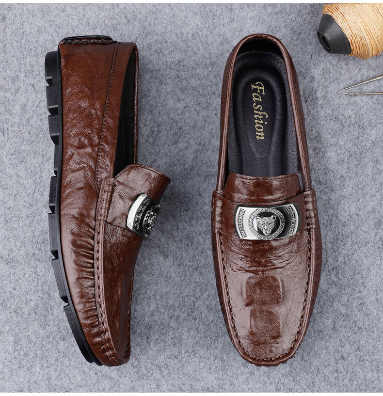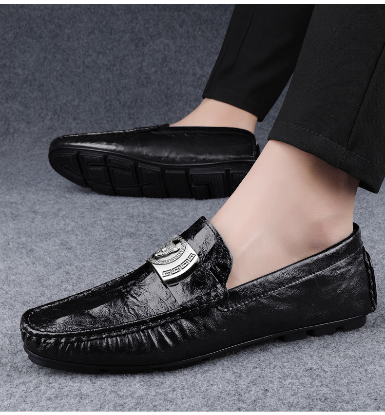 Giày nam thiết kế kiểu dáng đơn giản, dễ dàng mang vào và tháo ra nhờ hệ thống khóa hạt tiện lợi. Sản phẩm được làm từ chất liệu da bò mềm mại với họa tiết vân da cá sấu tinh tế. Mẫu giày này phù hợp cho nhiều hoạt động thường ngày như lái xe, dạo phố hay gặp gỡ bạn bè. Bạn có thể sử dụng trực tiếp mà không cần mất thời gian cột dây, mang lại sự thoải mái tối đa cho đôi chân. | Tên sản phẩm: Giày Da Nam Chất Liệu Da Bò Vân Da Cá Sấu - Giày Dép Nam | Mã sản phẩm: B3644 - Giá: 950.000đ | Mã nhà sản xuất: TADRA-G03Hình ảnh sản phẩm