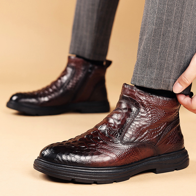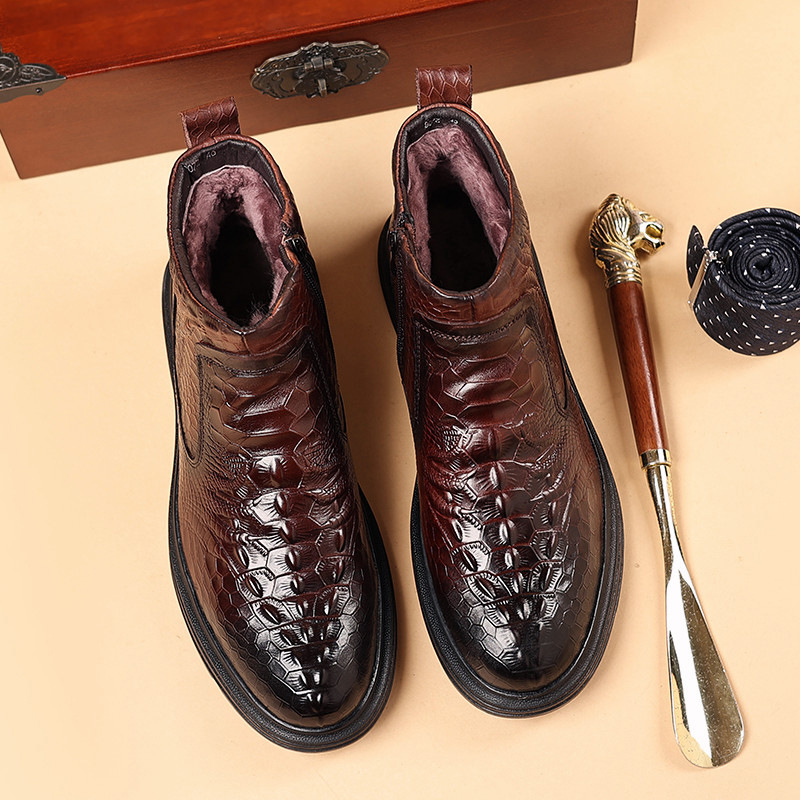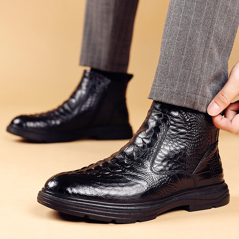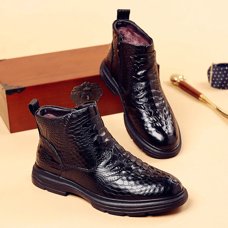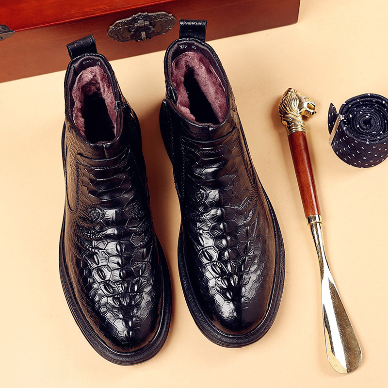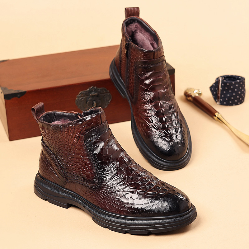 Đôi giày được làm từ lớp da thật bên ngoài và có lớp lót bên trong là lông cừu ấm áp, mang lại cảm giác êm dịu cho đôi chân. Kiểu dáng cổ điển phù hợp cho cả công sở và những lúc thư giãn. Với phần cổ giày cao vừa phải và được bổ sung thêm lớp bông giữ nhiệt, đôi giày là lựa chọn tốt cho mùa lạnh. Bạn chỉ cần xỏ chân vào và điều chỉnh dây giày hoặc khóa cho vừa vặn là có thể sử dụng ngay. | Tên sản phẩm: Giày Da Nam Chất Liệu Vải Bông Cao 14cm Dày Ấm Hàng Mùa Xuân Thu Đông - Giày Dép Nam | Mã sản phẩm: A4947 - Giá: 1.140.000đ | Mã nhà sản xuất: WED-C-G04Hình ảnh sản phẩm