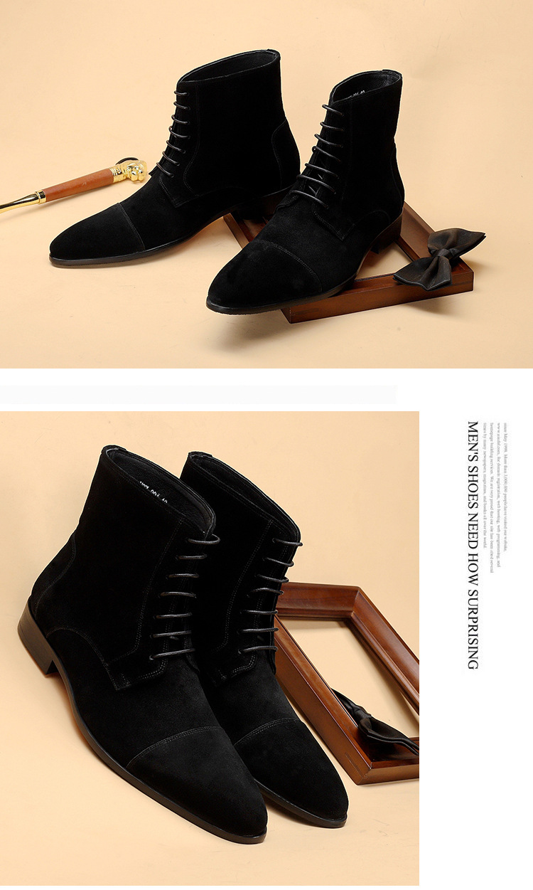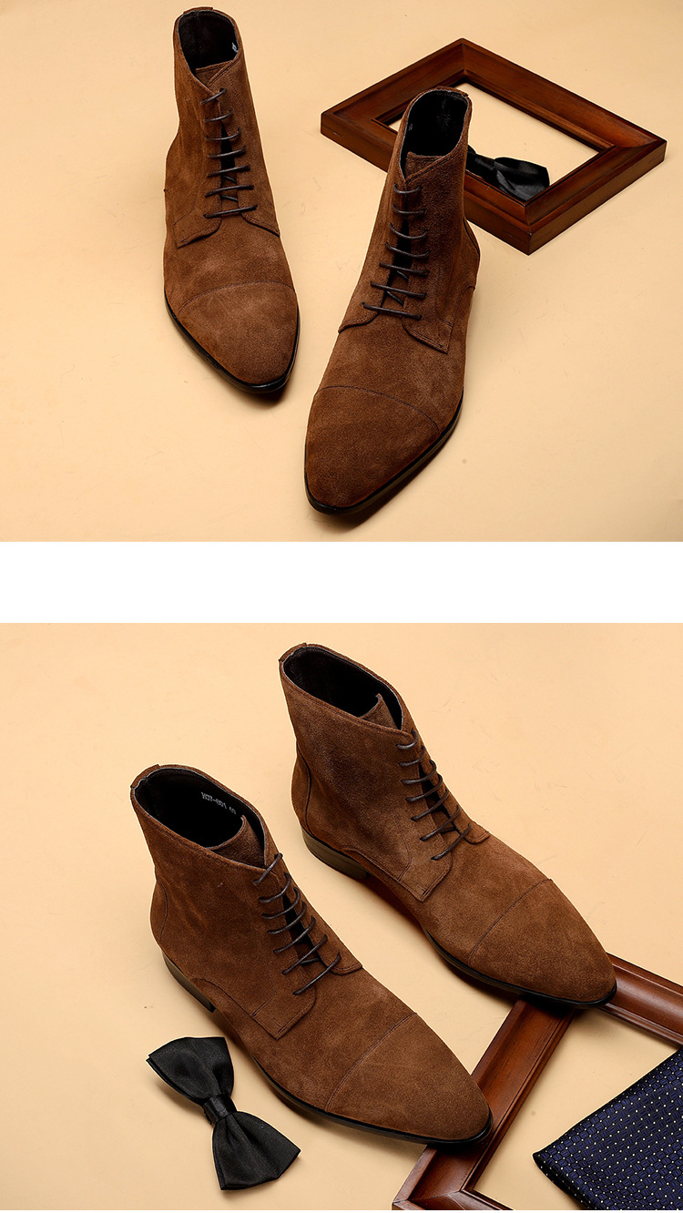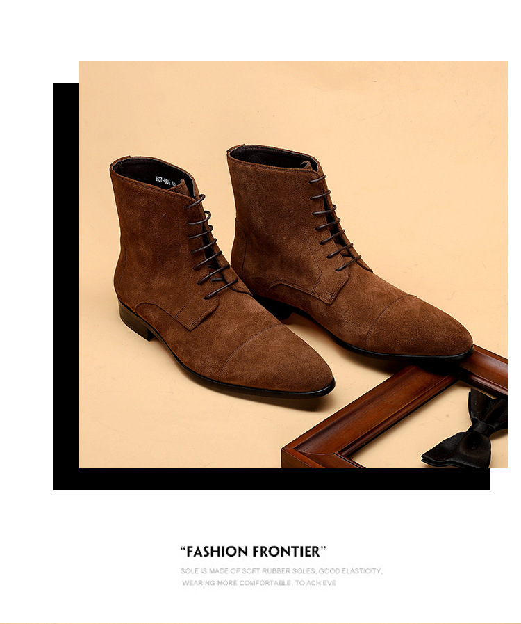 Giày bốt cổ cao dành cho nam, thiết kế mũi nhọn mang phong cách cổ điển. Sản phẩm được làm từ chất liệu da lộn mềm mại, tạo cảm giác dễ chịu khi mang. Kiểu dáng phù hợp để phối cùng nhiều loại trang phục trong tiết trời thu đông. Sử dụng hàng ngày, lau sạch bụi bám bằng khăn mềm và để nơi khô ráo. Đây là lựa chọn thiết thực cho nam giới. | Tên sản phẩm: Giày Da Nam Mũi Nhọn Hàng Mùa Xuân Thu Đông - Giày Dép Nam | Mã sản phẩm: T6245 - Giá: 2.860.000đ | Mã nhà sản xuất: YADAO-G06Hình ảnh sản phẩm