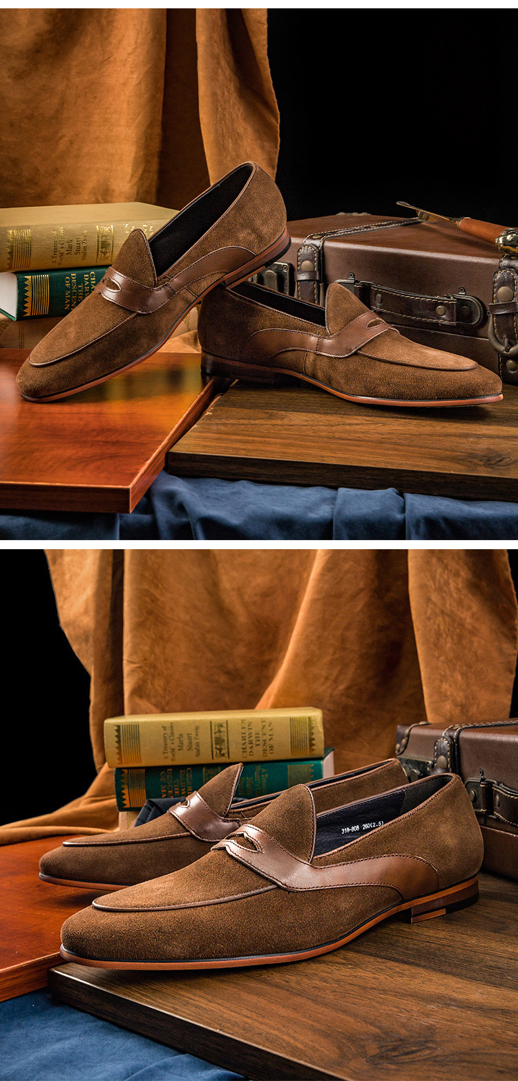 Giày lười dành cho nam với thiết kế kiểu cách Hàn Quốc. Sản phẩm kết hợp chất liệu da mịn và da lộn tạo nên vẻ ngoài lịch lãm, phù hợp cho những người trẻ trung, năng động. Đế giày được làm êm ái, mang lại cảm giác dễ chịu khi di chuyển cả ngày. Bạn có thể dùng giày này để phối cùng quần âu, quần kaki hoặc quần jean trong nhiều dịp khác nhau. Chỉ cần xỏ chân vào và sẵn sàng bước đi. | Tên sản phẩm: Giày Da Nam Phong Cách Hàn Quốc - Giày Dép Nam | Mã sản phẩm: T6250 - Giá: 2.390.000đ | Mã nhà sản xuất: YADAO-G05Hình ảnh sản phẩm