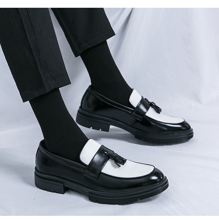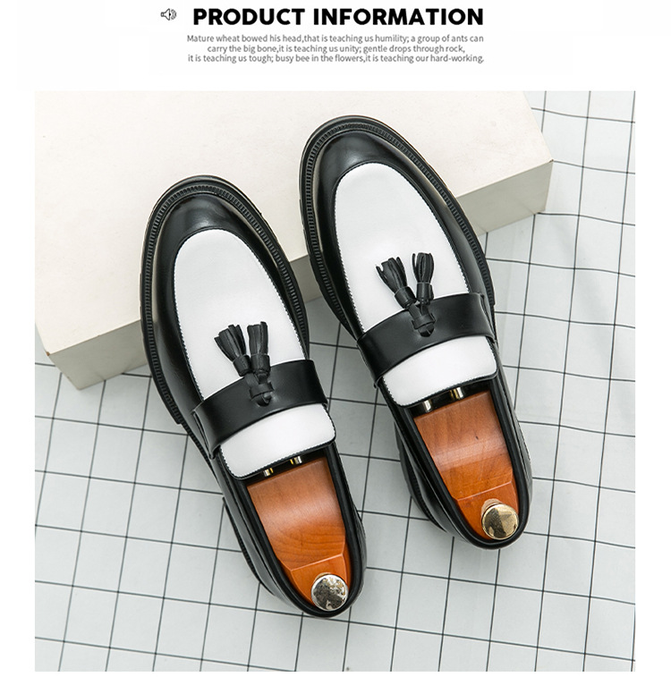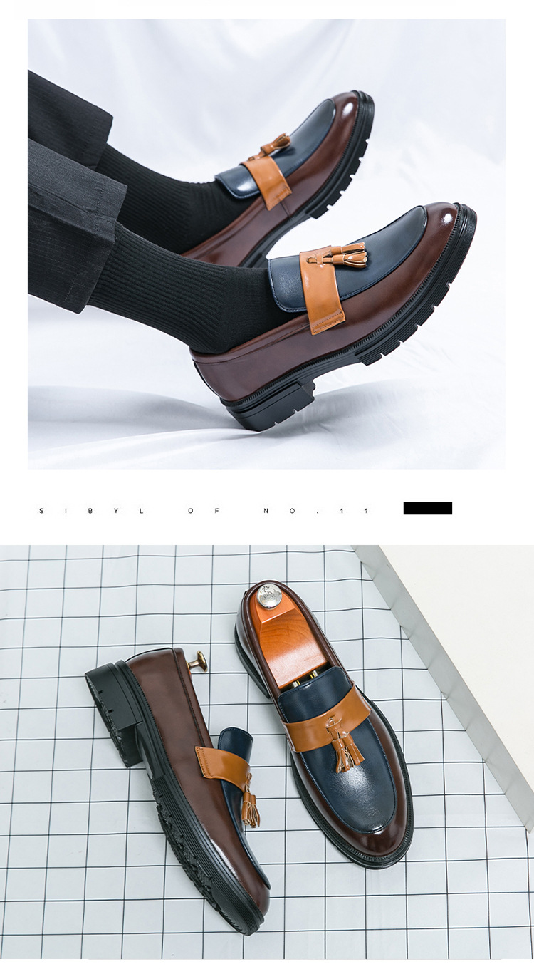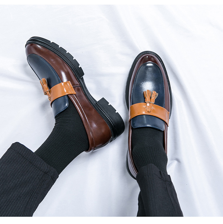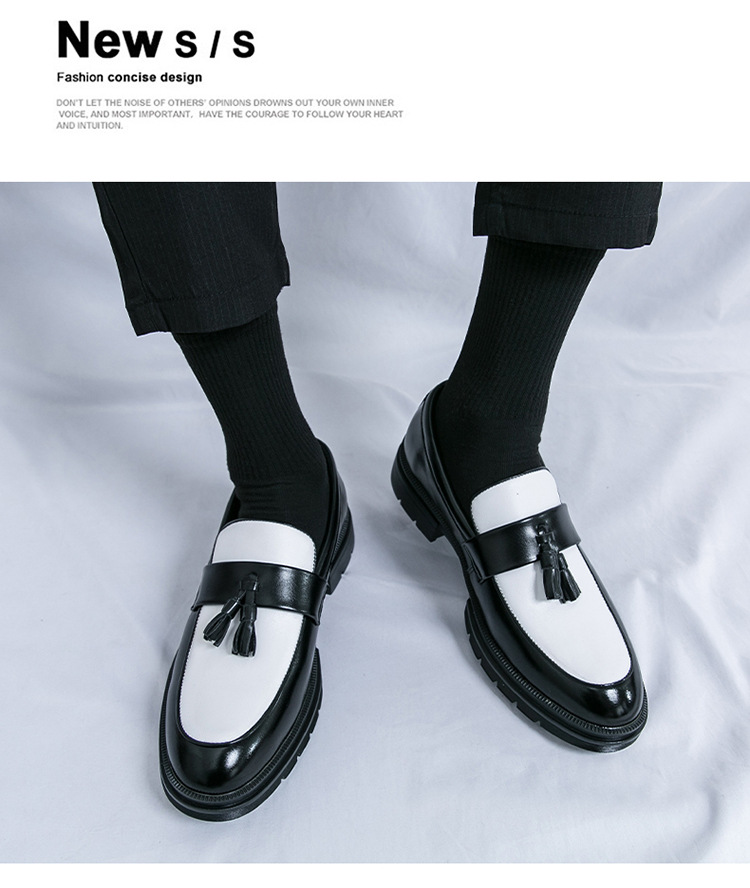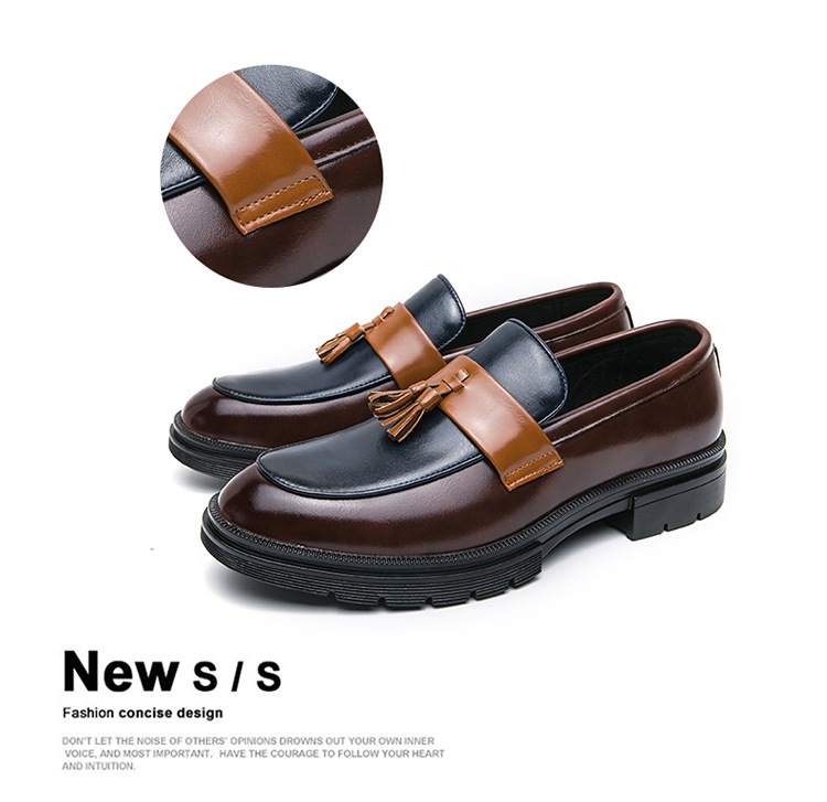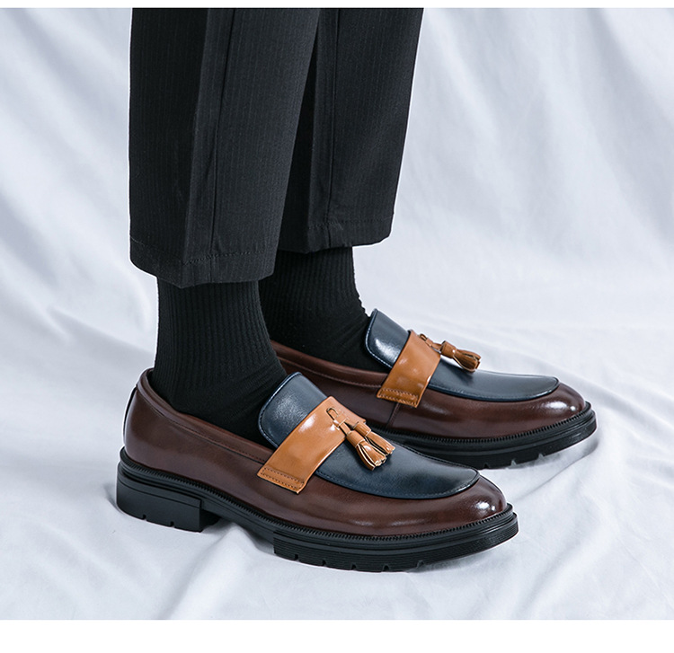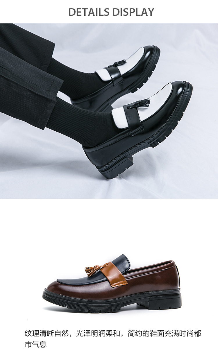 Giày tây nam thiết kế kiểu dáng kết hợp nhiều màu, mang phong cách Anh điển nhã. Sản phẩm dành cho tiết trời mùa xuân và thu, rất tiện lợi với kiểu đi liền không cần buộc dây, có thêm chi tiết râu trang trí ở mặt giày. Đế được thiết kế tạo cảm giác cao hơn một cách tự nhiên, bên trong có lót thoáng khí giúp chân luôn khô ráo. Bạn chỉ cần xỏ chân vào là có thể mang ngay, phù hợp cho cả công sở và những dịp giao lưu thông thường. | Tên sản phẩm: Giày Da Nam Tăng Chiều Cao Thoáng Khí Hàng Mùa Xuân Thu Đông - Giày Dép Nam | Mã sản phẩm: B3641 - Giá: 740.000đ | Mã nhà sản xuất: TADRA-G02Hình ảnh sản phẩm