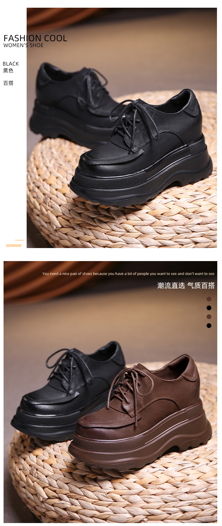 Đôi giày da này mang phong cách Anh cổ điển, kiểu dáng cổ điển và thanh lịch. Đế giày dày tạo cảm giác thoải mái khi mang, giúp tăng chiều cao một cách tinh tế. Thiết kế dễ kết hợp với nhiều loại trang phục khác nhau như quần âu, chân váy hay quần jeans. Chỉ cần lau sạch bề mặt bằng khăn mềm và bảo quản nơi khô ráo sau khi sử dụng. | Tên sản phẩm: Giày Da Nữ Cao 10cm Đế Cao Phục Cổ Cổ Điển - Giày Dép Nữ | Mã sản phẩm: B4082 - Giá: 1.830.000đ | Mã nhà sản xuất: QIDNG-G05Hình ảnh sản phẩm