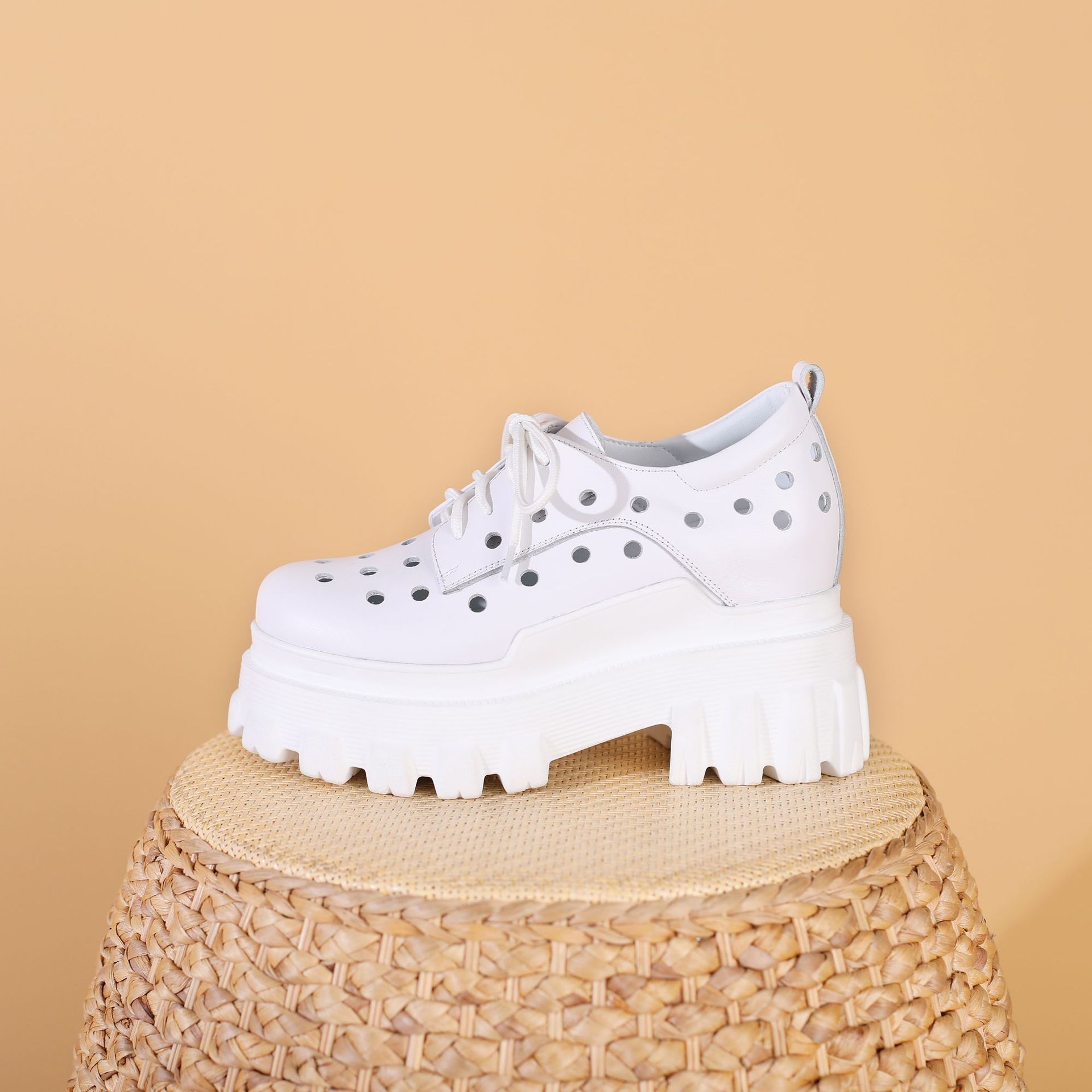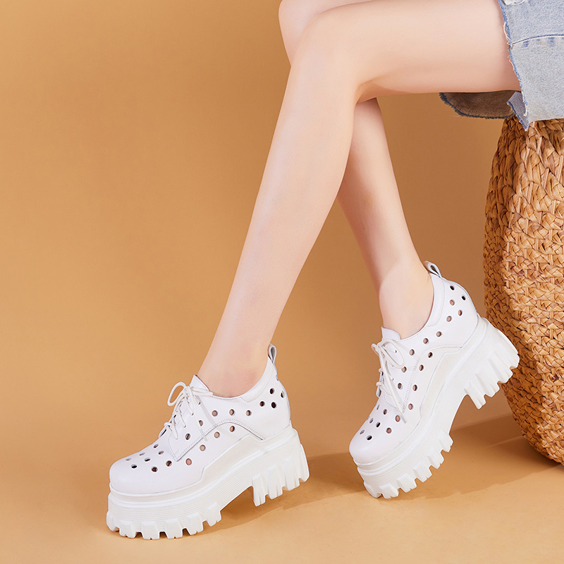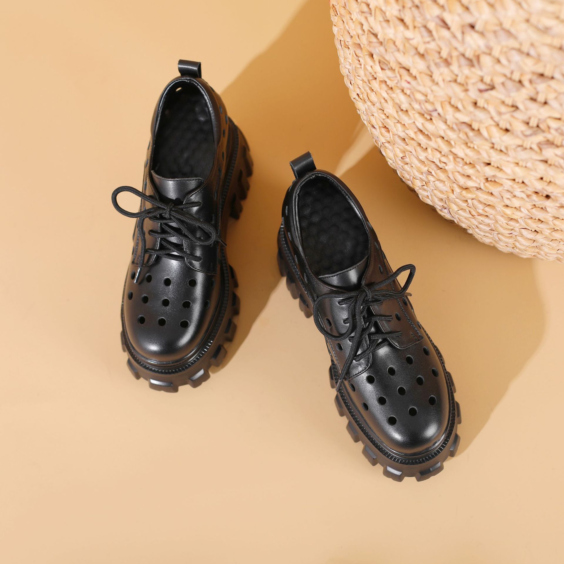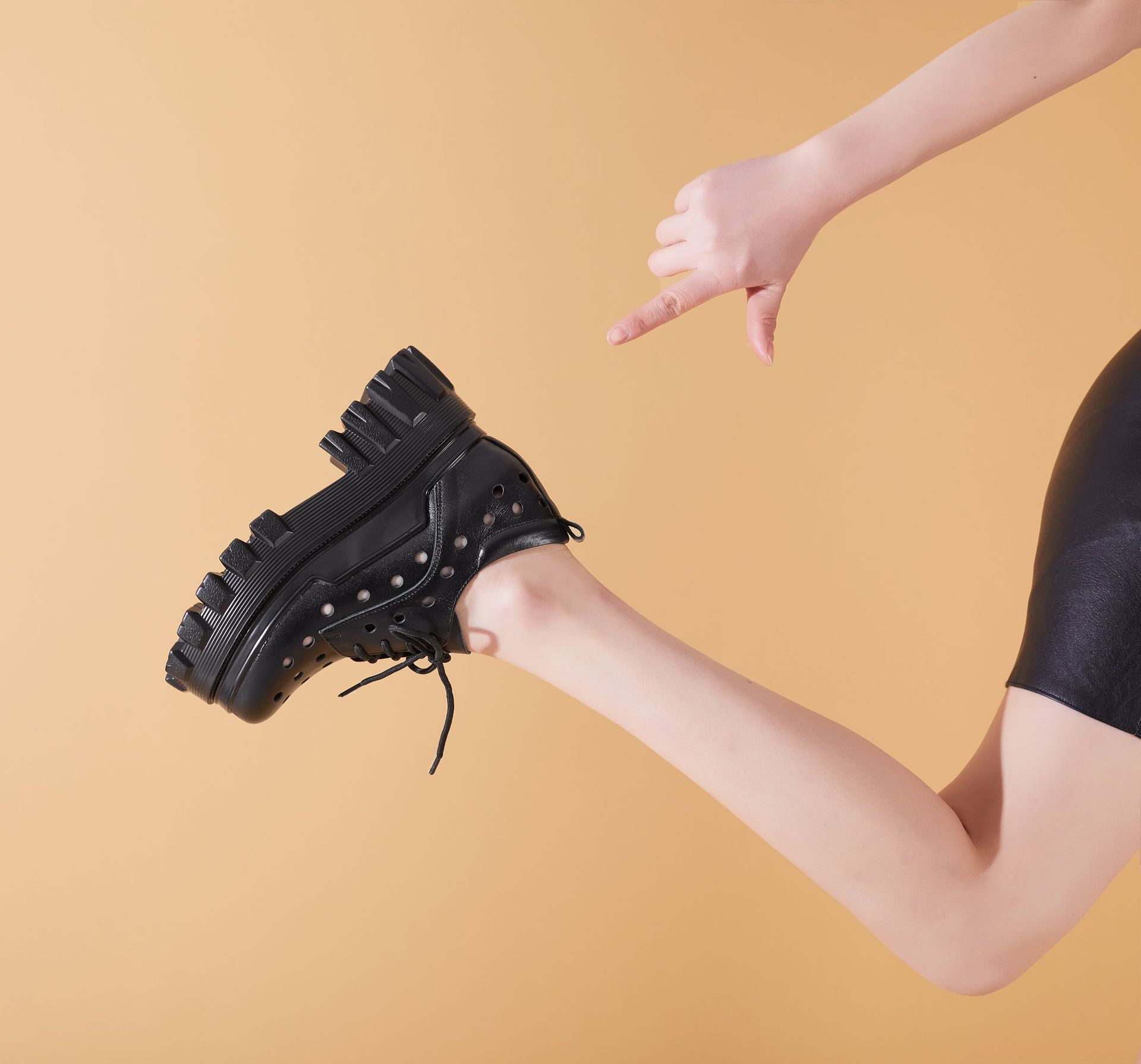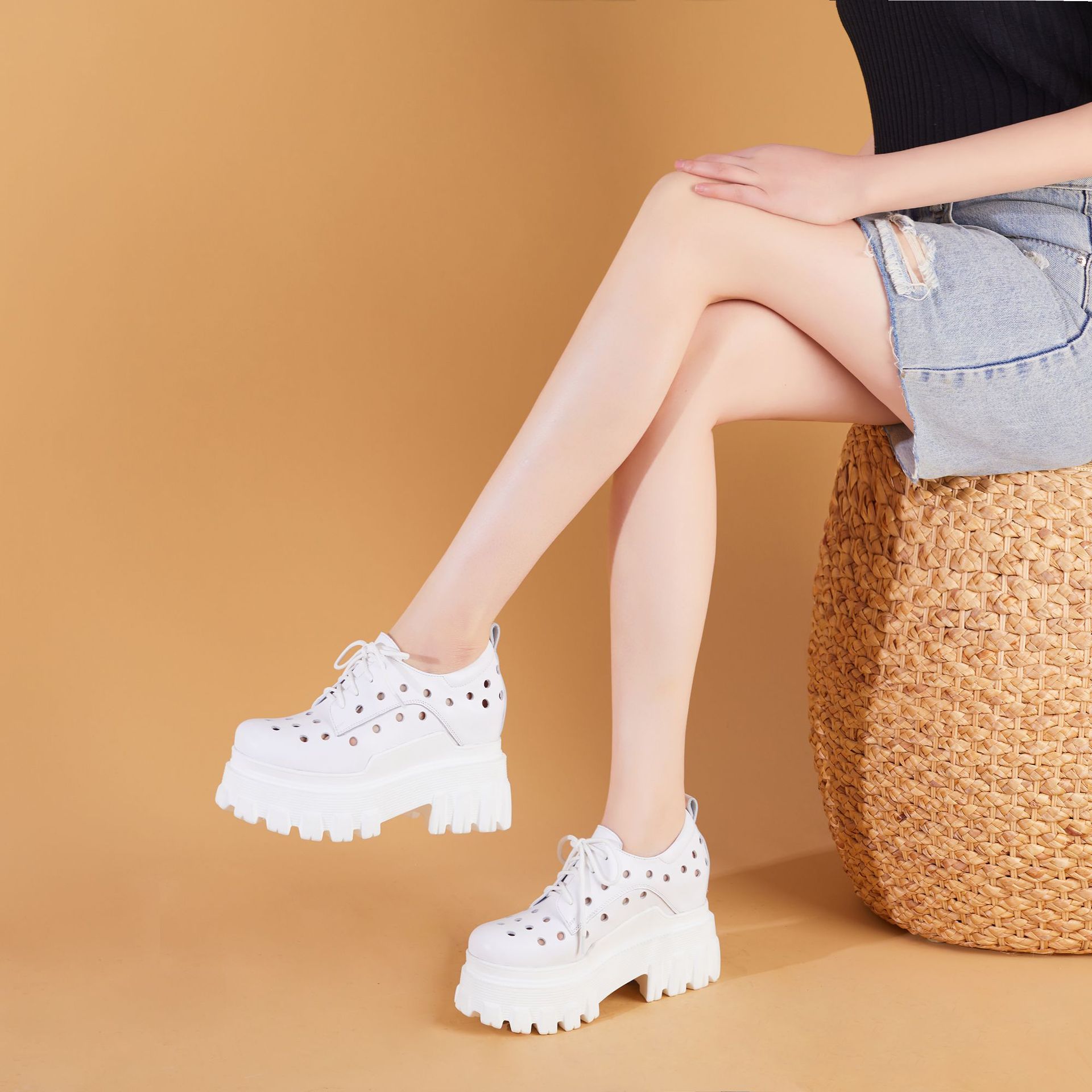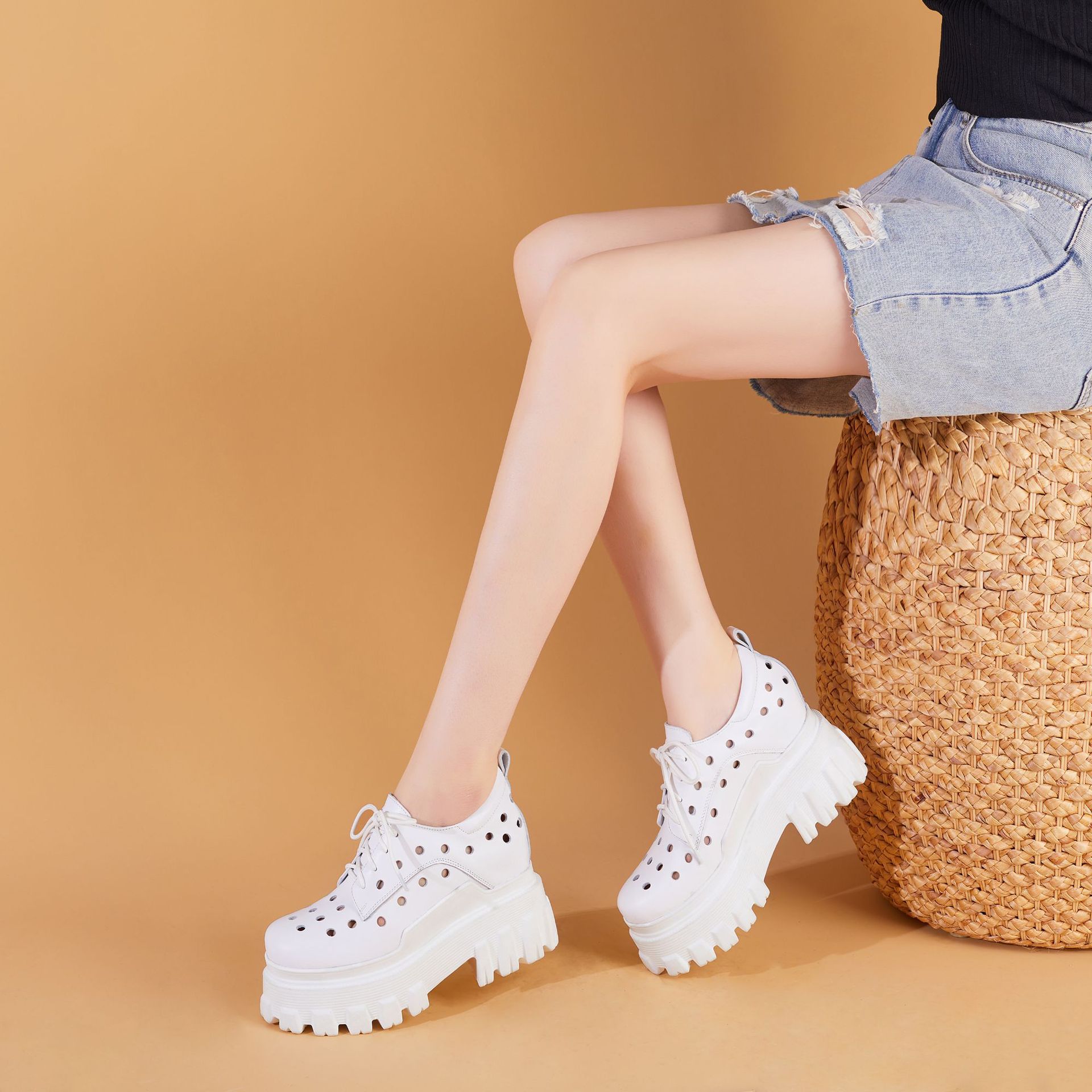 Đôi giày da này mang phong cách cổ điển châu Âu, phù hợp cho mùa xuân. Thiết kế có phần đế dày vừa phải giúp tăng chiều cao một cách nhẹ nhàng. Trên mặt giày có các chi tiết khoét họa tiết, tạo sự thông thoáng khi mang. Đây là mẫu giày bắt mắt, dễ dàng phối cùng nhiều loại trang phục như quần âu, chân váy hay quần jeans để tạo điểm nhấn. Bạn có thể sử dụng hằng ngày cho những dịp đi làm, đi chơi hoặc gặp mặt. | Tên sản phẩm: Giày Da Nữ Cao 10cm Tăng Chiều Cao Thoáng Khí Đế Cao Hàng Mùa Xuân Thu Đông - Giày Dép Nữ | Mã sản phẩm: B4391 - Giá: 1.640.000đ | Mã nhà sản xuất: QIDNG-G05Hình ảnh sản phẩm