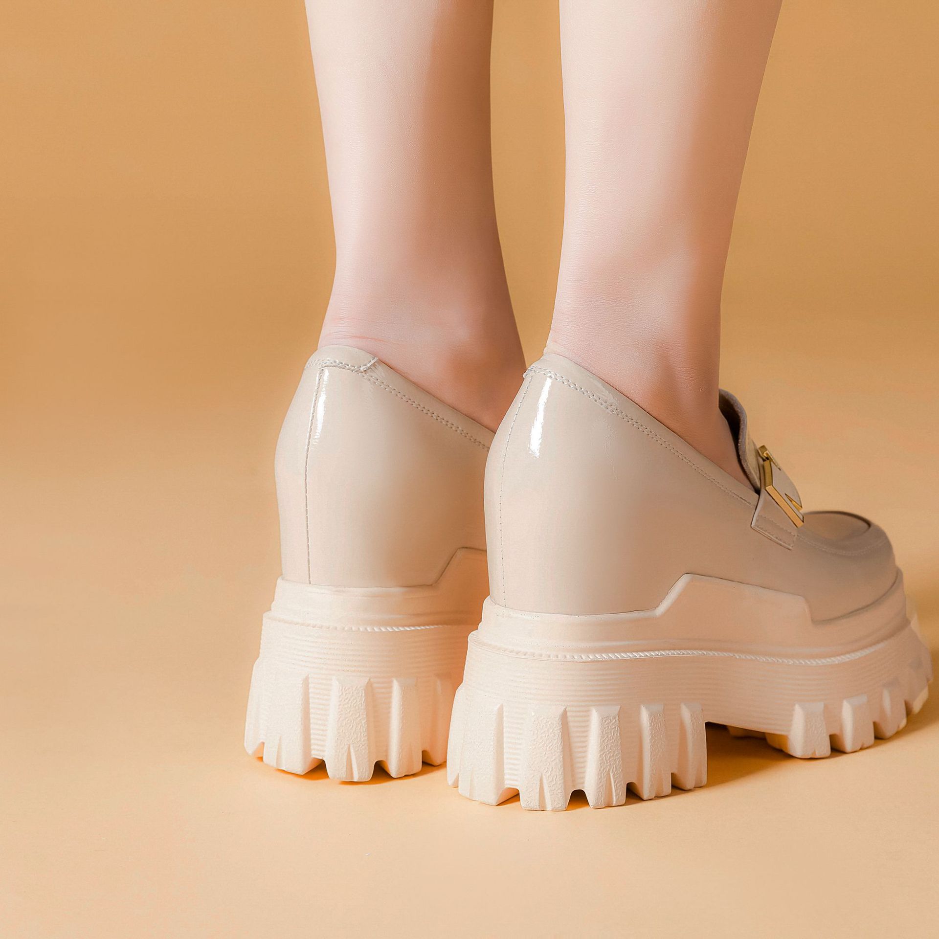 Giày da dành cho nữ, kiểu dáng thanh lịch lấy cảm hứng từ phong cách châu Âu. Sản phẩm có phần đế dày vừa phải, kết hợp thiết kế tăng chiều cao bên trong một cách khéo léo, giúp tôn dáng hiệu quả. Mẫu giày này rất phù hợp để phối cùng trang phục như quần âu, chân váy hay quần jeans trong những dịp thường ngày. Bạn có thể mang chúng một cách dễ dàng để tạo điểm nhấn nổi bật cho phong cách của mình. | Tên sản phẩm: Giày Da Nữ Cao 12cm Tăng Chiều Cao Đế Cao Hàng Mùa Xuân Thu Đông - Giày Dép Nữ | Mã sản phẩm: C1319 - Giá: 2.760.000đ | Mã nhà sản xuất: QIDNG-G06Hình ảnh sản phẩm