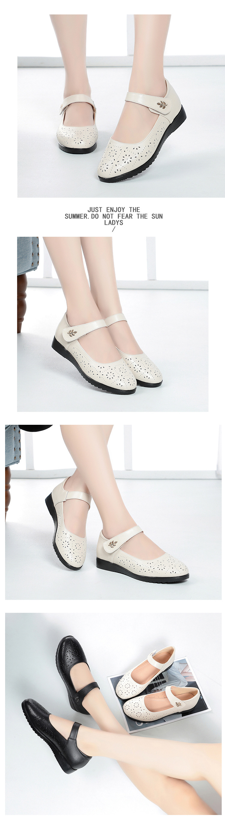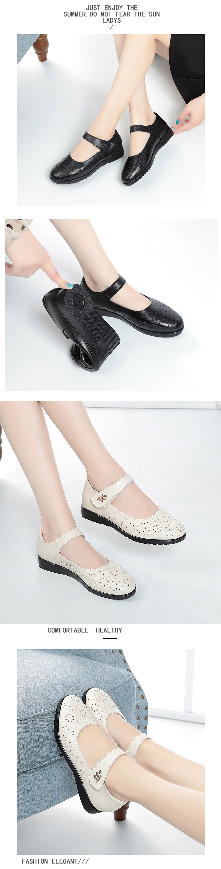 Giày dành cho các bà, các mẹ với thiết kế dây cài ngang mềm mại, dễ dàng điều chỉnh. Chất liệu da thật mang lại cảm giác êm ái và bền lâu. Đế giày được làm mềm dẻo, giúp bước đi nhẹ nhàng, thoải mái cả ngày. Phần thân giày có các lỗ thông hơi nhỏ tạo sự thông thoáng, không gây bí hơi. Chỉ cần xỏ chân vào, kéo dây cài vừa vặn là có thể sử dụng ngay. | Tên sản phẩm: Giày Da Nữ Chất Liệu Da Bò Đế Mềm Thoáng Khí Quai Hậu Trung Niên - Giày Dép Nữ | Mã sản phẩm: L3169 - Giá: 1.050.000đ | Mã nhà sản xuất: YADO-G03Hình ảnh sản phẩm