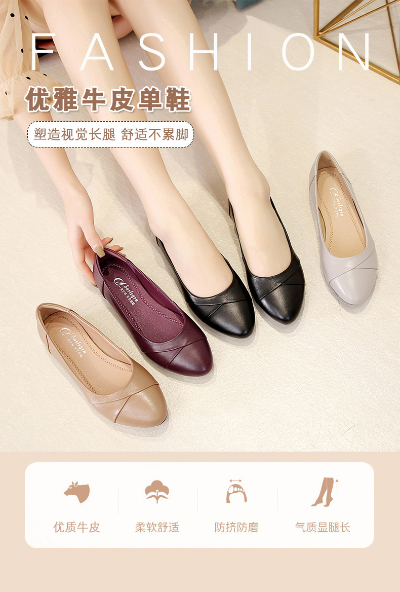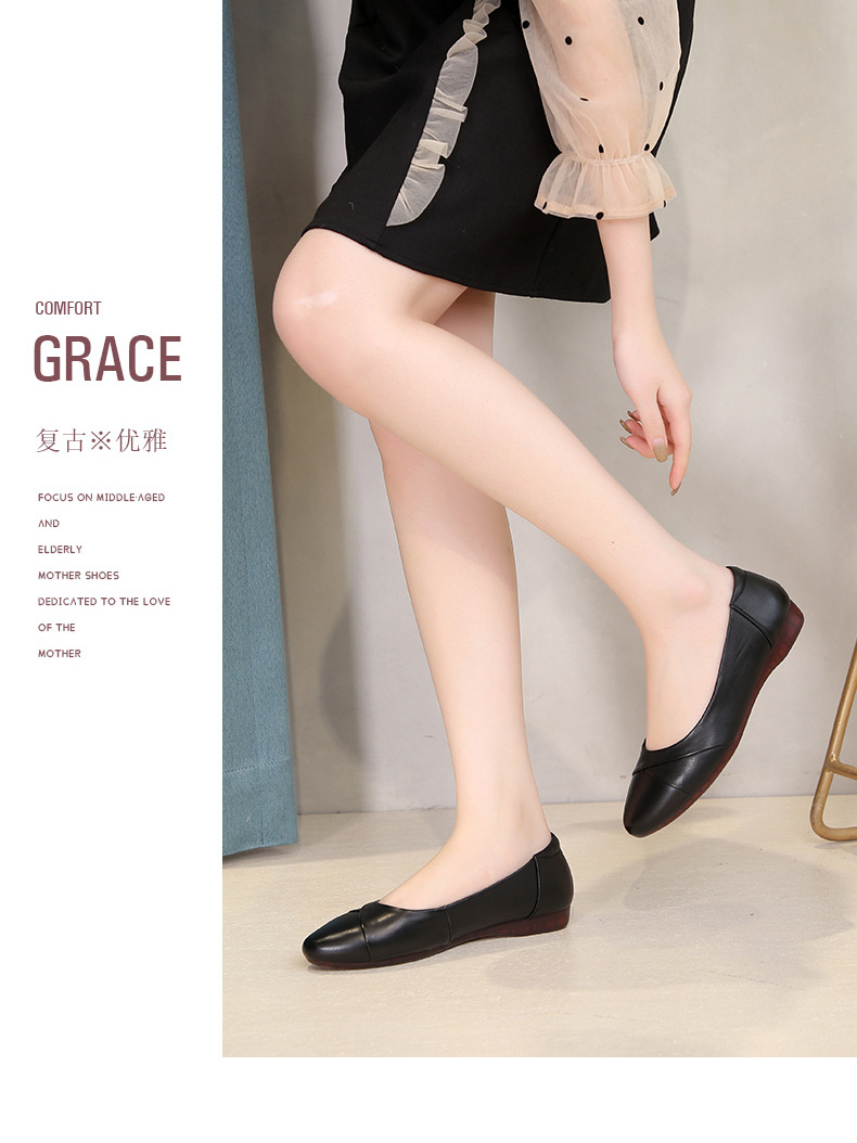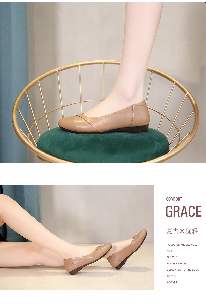 Đôi giày này có phần đế làm từ chất liệu đặc biệt, mang lại cảm giác mềm mại và dẻo d khi di chuyển. Bề mặt giày được làm từ da thật, ôm chân nhẹ nhàng tạo sự thoải mái tối đa. Kiểu dáng cổ thấp gọn gàng và đế bằng phẳng, phù hợp để sử dụng quanh năm. Bạn có thể dễ dàng mang vào mỗi ngày, kết hợp với nhiều loại trang phục khác nhau cho các sinh hoạt thường nhật. | Tên sản phẩm: Giày Da Nữ Chất Liệu Da Bò Đế Mềm Trung Niên - Giày Dép Nữ | Mã sản phẩm: L3044 - Giá: 830.000đ | Mã nhà sản xuất: YADO-G03Hình ảnh sản phẩm
