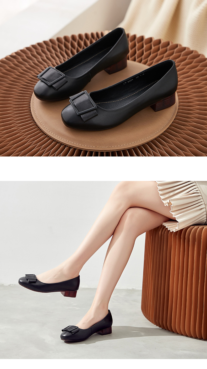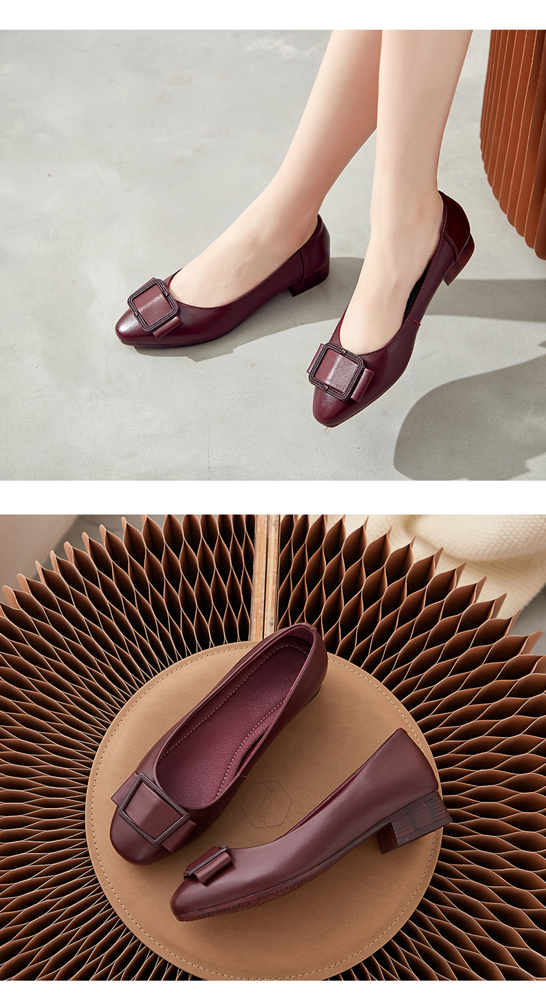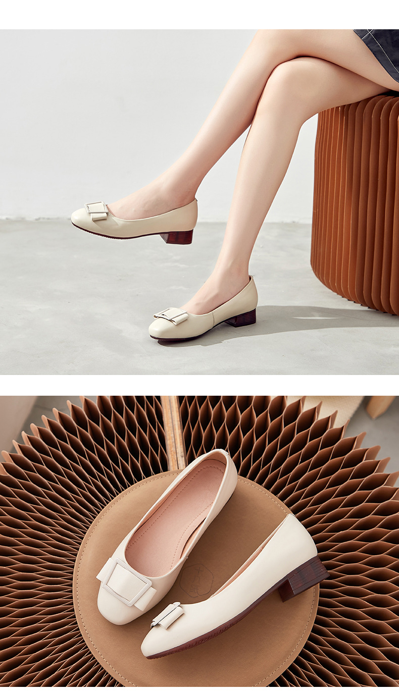 Đôi giày này được làm từ chất liệu da mềm mại, mang đến cảm giác dễ chịu cho đôi chân. Đế giày bằng phẳng và phần đế được tăng cường độ vững chắc nhẹ, giúp bước đi thoải mái cả ngày. Kiểu dáng cổ thấp gọn gàng, thiết kế đơn giản dễ phối đồ. Sản phẩm phù hợp cho việc sử dụng hằng ngày, đi làm hay dạo phố. Chỉ cần xỏ vào và bạn đã sẵn sàng cho một ngày mới. | Tên sản phẩm: Giày Da Nữ Chất Liệu Da Bò Gót Vuông Trung Niên Phong Cách Hàn Quốc - Giày Dép Nữ | Mã sản phẩm: L3071 - Giá: 1.020.000đ | Mã nhà sản xuất: YADO-G03Hình ảnh sản phẩm