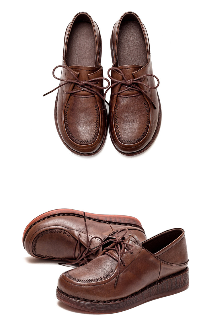 Đôi giày nữ dáng tròn dễ thương, thiết kế cổ điển với dây buộc phía trước tạo điểm nhấn. Đế xuồng thấp giúp nâng đỡ bàn chân thoải mái cho các bước đi dài. Sản phẩm có hai cách mặc đa dạng: đi kèm tất để năng động hoặc không tất để thanh lịch. Chất liệu nhẹ, phù hợp dùng hàng ngày hoặc dạo phố. Dễ dàng phối cùng nhiều loại trang phục khác nhau. | Tên sản phẩm: Giày Da Nữ Mũi Tròn Đế Xuồng Hàng Mùa Hè - Giày Dép Nữ | Mã sản phẩm: B2018 - Giá: 1.280.000đ | Mã nhà sản xuất: SHDU-G04Hình ảnh sản phẩm