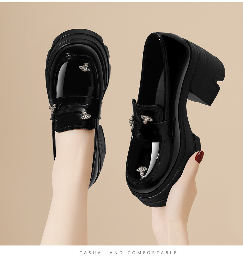 Đôi giày này có phần đế dày tạo dáng thoải mái, giúp tăng thêm chiều cao một cách nhẹ nhàng. Kiểu dáng theo phong cách Anh cổ điển, kết hợp với thiết kế giày lười dễ dàng xỏ chân. Mẫu mã phù hợp cho nhiều dịp sử dụng hàng ngày. Bạn chỉ cần mang vào và bước đi, rất tiện lợi và nhanh chóng. Đây là lựa chọn nhẹ nhàng và thiết thực cho các bạn nữ. | Tên sản phẩm: Giày Da Nữ Tăng Chiều Cao Đế Cao - Giày Dép Nữ | Mã sản phẩm: B5249 - Giá: 1.090.000đ | Mã nhà sản xuất: PUDT-G03Hình ảnh sản phẩm