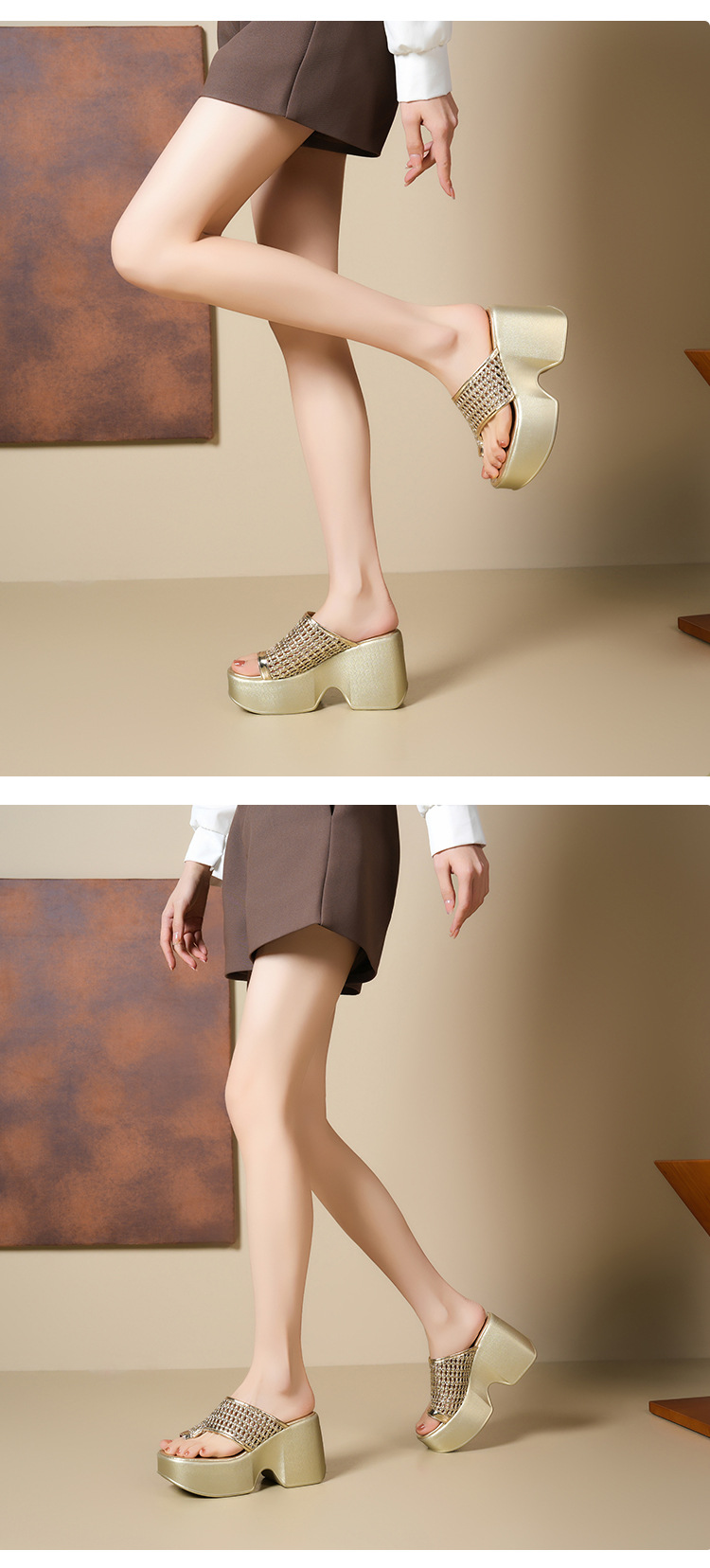 Đôi dép qu ngang dệt mát mẻ, kiểu dáng thể thao năng động. Đế dép dày tạo cảm giác thoải mái và hỗ trợ tốt cho bàn chân. Thiết kế qu hở mũi, ôm nhẹ vào kẽ chân giúp mang vào dễ dàng và cố định. Dáng dép cao gót tiện lợi, phù hợp cho nhiều dịp như đi chơi, dạo biển hay mặc ở nhà. Cách sử dụng đơn giản, xỏ chân vào và đi. | Tên sản phẩm: Giày Dép Lê Nữ Cao 10cm Đế Cao Hàng Mùa Hè - Giày Dép Nữ | Mã sản phẩm: B7831 - Giá: 1.300.000đ | Mã nhà sản xuất: QIDNG-G04Hình ảnh sản phẩm