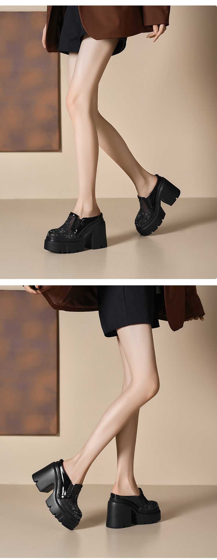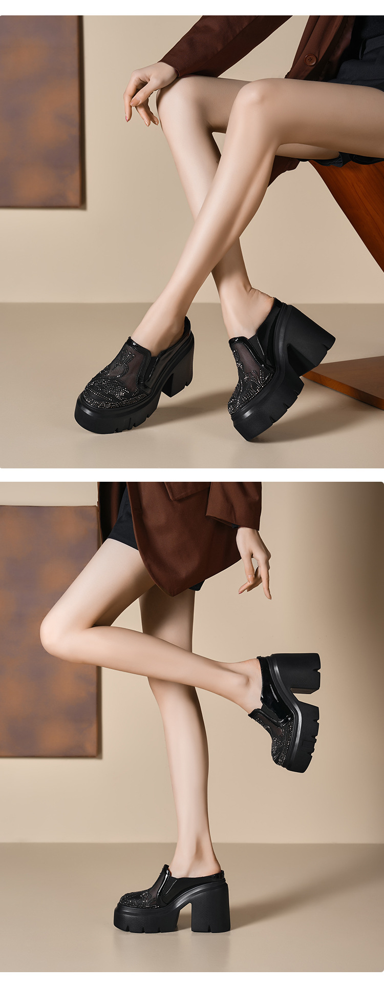 Đôi dép qu ngang dành cho nữ có phần đế dày và đệm nâng chiều cao bên trong, giúp tạo dáng đẹp và thoải mái. Mặt trên kết hợp chất liệu lưới mềm mại cùng các hạt pha lê lấp lánh tạo điểm nhấn. Kiểu dáng trẻ trung, dễ dàng phối hợp với nhiều trang phục khác nhau. Sản phẩm có phần đế chống nước, thuận tiện sử dụng. Bạn chỉ cần xỏ chân vào và điều chỉnh qu cho vừa vặn là có thể sử dụng ngay. | Tên sản phẩm: Giày Dép Lê Nữ Gắn Đá Lưới Mỏng Chống Nước Tăng Chiều Cao Đế Cao - Giày Dép Nữ | Mã sản phẩm: B4292 - Giá: 2.020.000đ | Mã nhà sản xuất: QIDNG-G05Hình ảnh sản phẩm