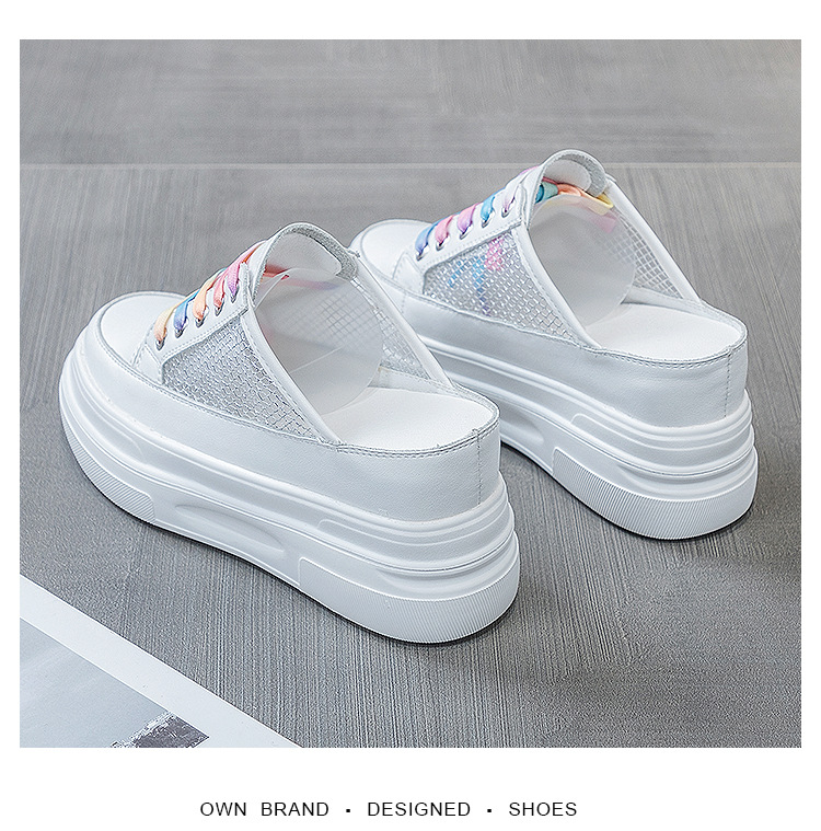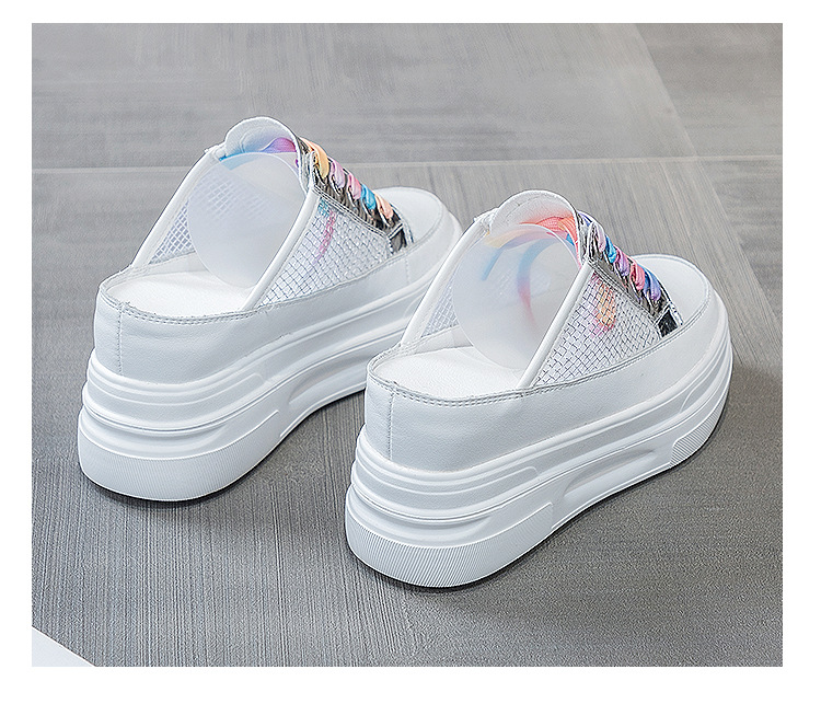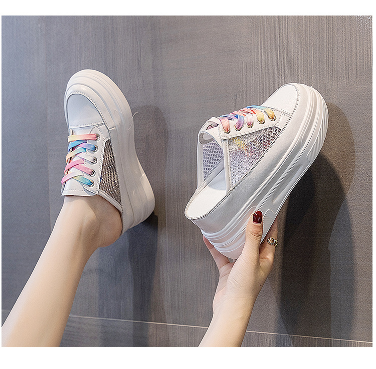 Đôi giày thể thao nửa hở mũi này được thiết kế dành riêng cho các bạn nữ. Sản phẩm sở hữu phần đế dày được làm từ chất liệu nhẹ, giúp nâng đỡ bàn chân một cách thoải mái trong suốt thời gian dài sử dụng. Phần thân giày làm từ vải lưới tạo cảm giác thông thoáng, hạn chế nóng bức. Kiểu dáng năng động, dễ dàng phối hợp với nhiều trang phục khác nhau. Bạn chỉ cần xỏ chân vào và đi, rất tiện lợi cho các hoạt động hằng ngày. | Tên sản phẩm: Giày Dép Lê Nữ Lưới Mỏng Thoáng Khí Đế Cao - Giày Dép Nữ | Mã sản phẩm: B6538 - Giá: 980.000đ | Mã nhà sản xuất: WERYAN-G03Hình ảnh sản phẩm