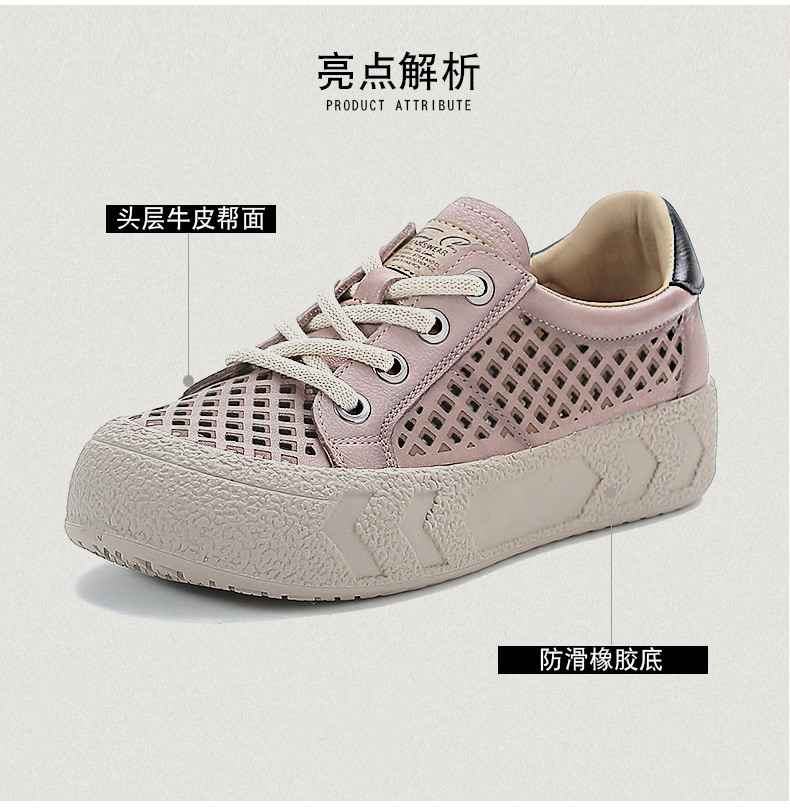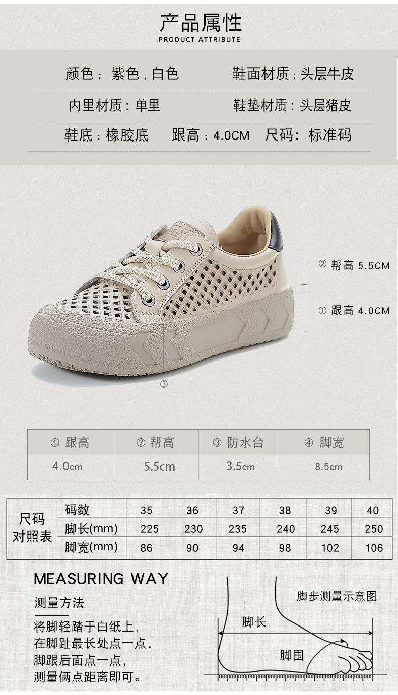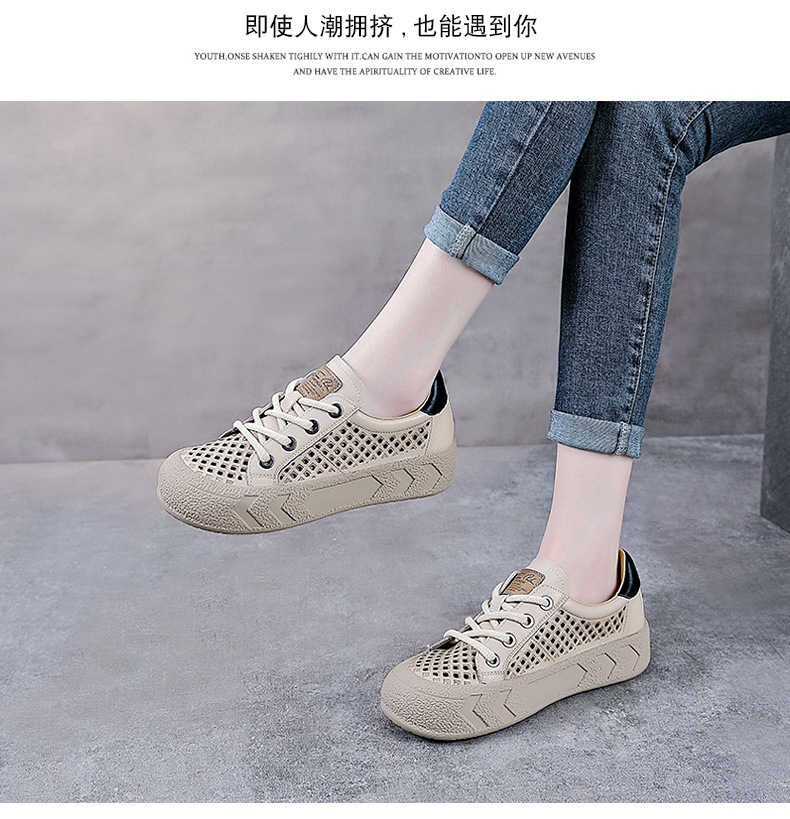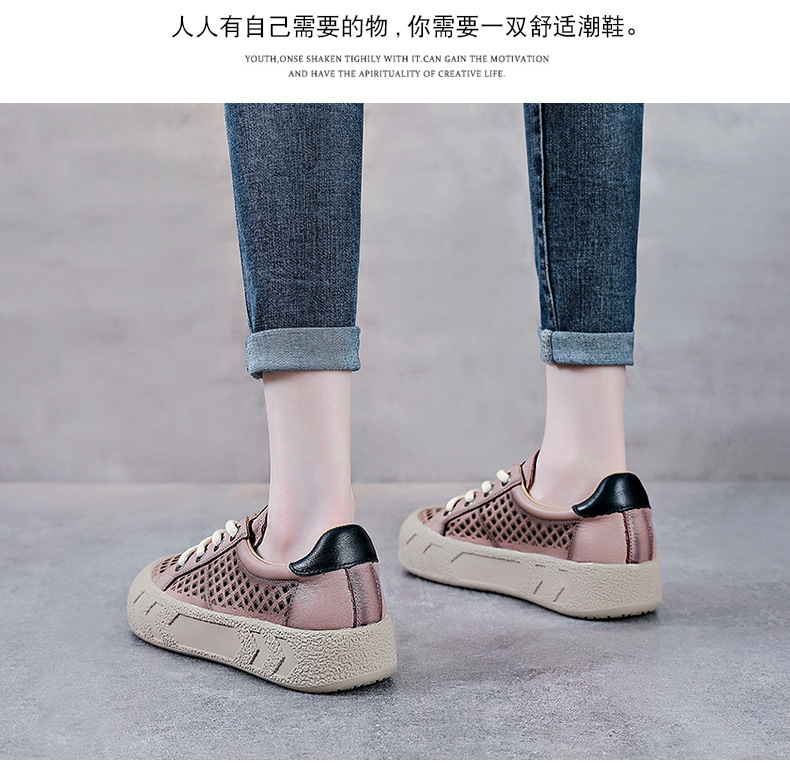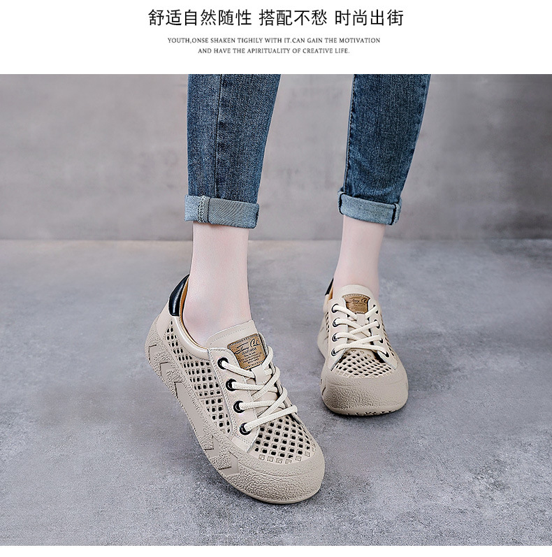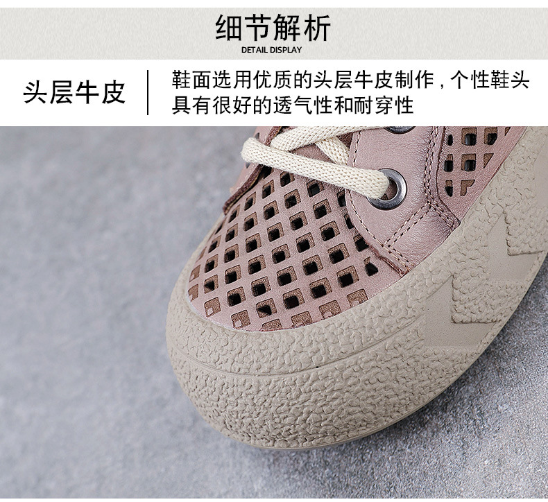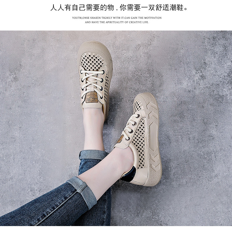 Giày thể thao nữ thiết kế mũi bịt kín và đế bằng xuống dáng, mang phong cách La Mã cổ điển. Bề mặt giày được tạo hình lỗ thông thoáng, giúp đôi chân luôn mát mẻ và dễ chịu. Sản phẩm được làm từ chất liệu da thật bền đẹp, phù hợp cho các hoạt động thường ngày. Cách sử dụng rất đơn giản, chỉ cần xỏ chân vào và điều chỉnh khóa dán cho vừa vặn là có thể thoải mái di chuyển. | Tên sản phẩm: Giày Dép Sandal Nữ Chất Liệu Da Bò Đế Cao Hàng Mùa Hè - Giày Dép Nữ | Mã sản phẩm: K0363 - Giá: 1.390.000đ | Mã nhà sản xuất: WEDS-G04Hình ảnh sản phẩm