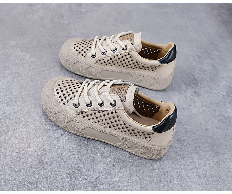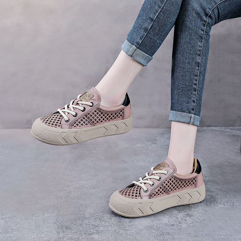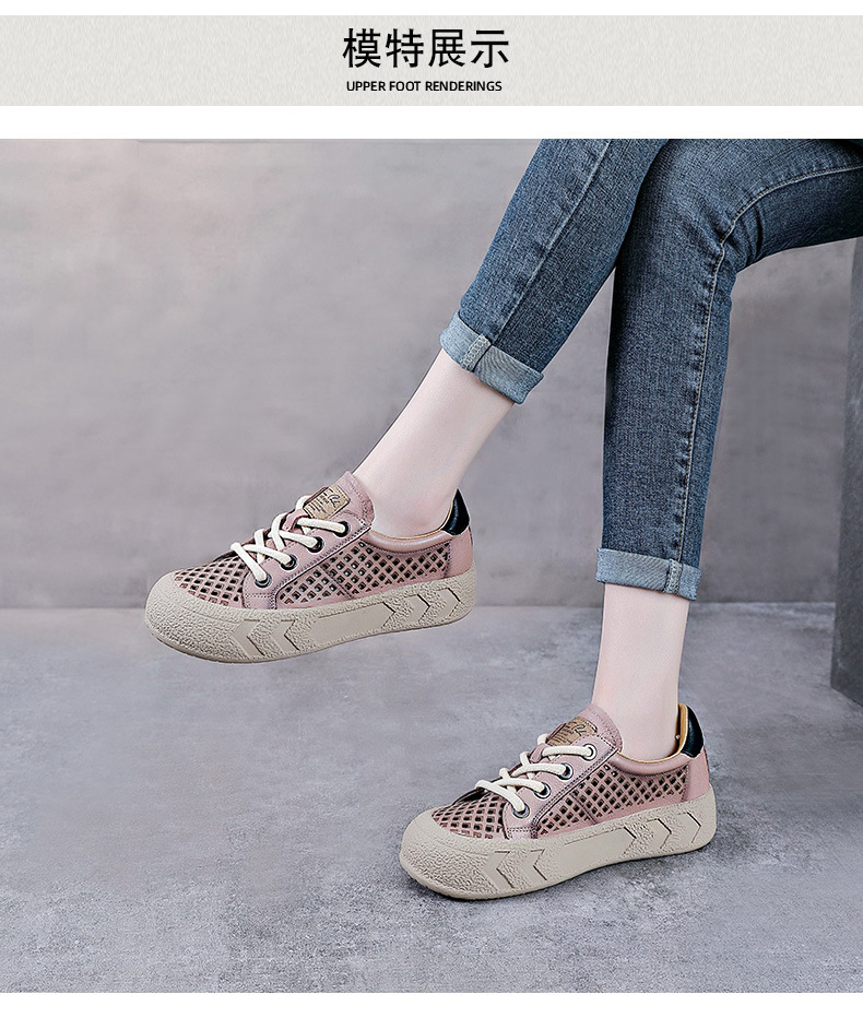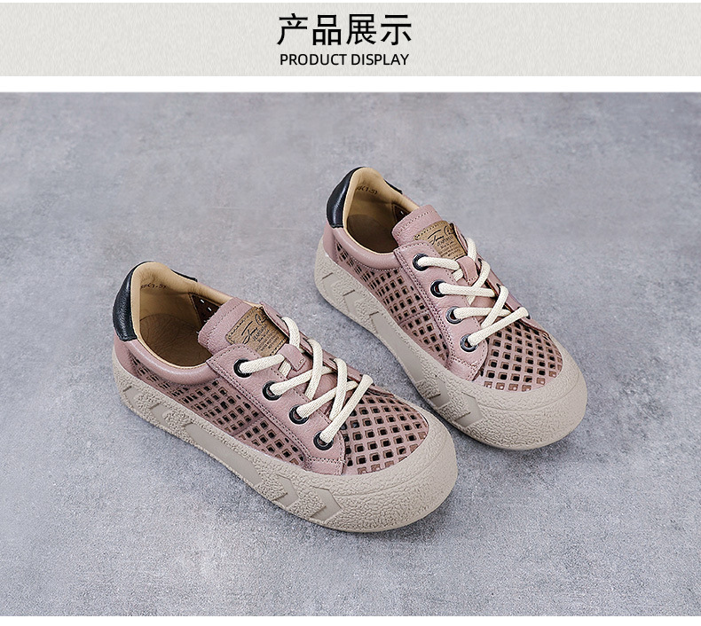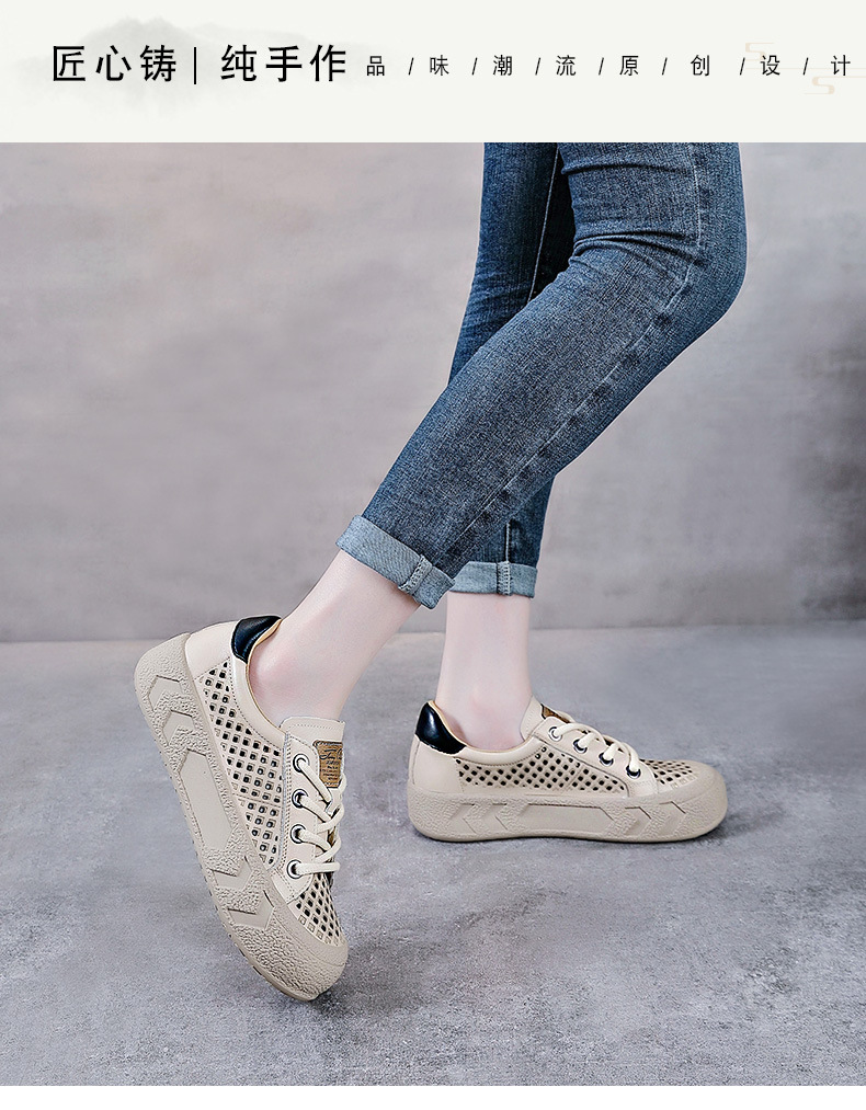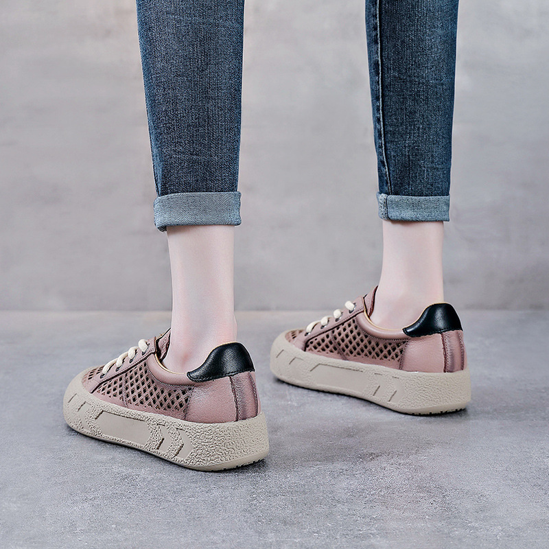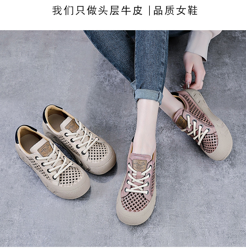Giày thể thao nữ thiết kế mũi bịt kín và đế bằng xuống dáng, mang phong cách La Mã cổ điển. Bề mặt giày được tạo hình lỗ thông thoáng, giúp đôi chân luôn mát mẻ và dễ chịu. Sản phẩm được làm từ chất liệu da thật bền đẹp, phù hợp cho các hoạt động thường ngày. Cách sử dụng rất đơn giản, chỉ cần xỏ chân vào và điều chỉnh khóa dán cho vừa vặn là có thể thoải mái di chuyển. | Tên sản phẩm: Giày Dép Sandal Nữ Chất Liệu Da Bò Đế Cao Hàng Mùa Hè - Giày Dép Nữ | Mã sản phẩm: K0363 - Giá: 1.390.000đ | Mã nhà sản xuất: WEDS-G04Hình ảnh sản phẩm