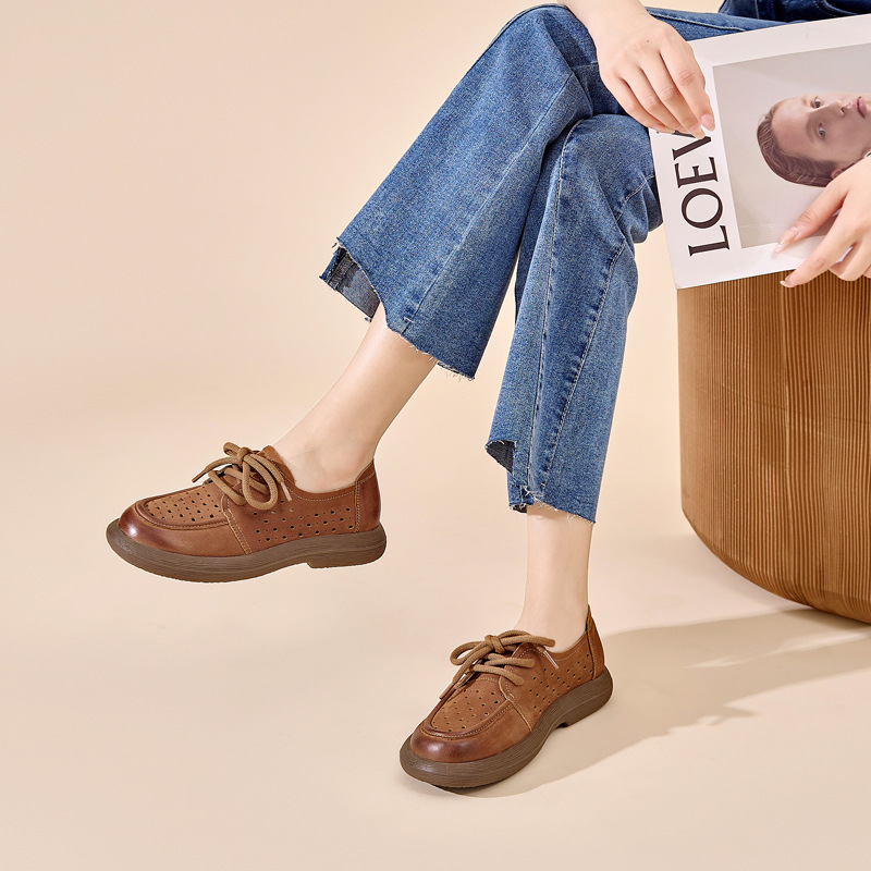Đôi giày da bò thật này có phần mặt được đục lỗ trang trí, tạo nên phong cách cổ điển nhẹ nhàng. Chất da mềm mại cùng đế êm ái mang đến sự dễ chịu cho đôi chân suốt ngày dài. Kiểu dáng giày buộc dây linh hoạt, dễ dàng phối cùng nhiều trang phục khác nhau. Sử dụng như giày hằng ngày, phù hợp cho những lúc đi làm, dạo phố hay gặp gỡ bạn bè. | Tên sản phẩm: Giày Dép Sandal Nữ Chất Liệu Da Bò Đế Mềm Phục Cổ Cổ Điển - Giày Dép Nữ | Mã sản phẩm: k2832 - Giá: 1.590.000đ | Mã nhà sản xuất: WEDI-G04Hình ảnh sản phẩm