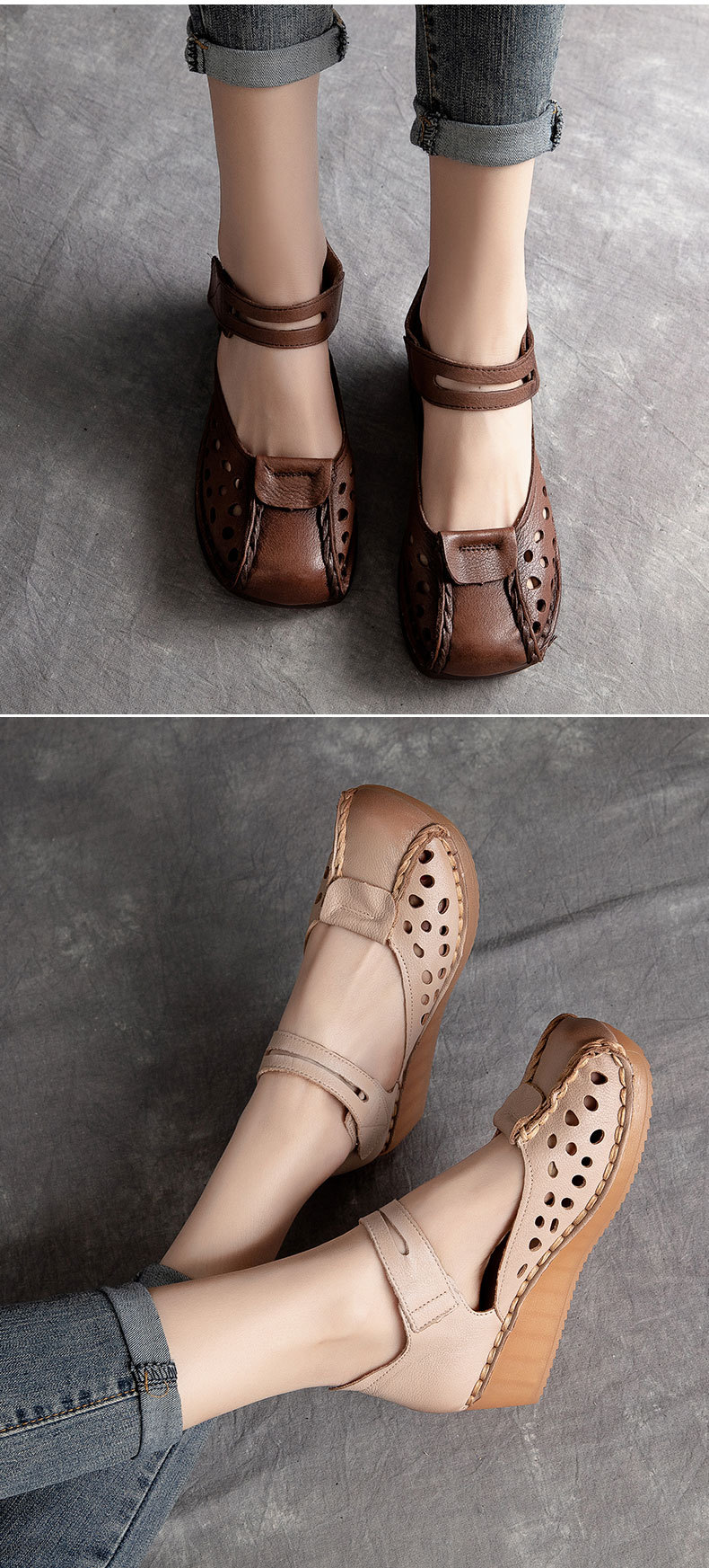 Đôi giày sandal nữ này có thiết kế mũi hở kết hợp đế xuồng tạo dáng thanh thoát, phù hợp cho mùa hè. Sản phẩm được làm từ chất liệu da bò mềm mại, đảm bảo sự thoáng khí và dễ chịu khi mang. Qu dán bằng khóa dán giúp bạn điều chỉnh độ ôm vừa vặn một cách nhanh chóng. Kiểu dáng hở hai bên mang đến cảm giác mát mẻ, thoải mái cho đôi chân trong những ngày nóng. | Tên sản phẩm: Giày Dép Sandal Nữ Chất Liệu Da Bò Đế Xuồng Hàng Mùa Hè - Giày Dép Nữ | Mã sản phẩm: B1784 - Giá: 1.380.000đ | Mã nhà sản xuất: SHDU-G04Hình ảnh sản phẩm