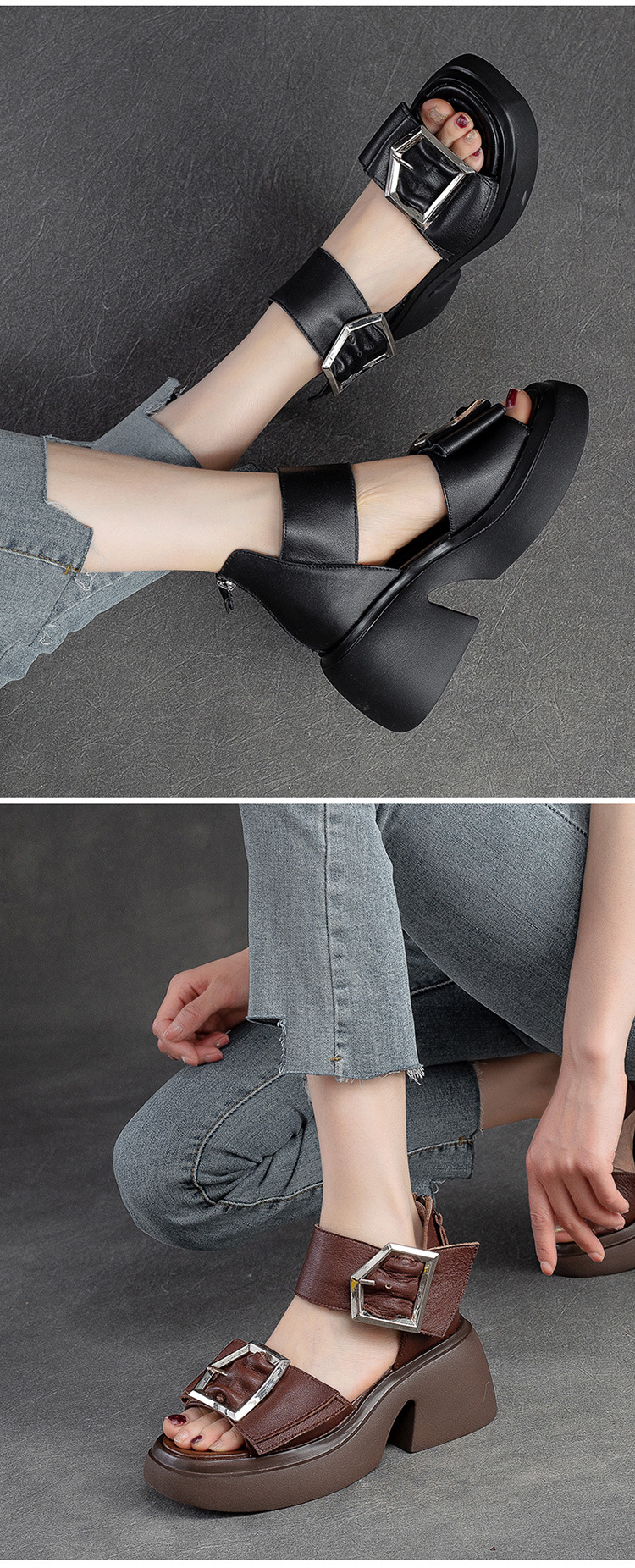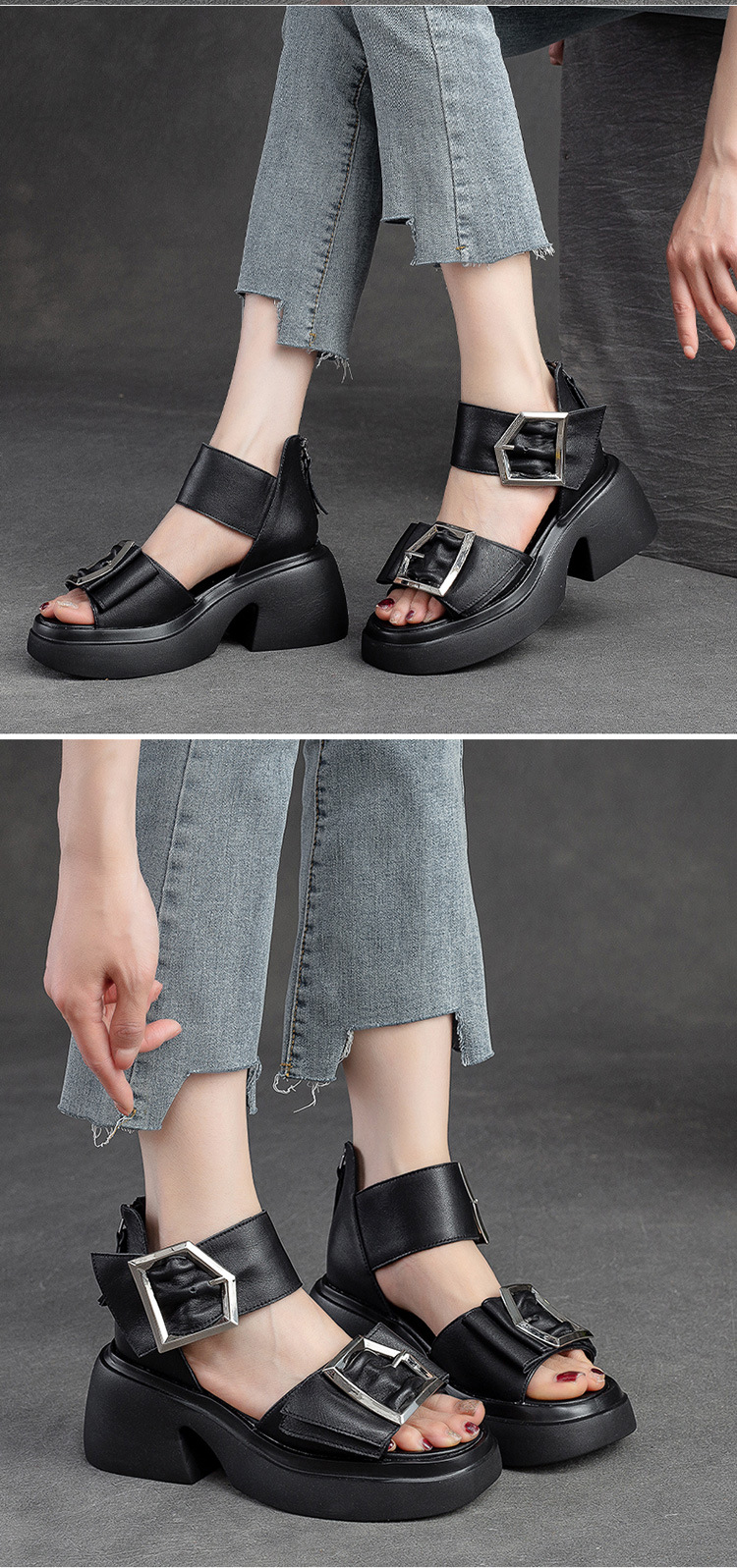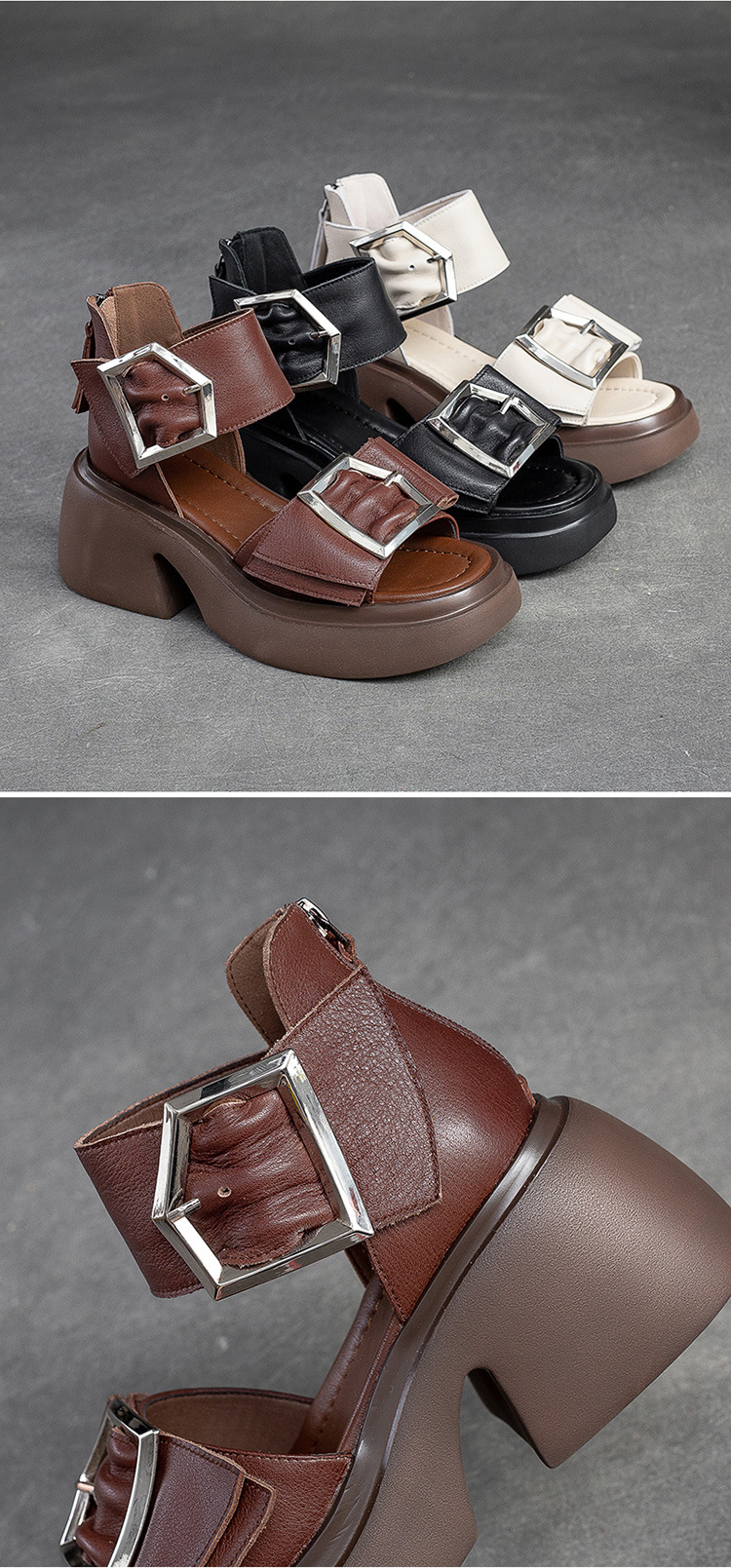 Giày sandal nữ thiết kế cổ điển với phần đế dày và đế xuồng vững chãi, tạo dáng đẹp và thoải mái khi mang. Sản phẩm được làm từ chất liệu da bò thật, bền đẹp theo thời gian. Kiểu dáng hở mũi cá điệu đà, phần gót ôm sát, kết hợp các lỗ thông hơi giúp đôi chân luôn mát mẻ trong ngày hè. Dễ dàng phối cùng nhiều trang phục như quần shorts, váy hay quần dài để tạo nên những phong cách khác nhau. | Tên sản phẩm: Giày Dép Sandal Nữ Chất Liệu Da Bò Đế Xuồng Miệng Cá Hàng Mùa Hè Phục Cổ Cổ Điển - Giày Dép Nữ | Mã sản phẩm: H9328 - Giá: 2.480.000đ | Mã nhà sản xuất: SHNTEZ-G05Hình ảnh sản phẩm