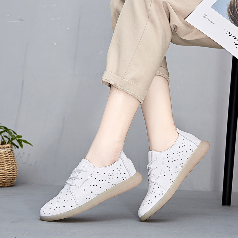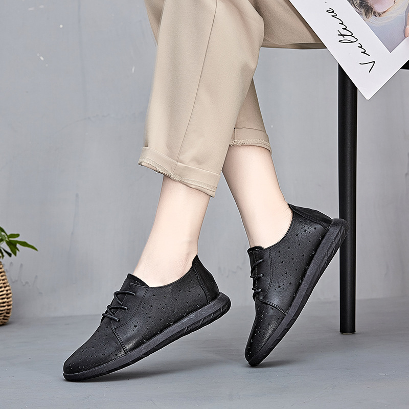 Đôi giày này có phần đế mềm mại, tạo cảm giác dễ chịu khi mang. Bề mặt giày được thiết kế với nhiều lỗ nhỏ thông thoáng, phù hợp cho mùa hè. Kiểu dáng tròn trịa, có dây rút để điều chỉnh ôm vừa chân. Sản phẩm được làm từ chất liệu da mềm, bền đẹp. Cách sử dụng rất đơn giản, chỉ cần luồn dây và thắt lại cho vừa vặn. Đây là mẫu giày tiện lợi, dễ phối cùng nhiều trang phục thường ngày. | Tên sản phẩm: Giày Dép Sandal Nữ Chất Liệu Da Bò Mũi Tròn Đế Mềm Hàng Mùa Hè Trung Niên - Giày Dép Nữ | Mã sản phẩm: k2552 - Giá: 1.300.000đ | Mã nhà sản xuất: WEDI-G04Hình ảnh sản phẩm