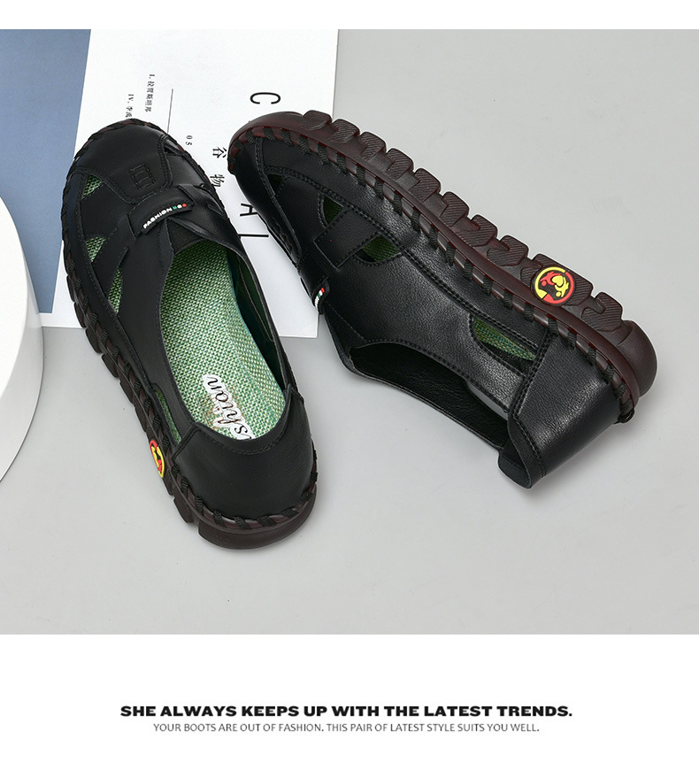Đôi giày này được làm thủ công với các đường chỉ may tỉ mỉ, mang đến vẻ ngoài tinh tế. Sản phẩm có đế làm từ chất liệu mềm dẻo, giúp bước chân thoải mái suốt ngày dài. Kiểu dáng phẳng, đơn giản phù hợp cho các hoạt động thường ngày. Bạn có thể dễ dàng phối cùng nhiều loại trang phục khác nhau để tạo sự thoải mái và tiện lợi. Đây là lựa chọn nhẹ nhàng cho những bước chân di chuyển nhẹ nhàng. | Tên sản phẩm: Giày Dép Sandal Nữ Đế Mềm Trung Niên - Giày Dép Nữ | Mã sản phẩm: B3623 - Giá: 590.000đ | Mã nhà sản xuất: TADRA-G01Hình ảnh sản phẩm